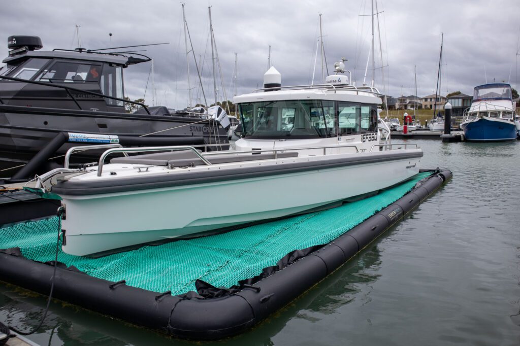 “I’ve had boats for most of my working life. These are just phenomenal,” Rob says. “They’re absolutely fabulous in the sea. I use it quite a bit on my own — it’s really easy to manhandle. She’s so versatile, you can just do anything. I often go dolphin watching in the estuary. My wife loves it too because you’ve got full access all the way around. And you can still sleep on it in the cabin.”