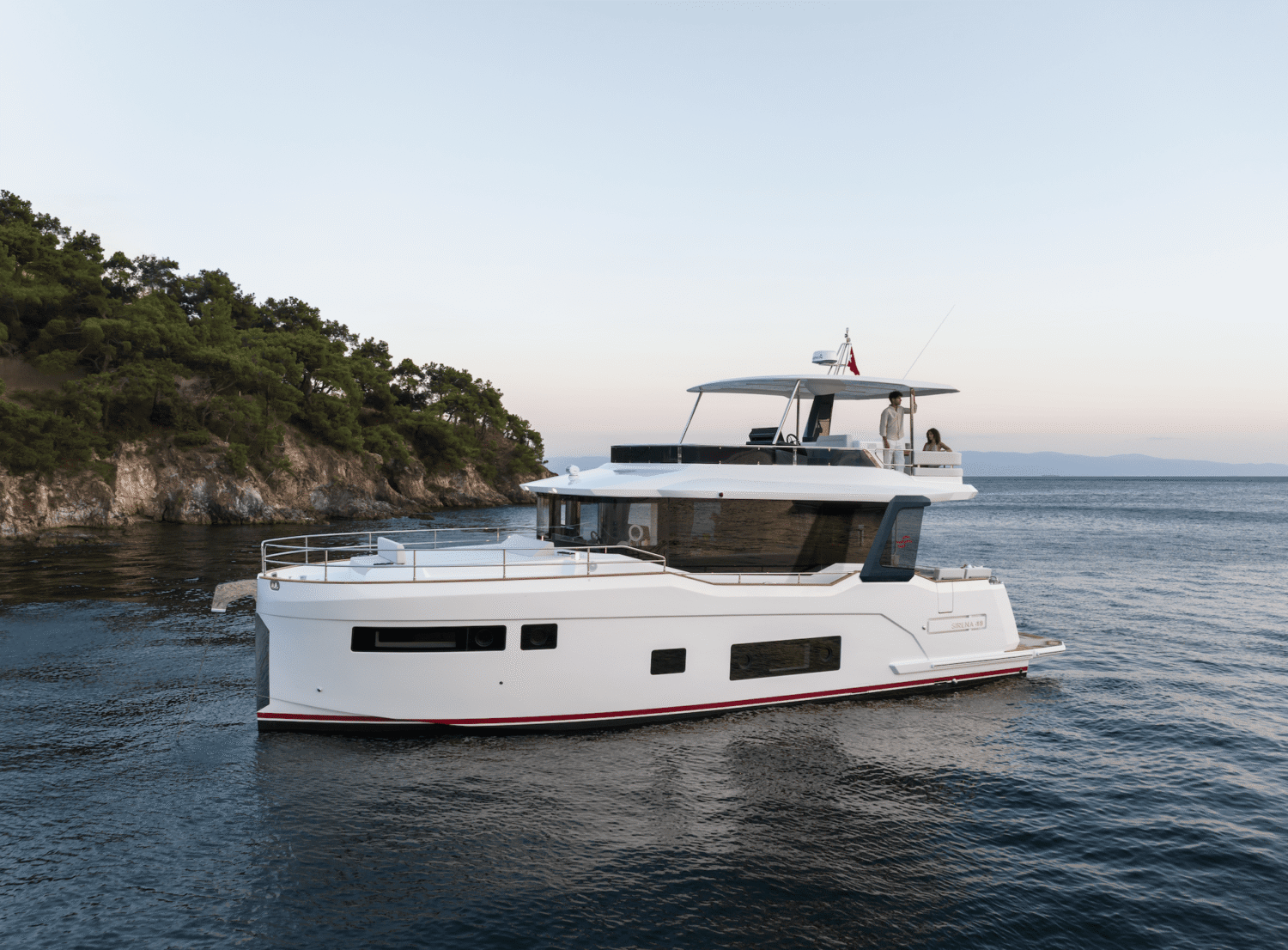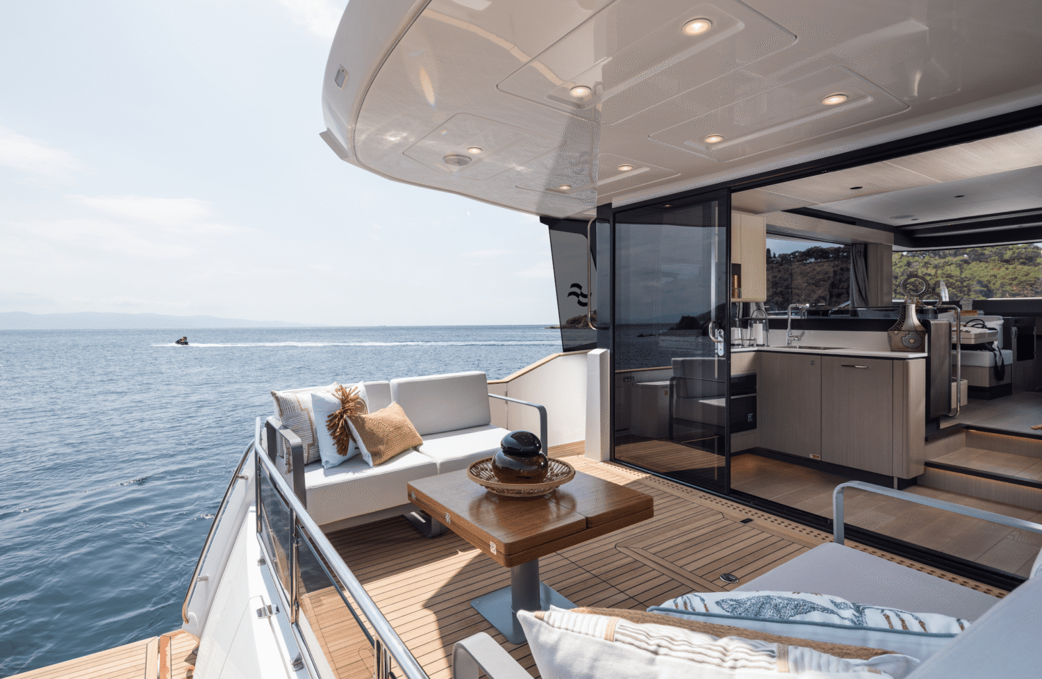 The Sirena 48’s unique hull design allows for flexible speed options, perfect for exploring secluded coves and taking a quick swim, or enjoying a relaxing and efficient slow cruise across the open ocean.