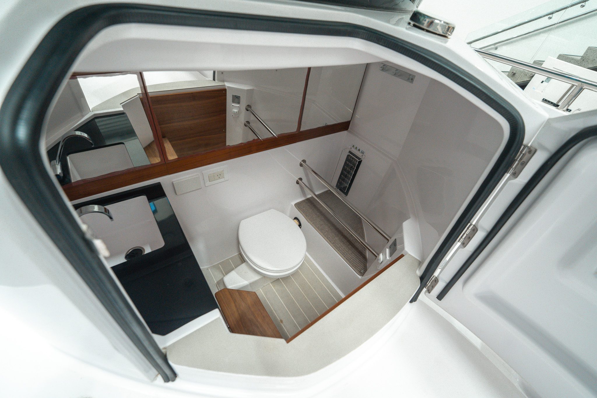 Scott Embury explores this stunning, innovative adventure machine. Flexible aft cockpit, clever cross cabin with forward-raked windscreen, and fantastic gull-wing doors to the forward cabin. A spectacular boat; enjoy the walkthrough.