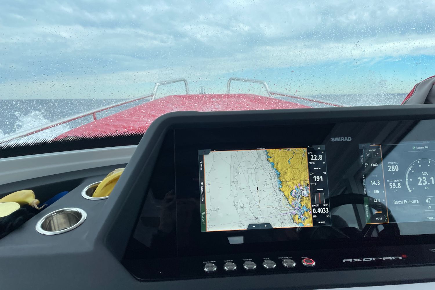 Coming from a sailing background, Graeme explained how Axopar’s design philosophy aligns closely with a that of sailing boats. “It goes through waves like a sailing boat does, and if you get water on the bow, it just washes straight back,” he shares. He’s particularly fond of the open transom, which adds to the Axopar’s resemblance to a sailing vessel’s clean and practical layout.