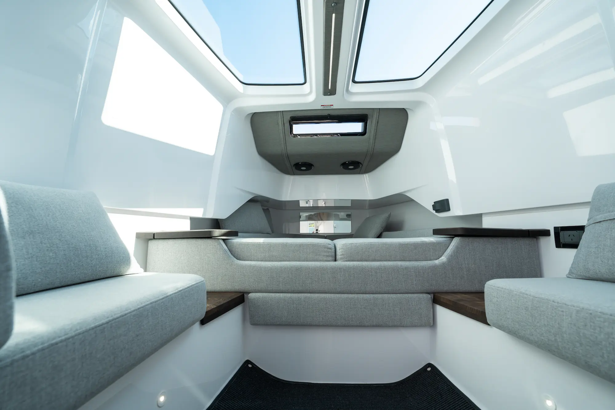 The Axopar 37 Cross Cabin is really the all-rounder for Sydney Harbour dayboating. Protect yourself from the elements when necessary but open up the electric sunroof to enjoy the sunshine.