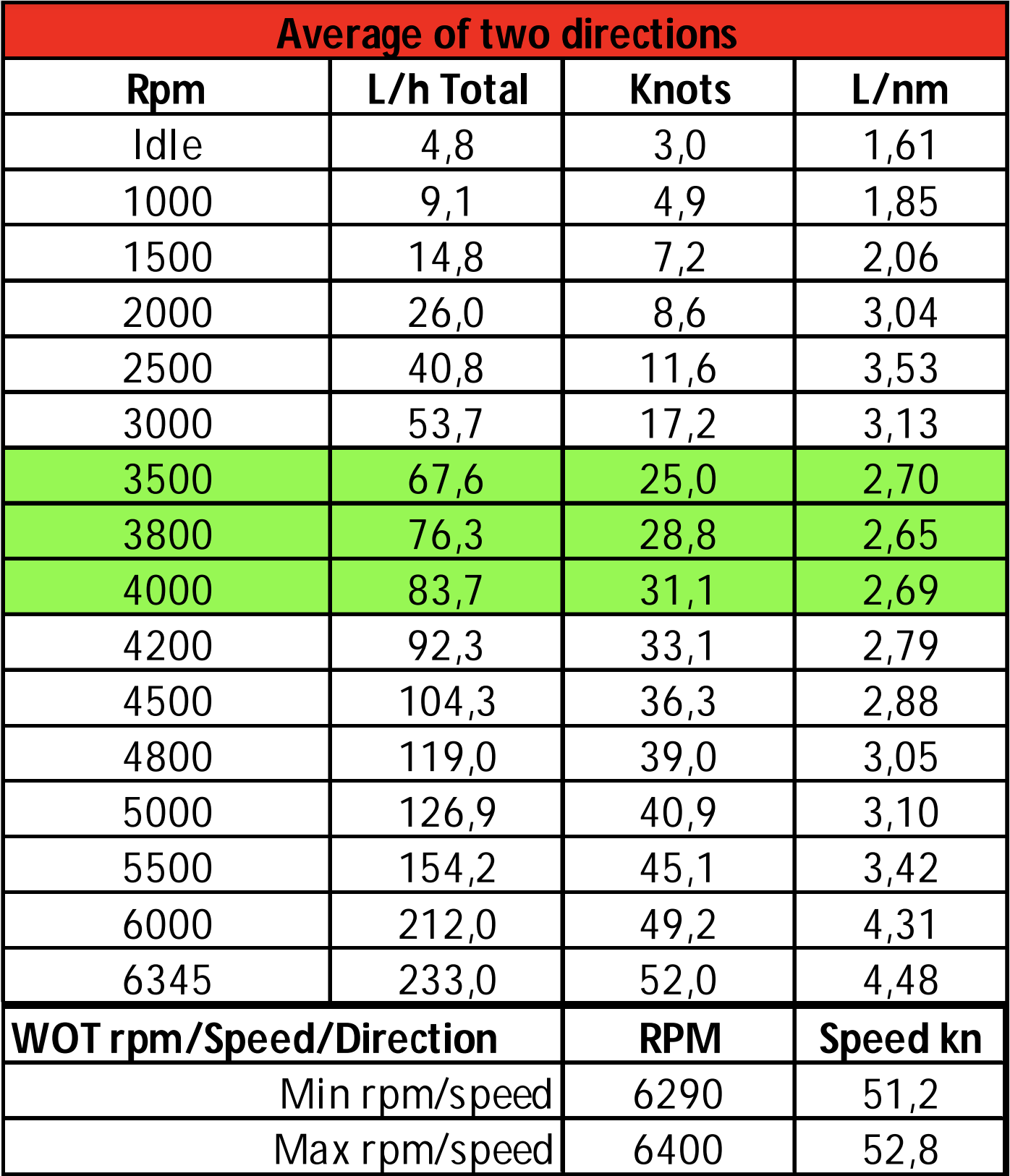 Cruising speed – 28 to 30 knots