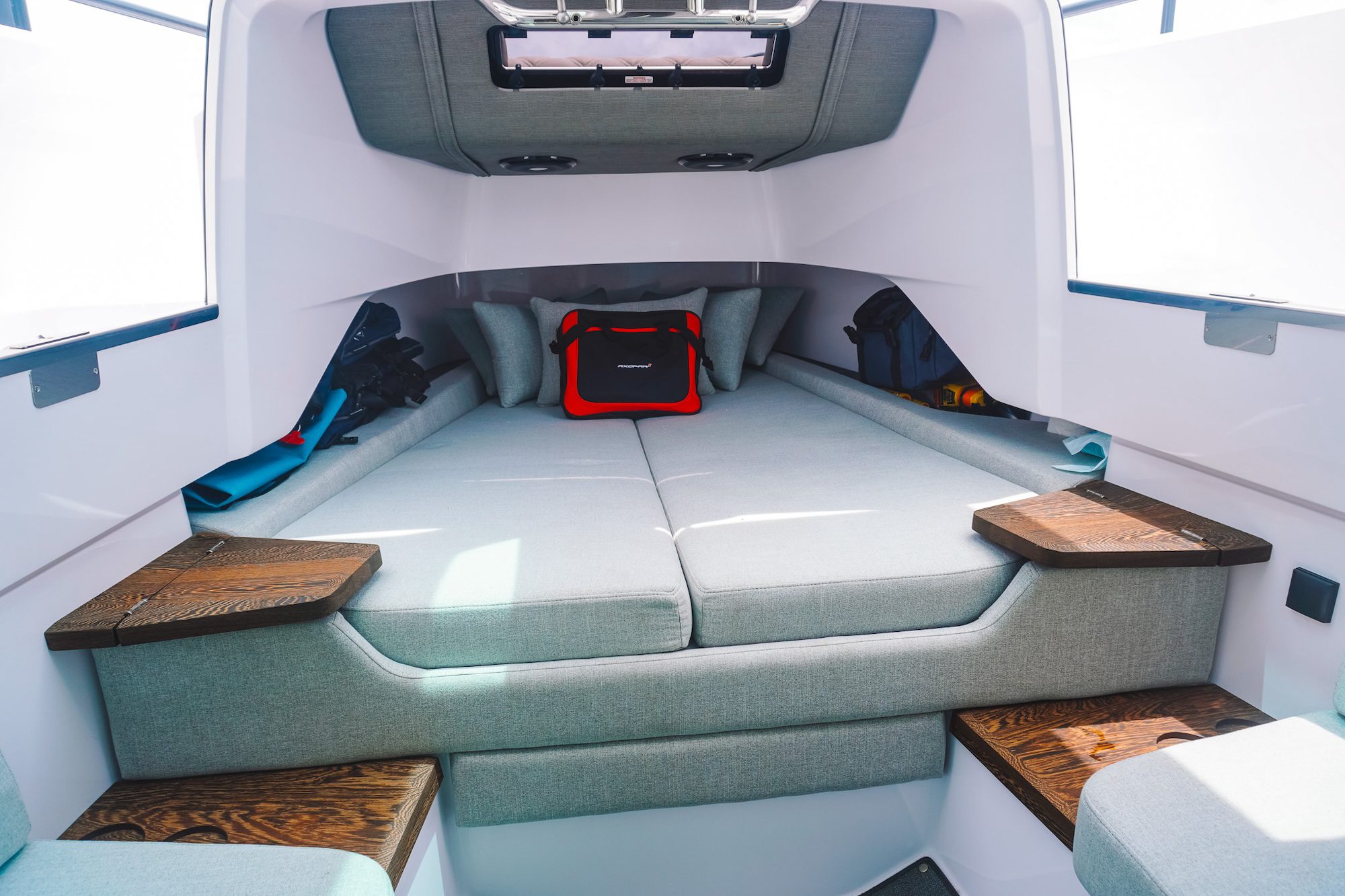 Scott Embury explores this stunning, innovative adventure machine. Flexible aft cockpit, clever cross cabin with forward-raked windscreen, and fantastic gull-wing doors to the forward cabin. A spectacular boat; enjoy the walkthrough.