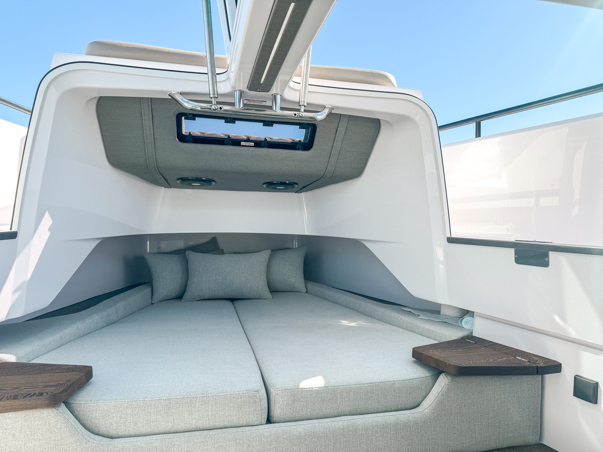 With its open yet shaded deck layout, you can soak up the sea breeze while staying protected from the sun. The walkaround design makes moving between the bow lounge, cockpit, and swim platform effortless, and the cabin offers a comfortable retreat for overnight stays or a quick escape from the weather. For those who want the freedom to go further, cruise faster, and entertain better, the Axopar 37 Sun Top is the perfect companion.