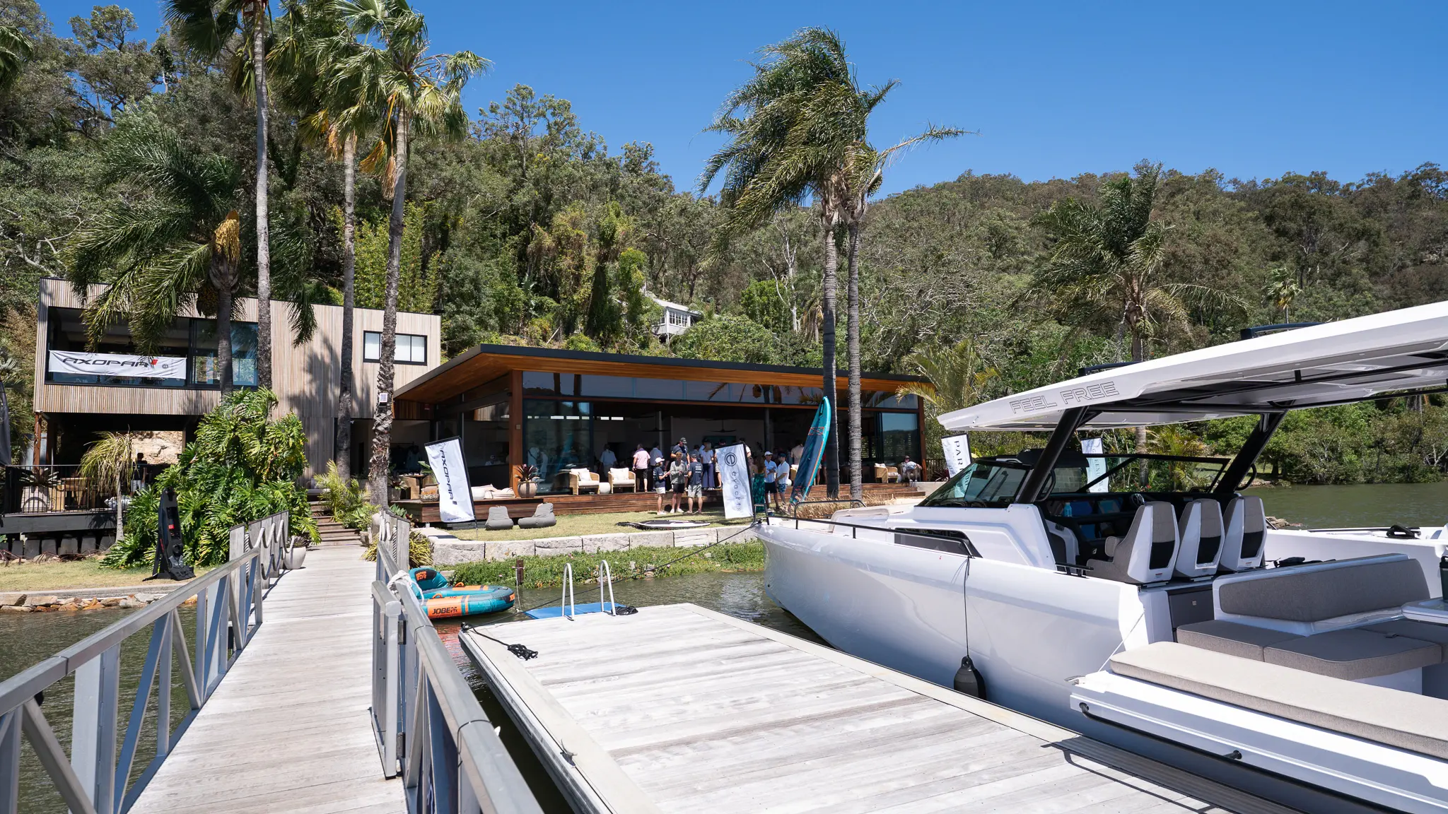 More boats joined in at Pittwater, bringing the total to over twenty as the group made its way into the calm waters of the Hawkesbury River. The destination: Peats Bite, an iconic waterfront restaurant only accessible by boat, making it the perfect end to an Axopar adventure.