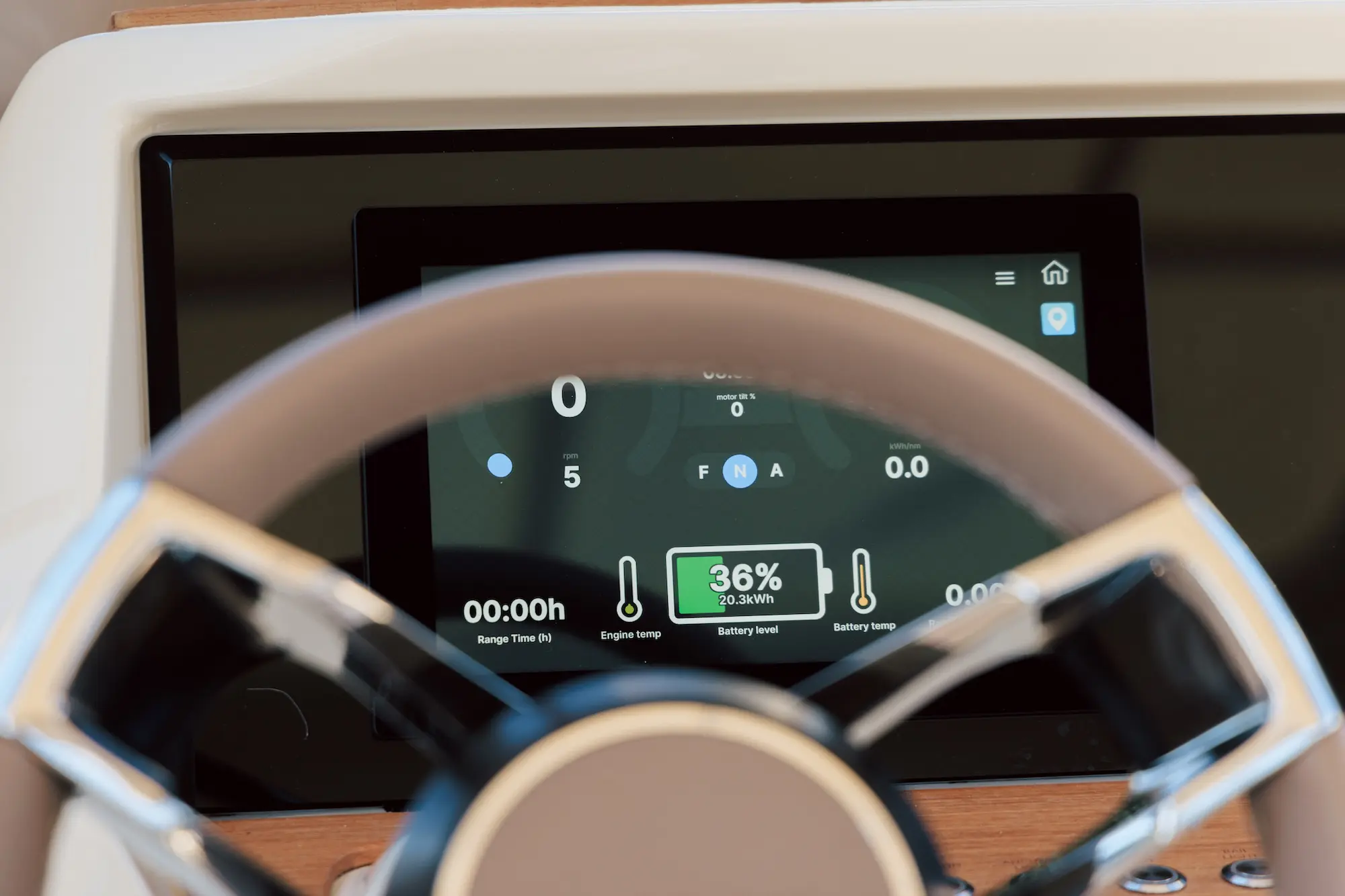 With a 63 kWh Kreisel battery, the AX/E 22 boasts an impressive range of up to 60 nautical miles at 5 knots. Fast charging capabilities mean you can spend more time on the water and less time waiting, all while enjoying near-silent operation that deepens your connection with nature.