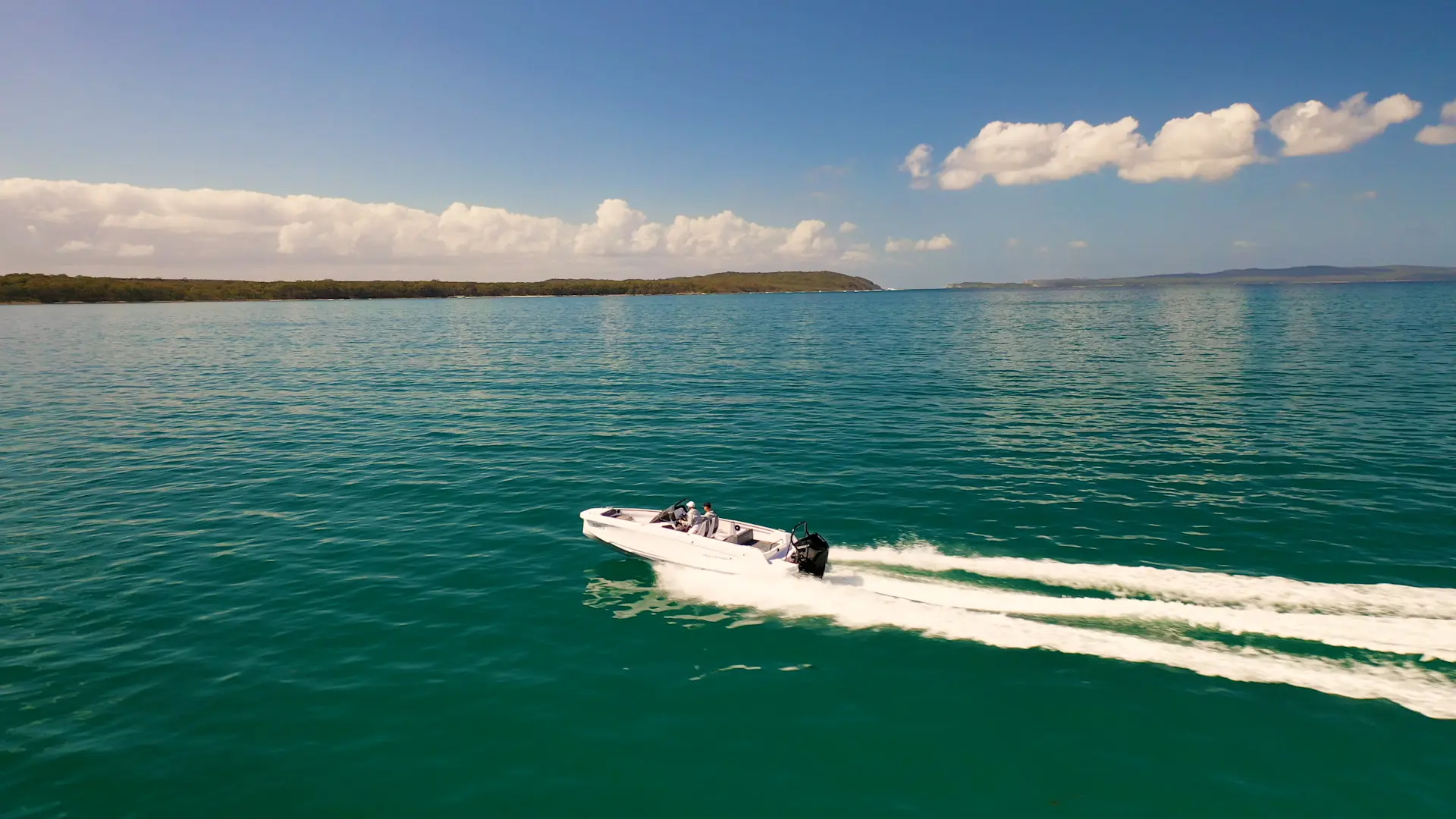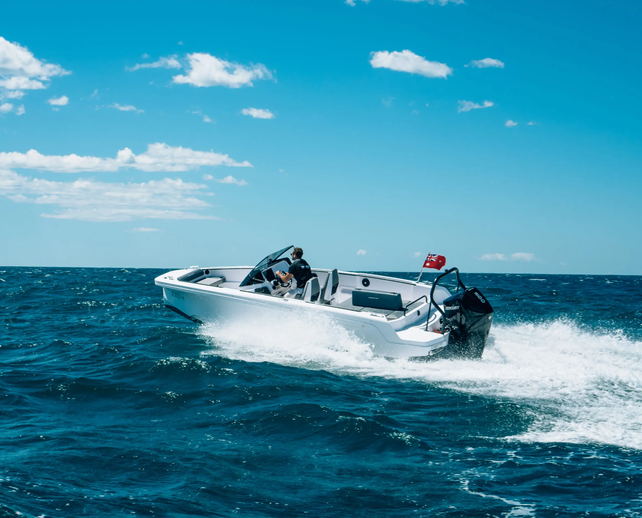 Planing starts as low as 13 knots, and with a 200hp Mercury outboard, you’ll cruise efficiently between 16 to 28 knots at just 28L/h. Top speed reaches 43 knots, and with a 230-litre fuel tank, you can expect up to 230 nautical miles of range. The stepped hull design reduces drag and boosts efficiency, all while delivering a soft, confident ride.