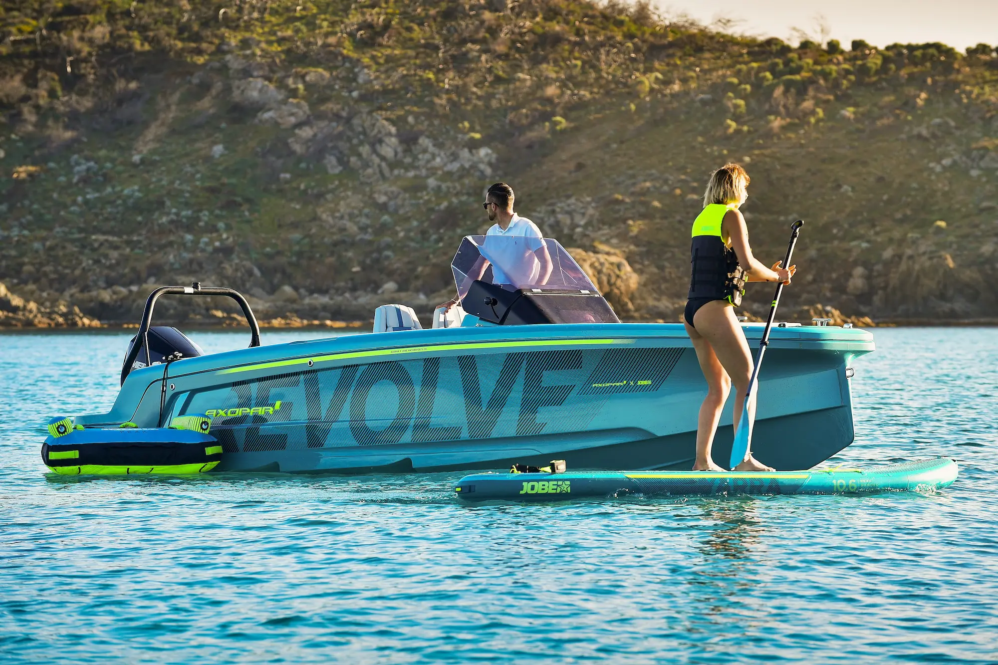 The Axopar 25 is the ideal dayboat with overnight capability. Passionate watersports enthusiasts Jaco and Jenny show off the capability of this vessel for every adventure. Join them for a day out wakeboarding and kneeboarding.