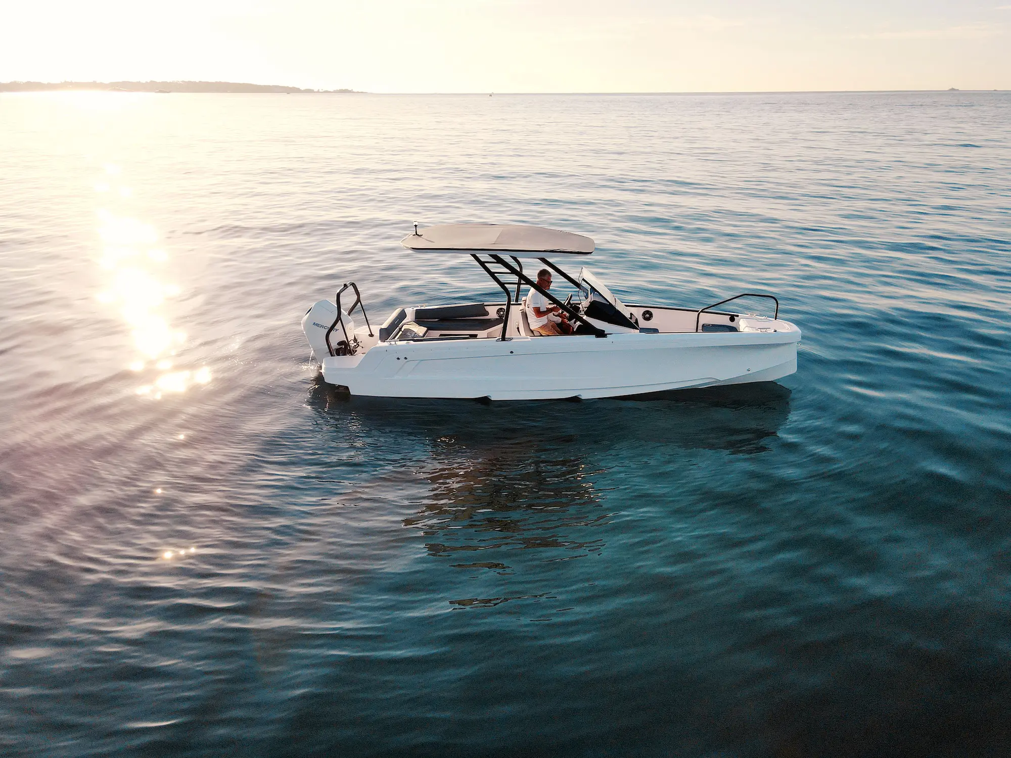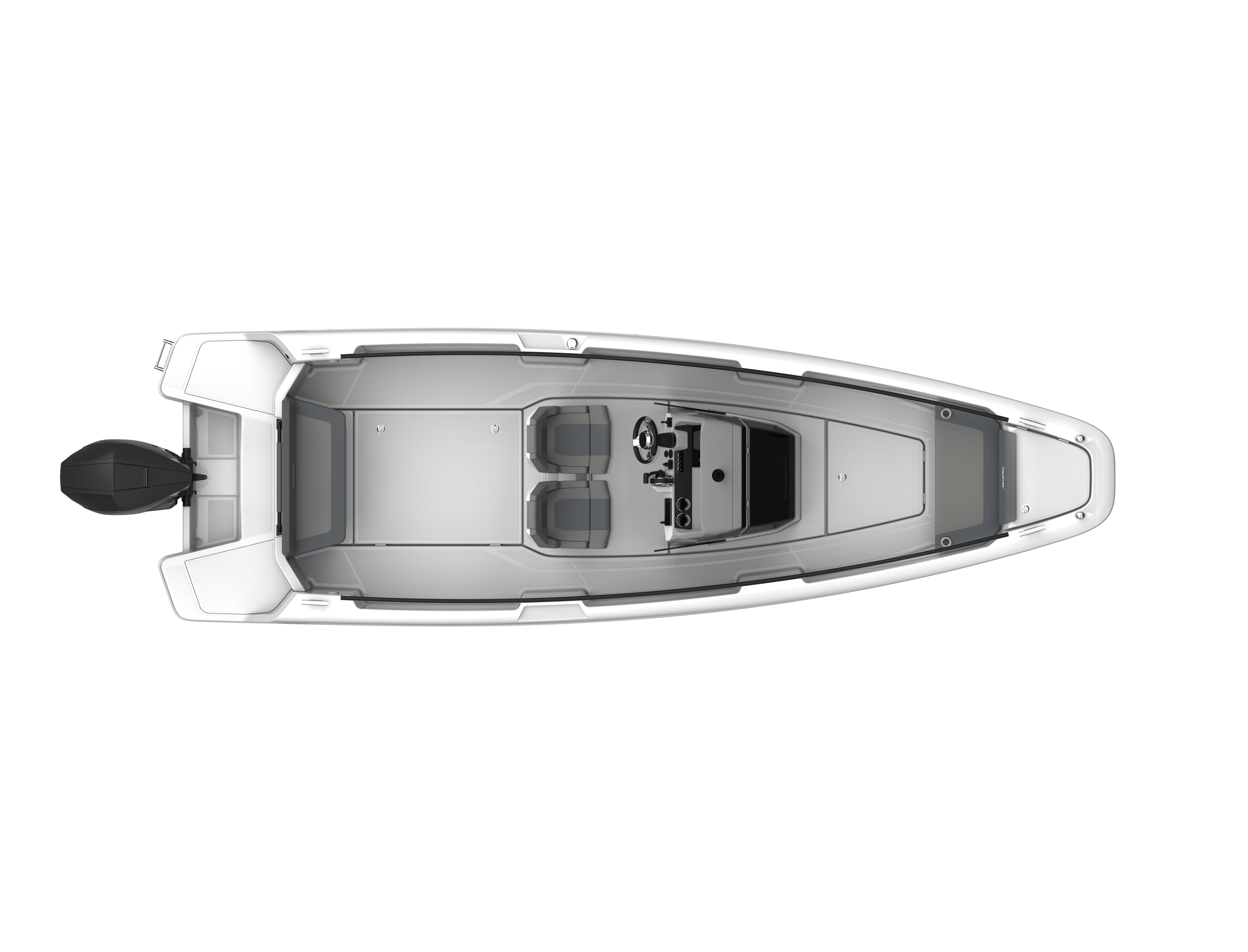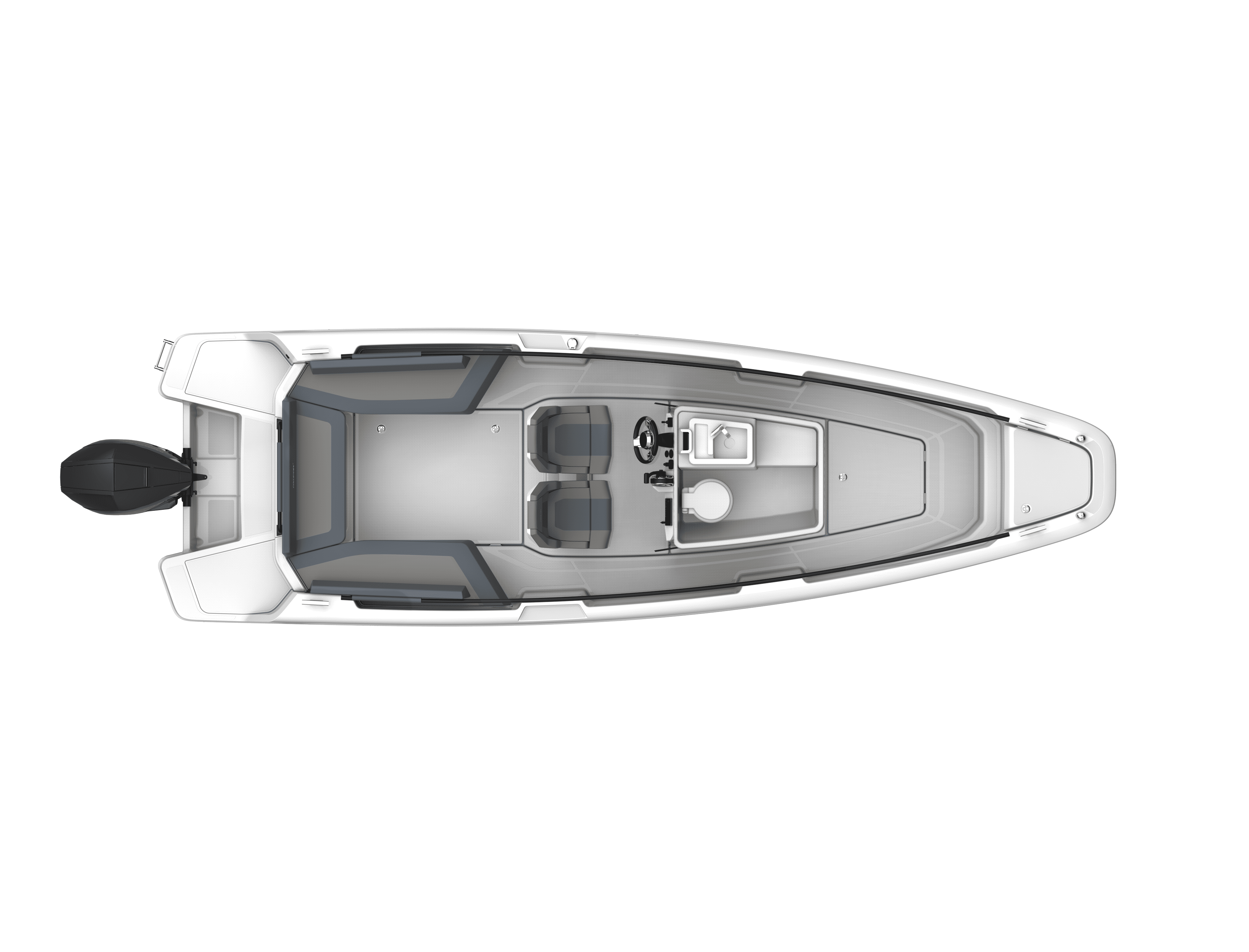 The performance is as impressive as the design. Planing begins at 13 knots, with optimal cruising between 16 to 28 knots at just 28 litres per hour (around 1L per nautical mile). With a top speed of 43 knots and a 230-litre fuel tank, you can expect a cruising range of approximately 230 nautical miles. The stepped hull not only boosts speed and fuel efficiency, it also softens the ride across open water.