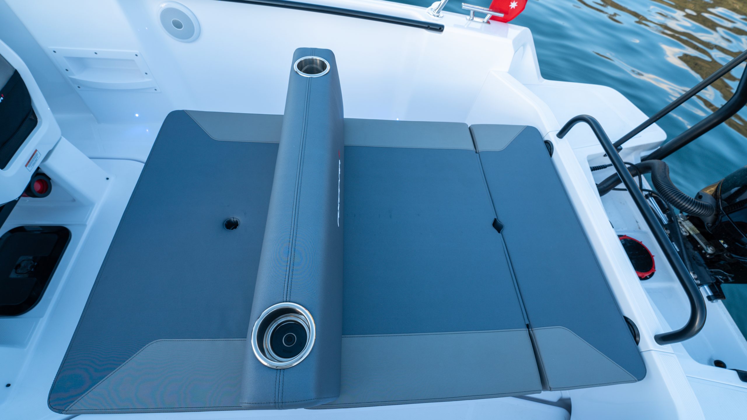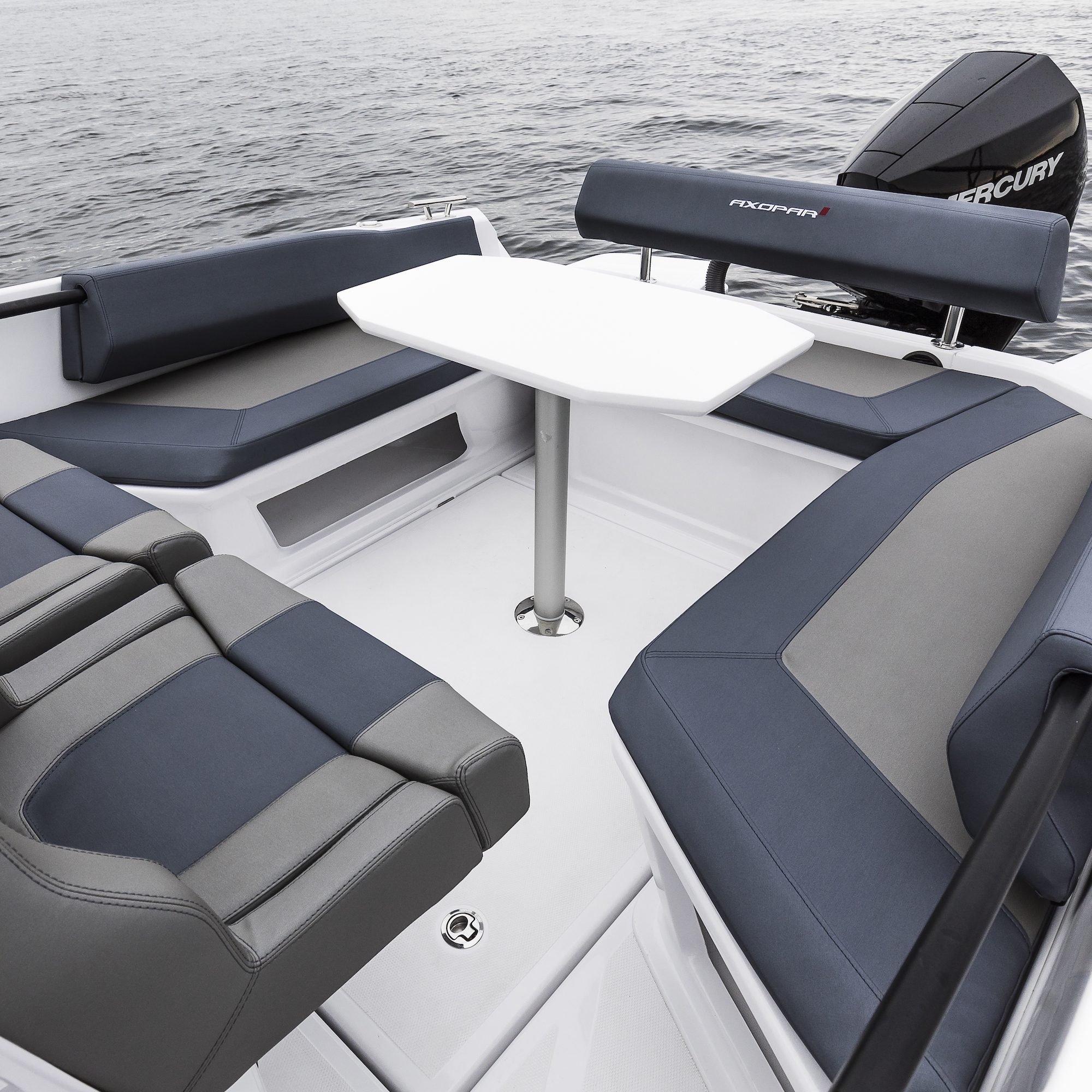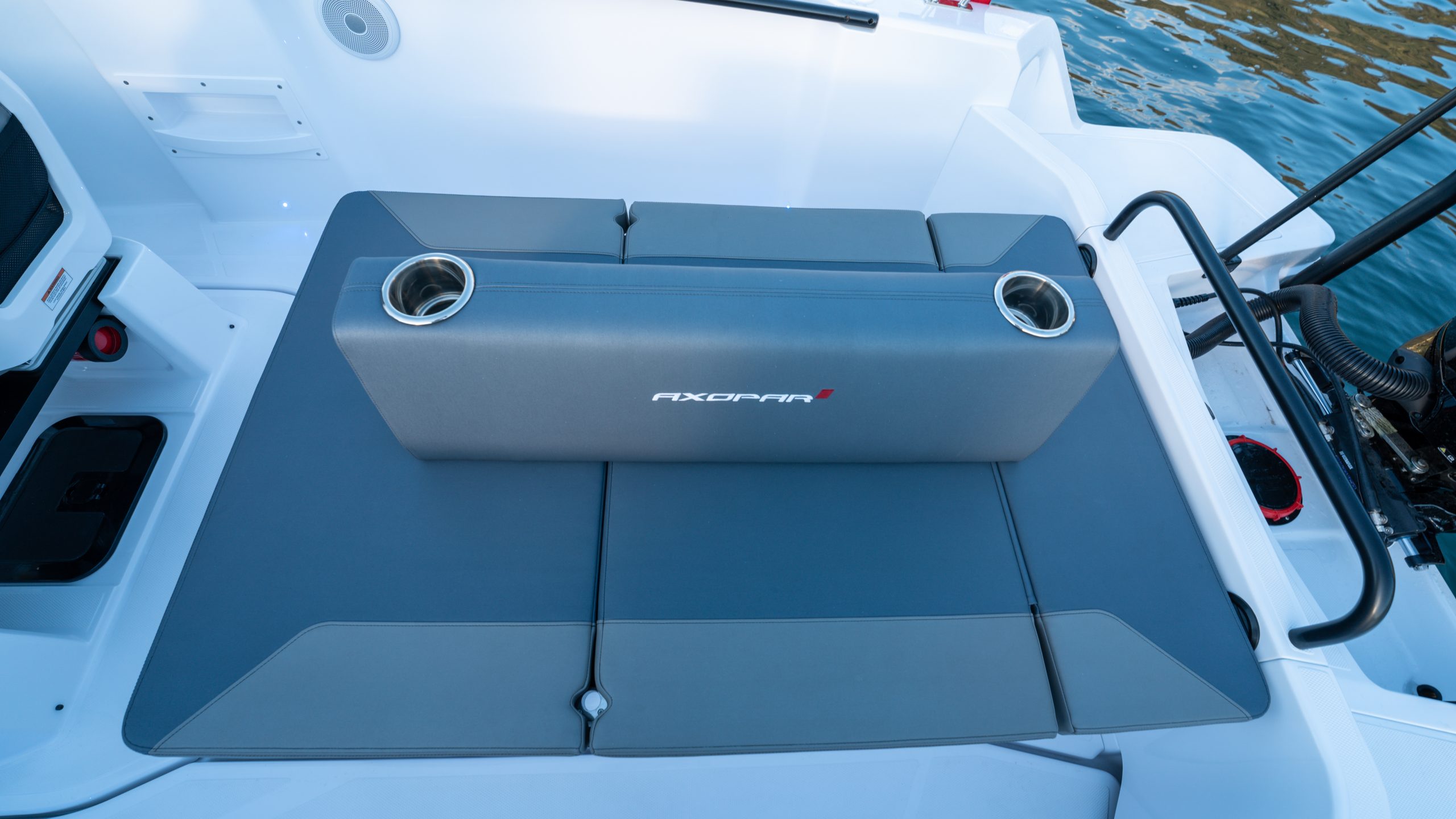 Explore the ultimate luxury on the Axopar 22 & 25 with the new Mediterrana upholstery package. Discover the enhanced features, from the stylish backrest on the bathroom to the integrated cup holders, making this boat a standout.