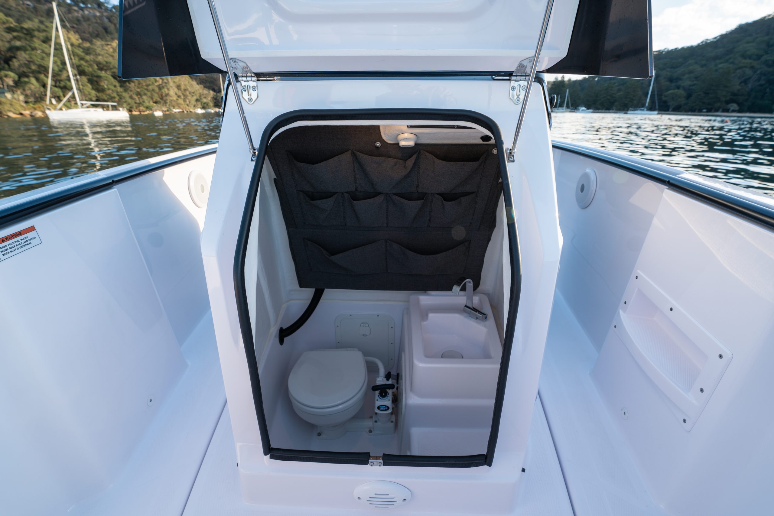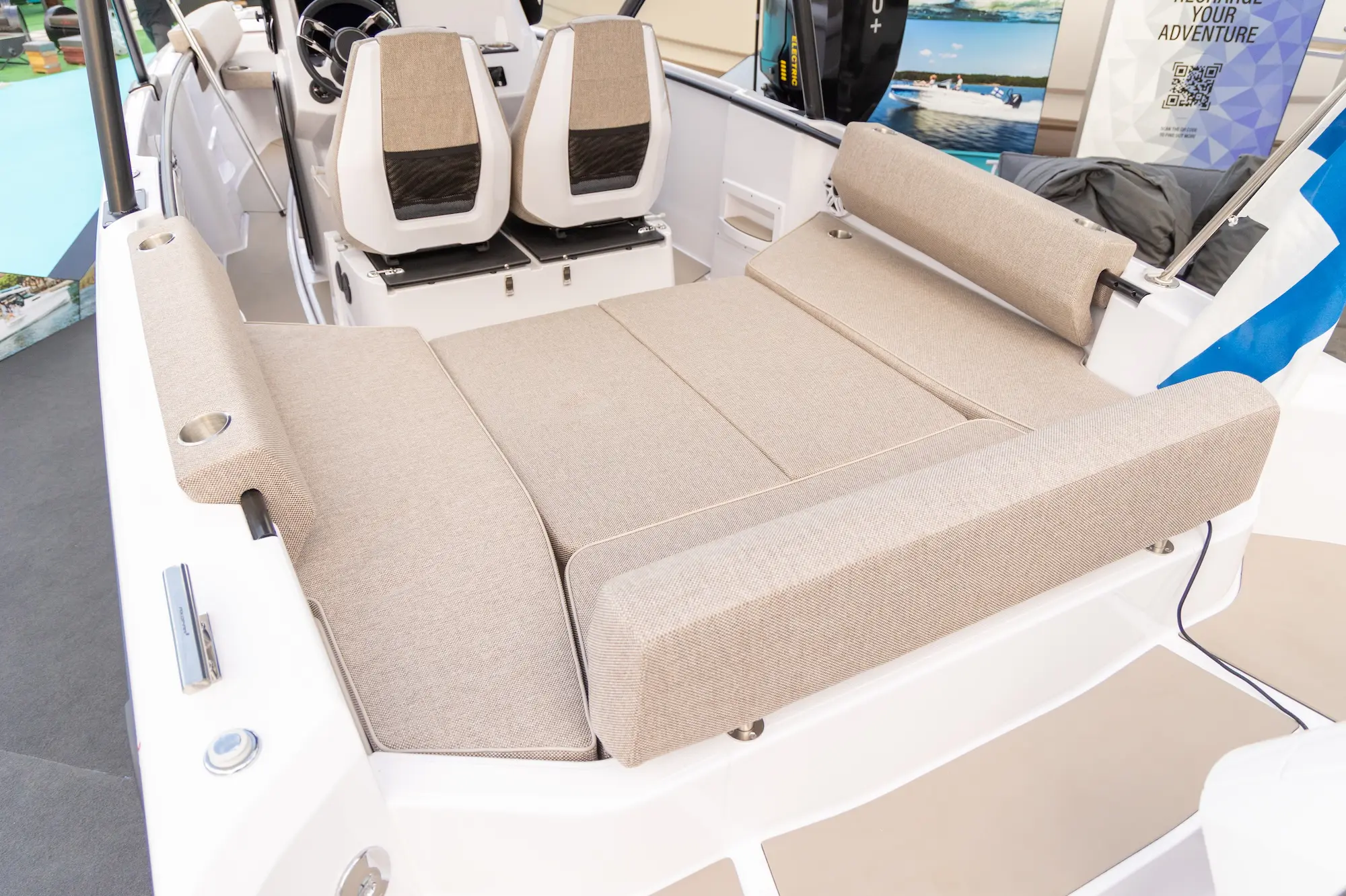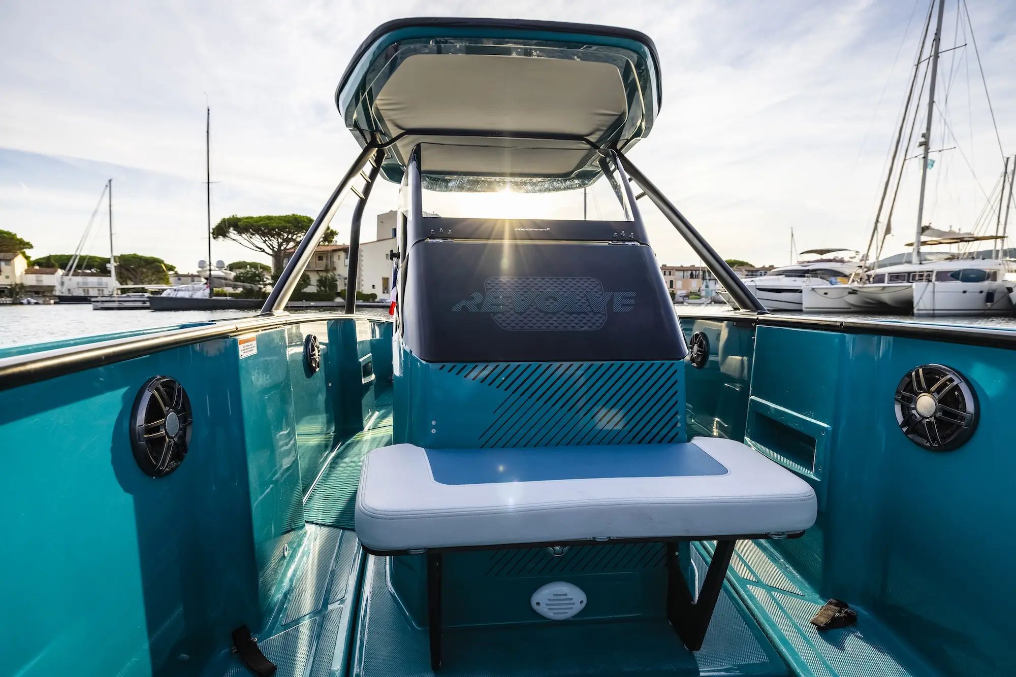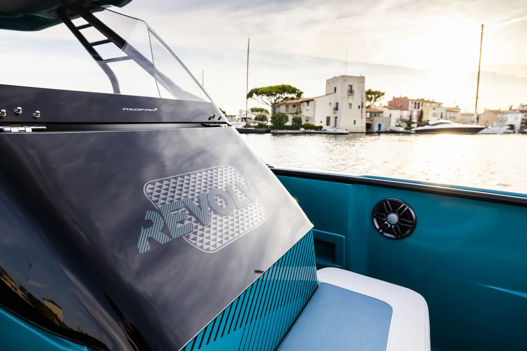 Explore the ultimate luxury on the Axopar 22 & 25 with the new Mediterrana upholstery package. Discover the enhanced features, from the stylish backrest on the bathroom to the integrated cup holders, making this boat a standout.