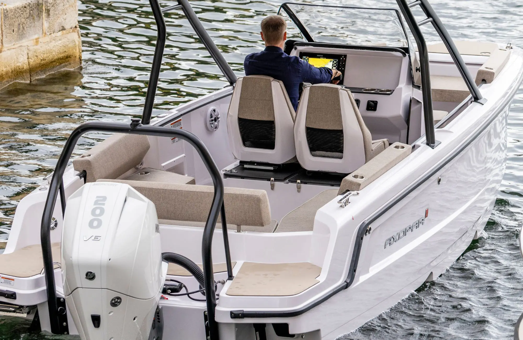 Renowned Finnish designer Jarkko Jämsén, Axopar’s head of design, is the visionary behind the brand’s distinctive hulls, the twin-stepped, sharp-entry hulls are engineered for grip, comfort, and speed across all conditions. The Axopar 22 shares this DNA, offering the same confidence-inspiring ride and agile handling as its larger siblings. From its sleek profile to its dry, responsive hull, this 22 foot boat proves that size doesn’t limit capability.