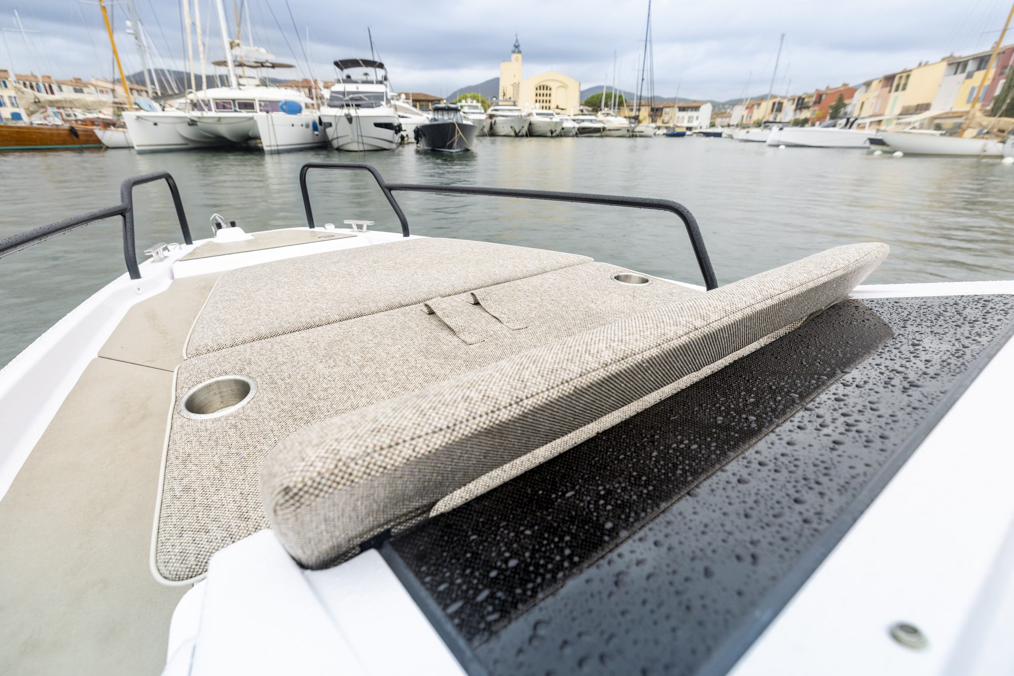 Explore the ultimate luxury on the Axopar 22 & 25 with the new Mediterrana upholstery package. Discover the enhanced features, from the stylish backrest on the bathroom to the integrated cup holders, making this boat a standout.