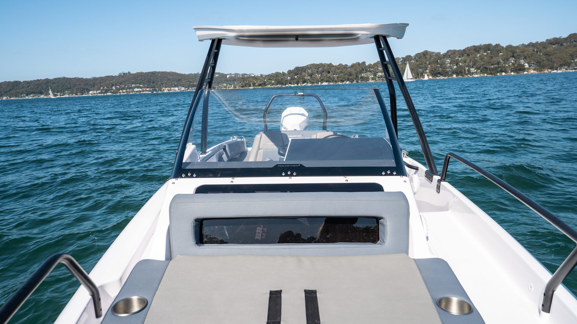 On deck, every centimetre is designed for versatility. The walkaround layout makes moving about safe and easy, while the wide helm console and windscreen offer excellent visibility and protection. A full-width sunpad above the cabin, multiple aft deck layout options, and abundant storage mean you can tailor your Axopar 25 to suit your lifestyle.