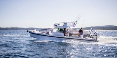“I’ve had boats for most of my working life. These are just phenomenal,” Rob says. “They’re absolutely fabulous in the sea. I use it quite a bit on my own — it’s really easy to manhandle. She’s so versatile, you can just do anything. I often go dolphin watching in the estuary. My wife loves it too because you’ve got full access all the way around. And you can still sleep on it in the cabin.”