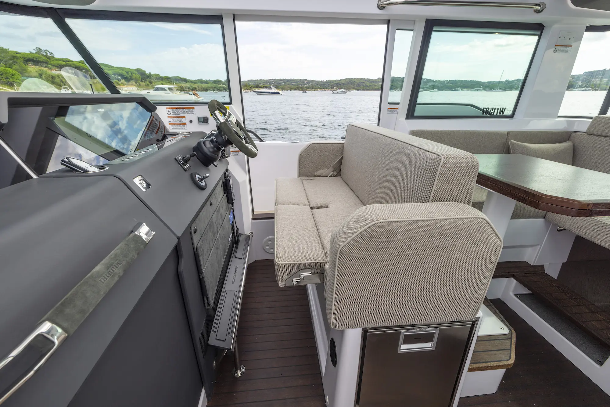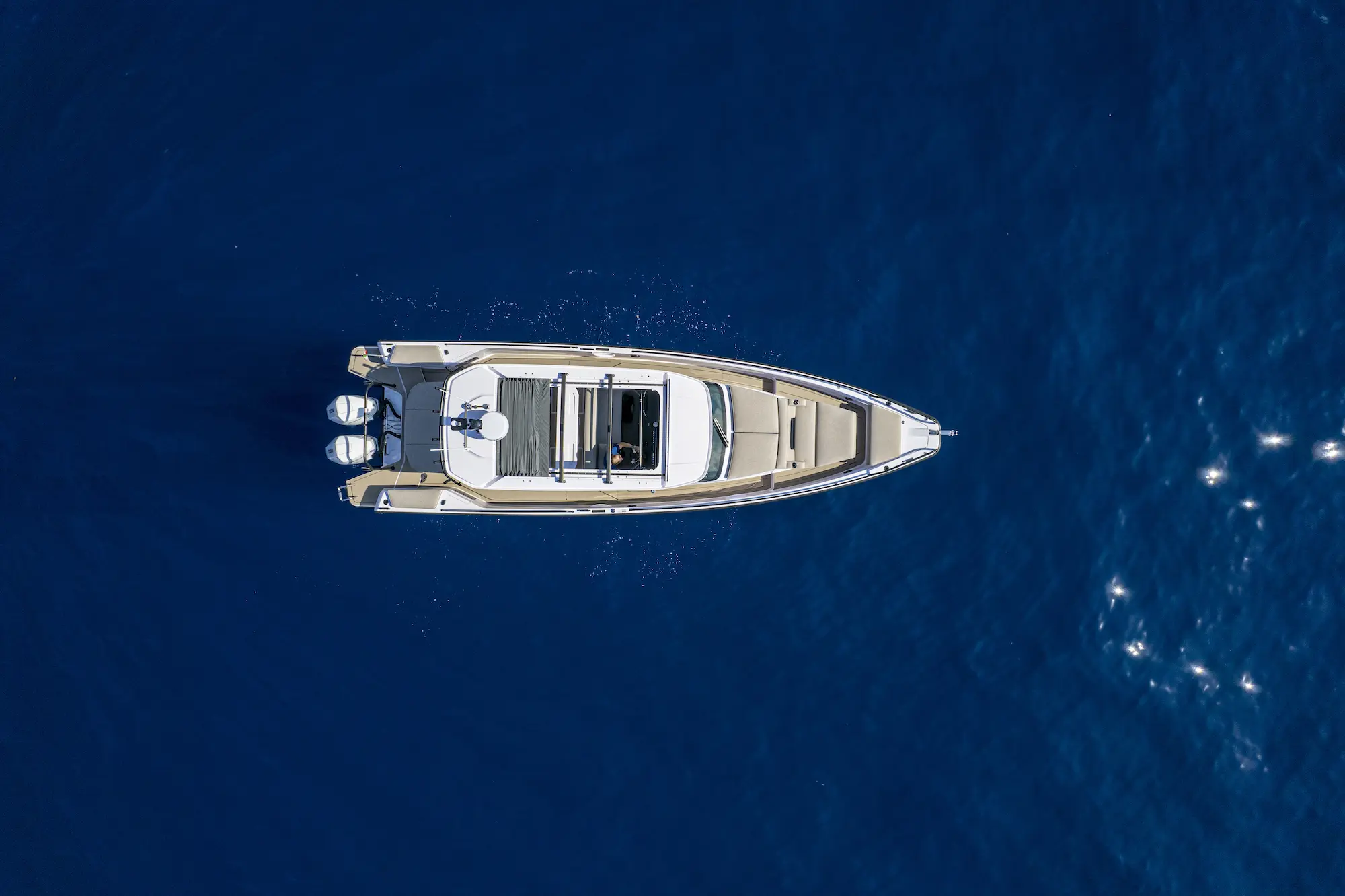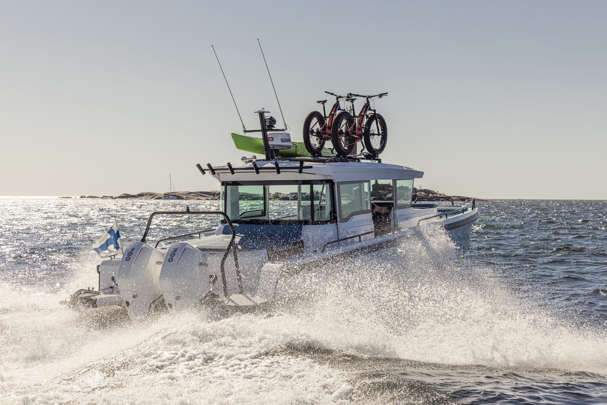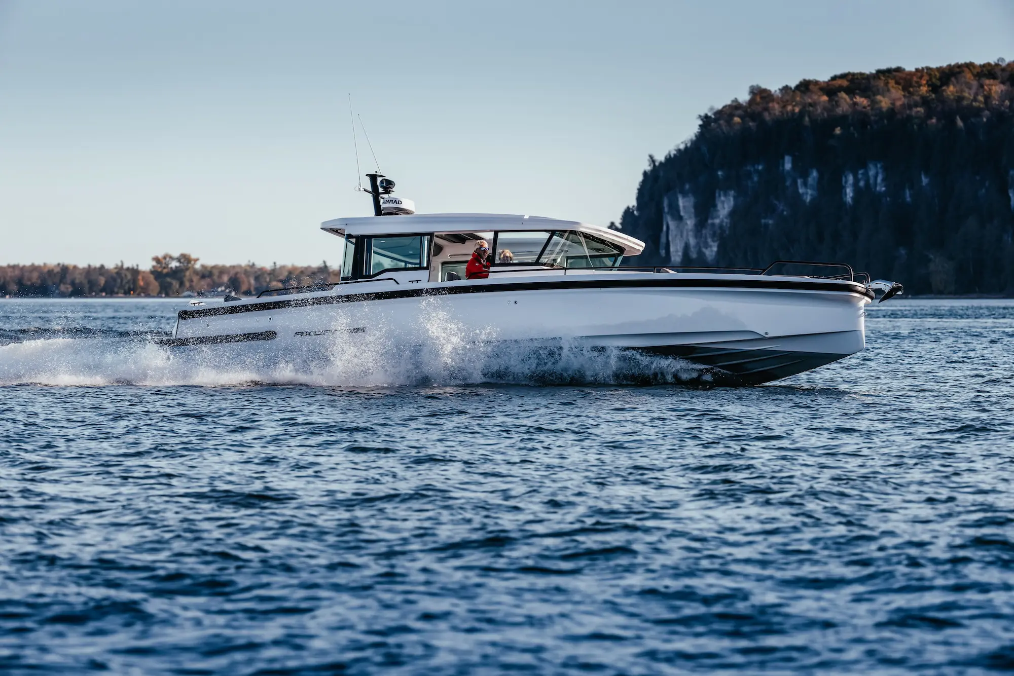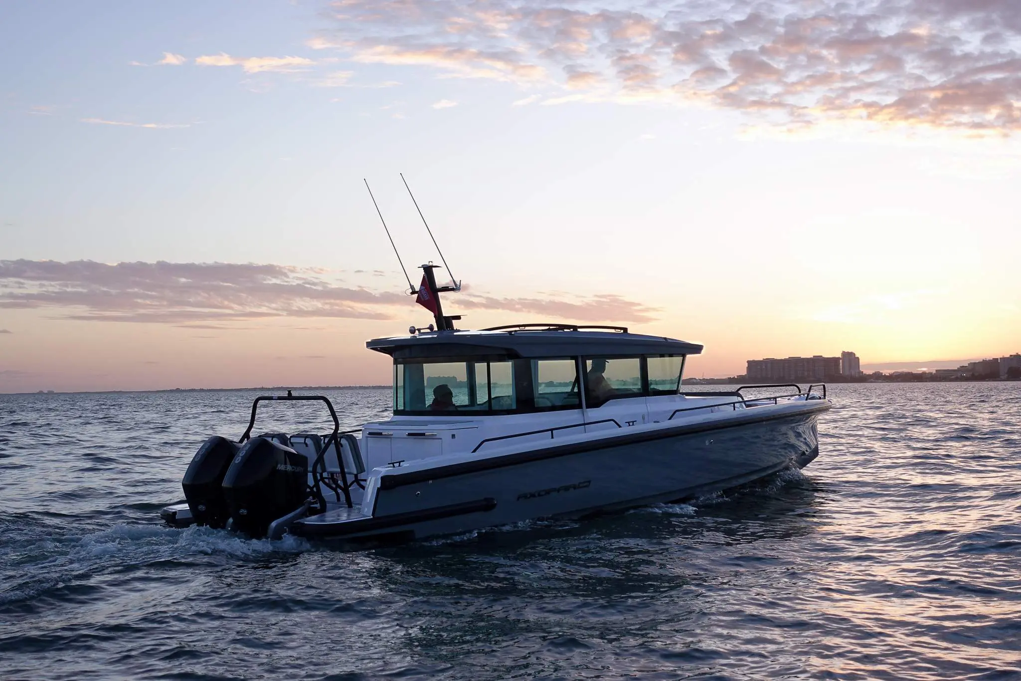 Designed for all-weather exploration, the Axopar 37 Cross Cabin blends the agility and performance of a sport boat with the comfort and protection of a fully enclosed pilothouse. Wide sliding doors and a panoramic windscreen create a seamless connection between indoor and outdoor living, while the electric roof adds flexibility for sunny days or sudden changes in weather.