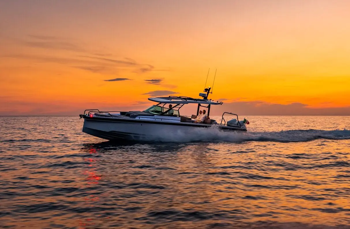 The Axopar 37 Sun Top blends speed, comfort, and practicality into one of the most thrilling sport boats on the market. Designed for sun-drenched cruising with the option of shade and protection, this 37 foot boat delivers an unmatched on-water experience. The signature sliding sunroof transforms your cockpit at the touch of a button, while the walkaround deck, forward cabin, and aft layout choices make it one of the most versatile boats in the Axopar 37 range.