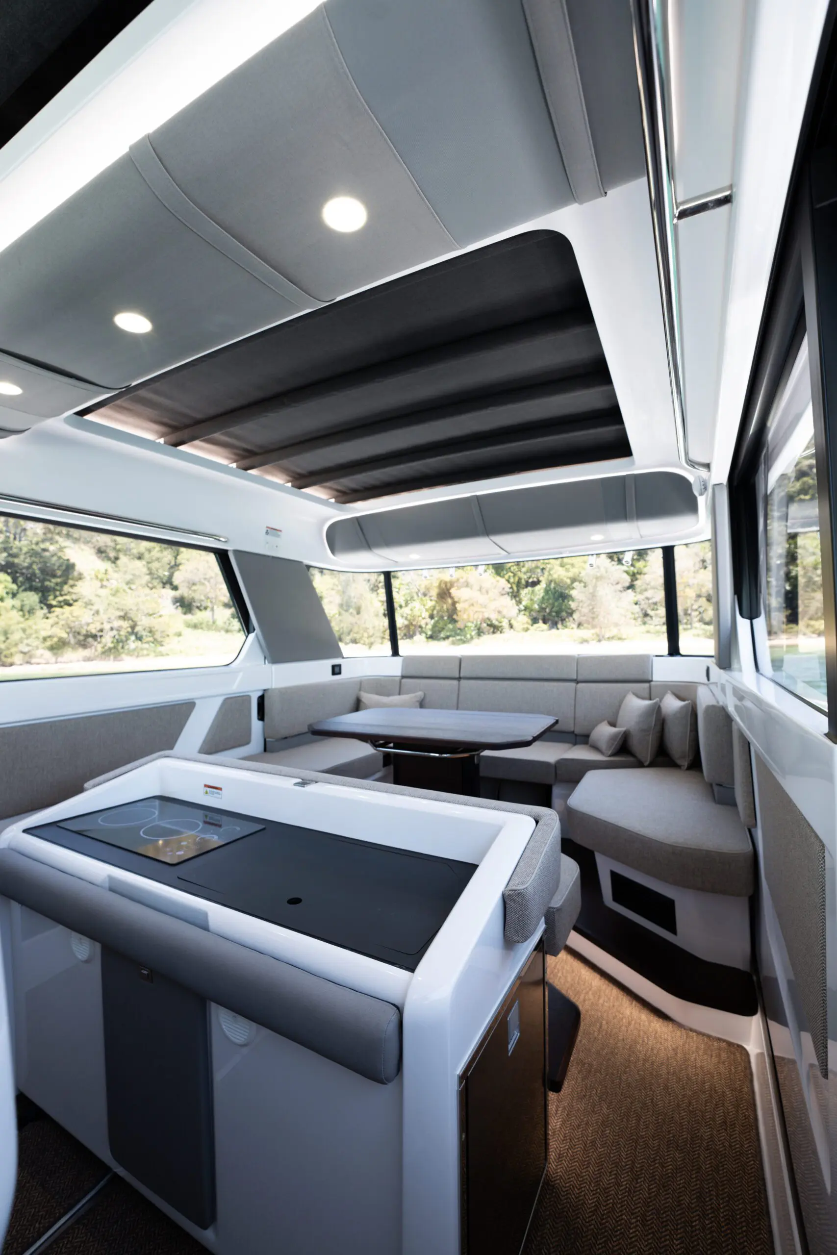 The Axopar 45 Cross Cabin is packed with intelligent features designed for comfort, usability, and adventure-ready performance. From seamless indoor-outdoor living to modular layouts and high-tech helm controls, this enclosed cabin boat is made for boaters who expect more from their 45 foot boat.