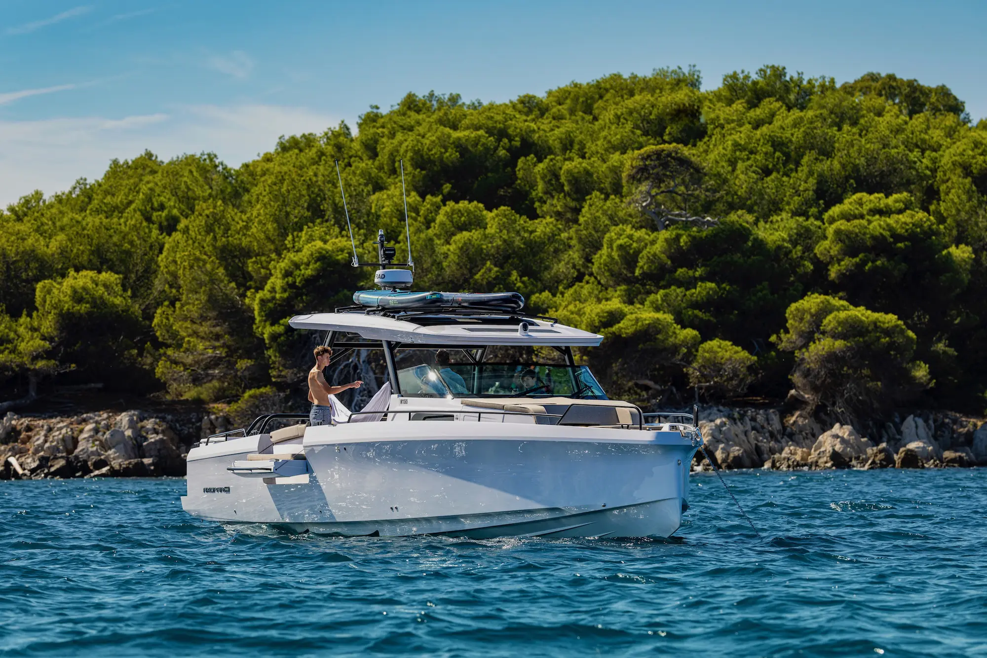 At the heart of every Axopar 45 Sun Top is a next-generation twin-stepped hull, developed through rigorous R&D and real-world feedback from thousands of Axopar owners. Designed in collaboration with award-winning naval architect Jarkko Jämsén (Navia Design), this fast boat combines offshore capability with sports car-like handling, allowing you to cruise confidently through chop or push into open water adventures.