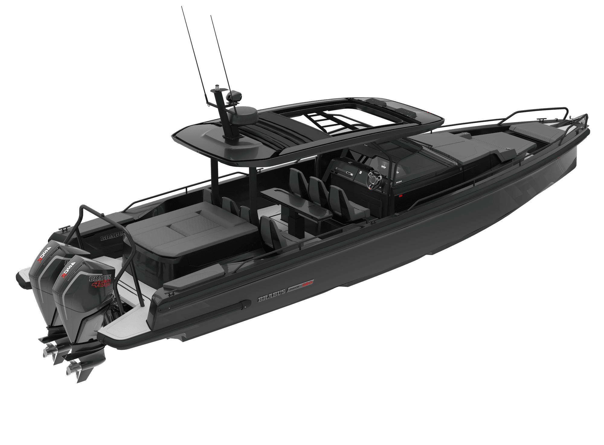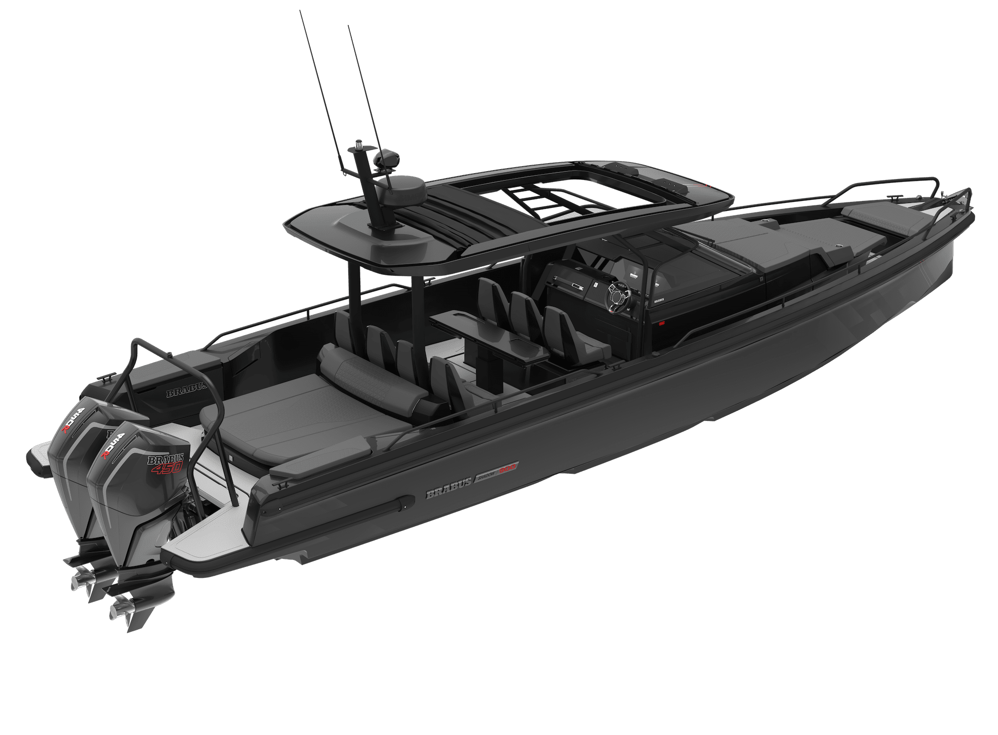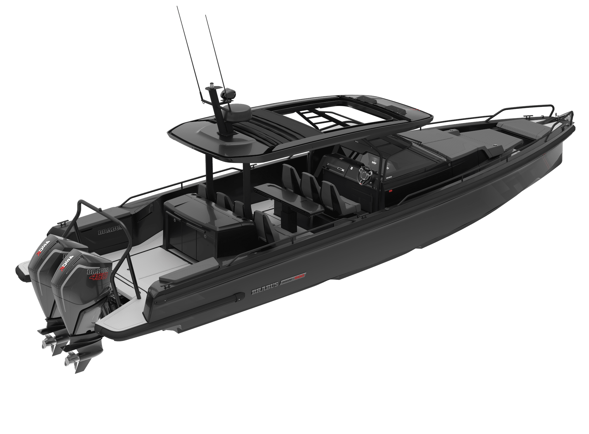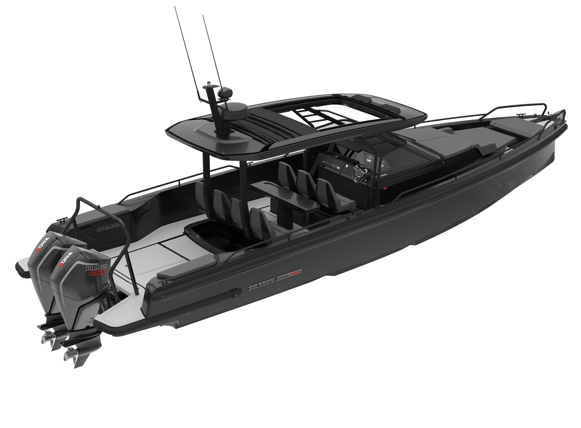Using Mercury’s latest V8 engines in twin 250hp gives it the BRABUS Shadow 500 name. There is more to the name than meets the eye! Find out with the Boat Show.