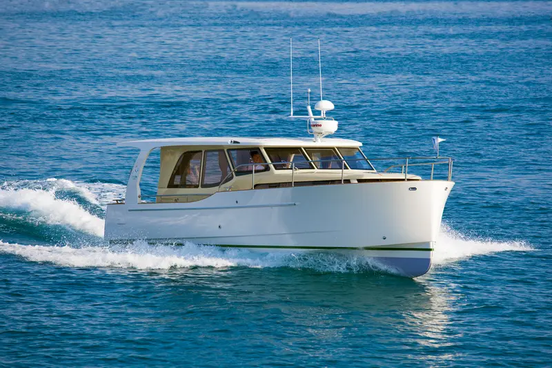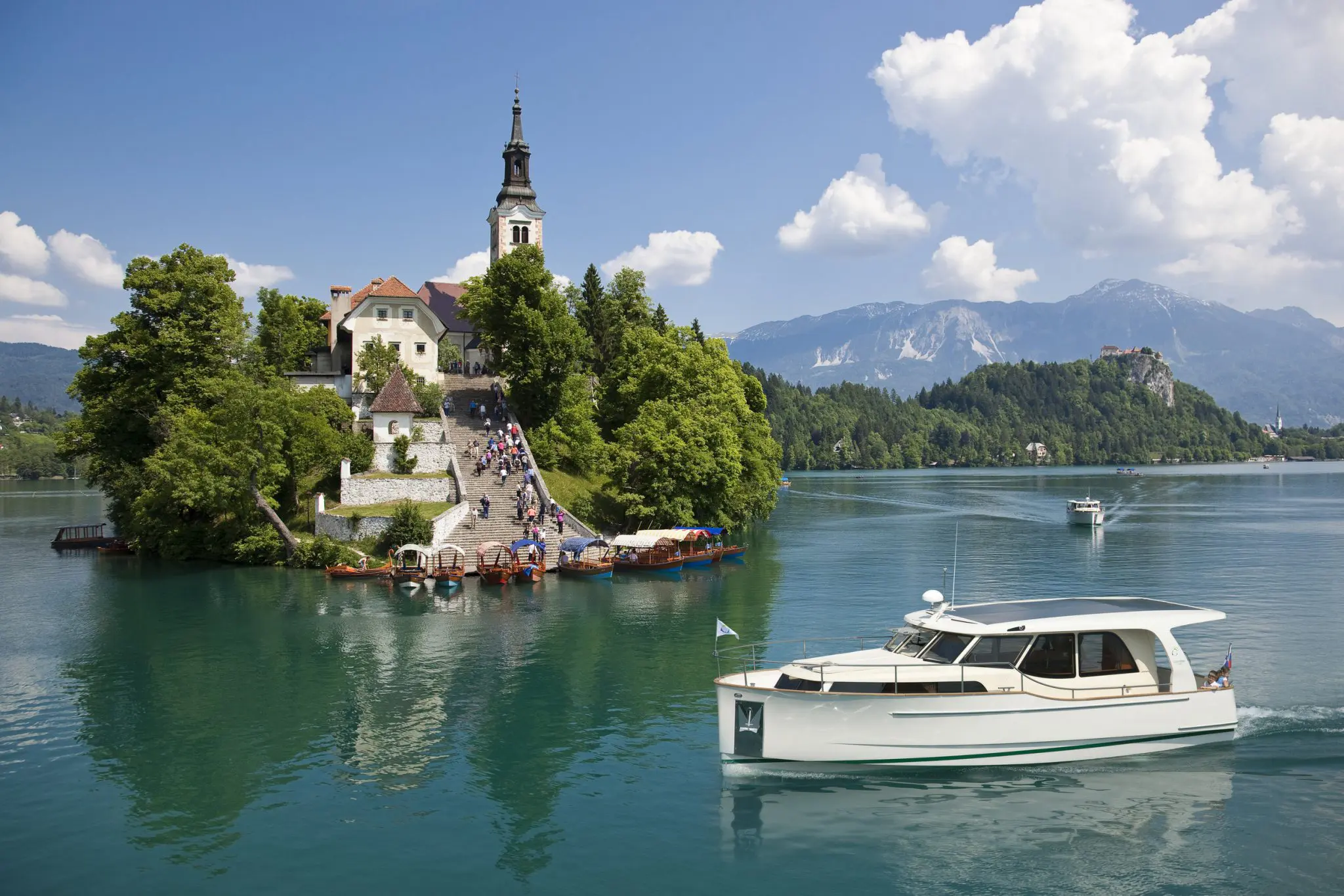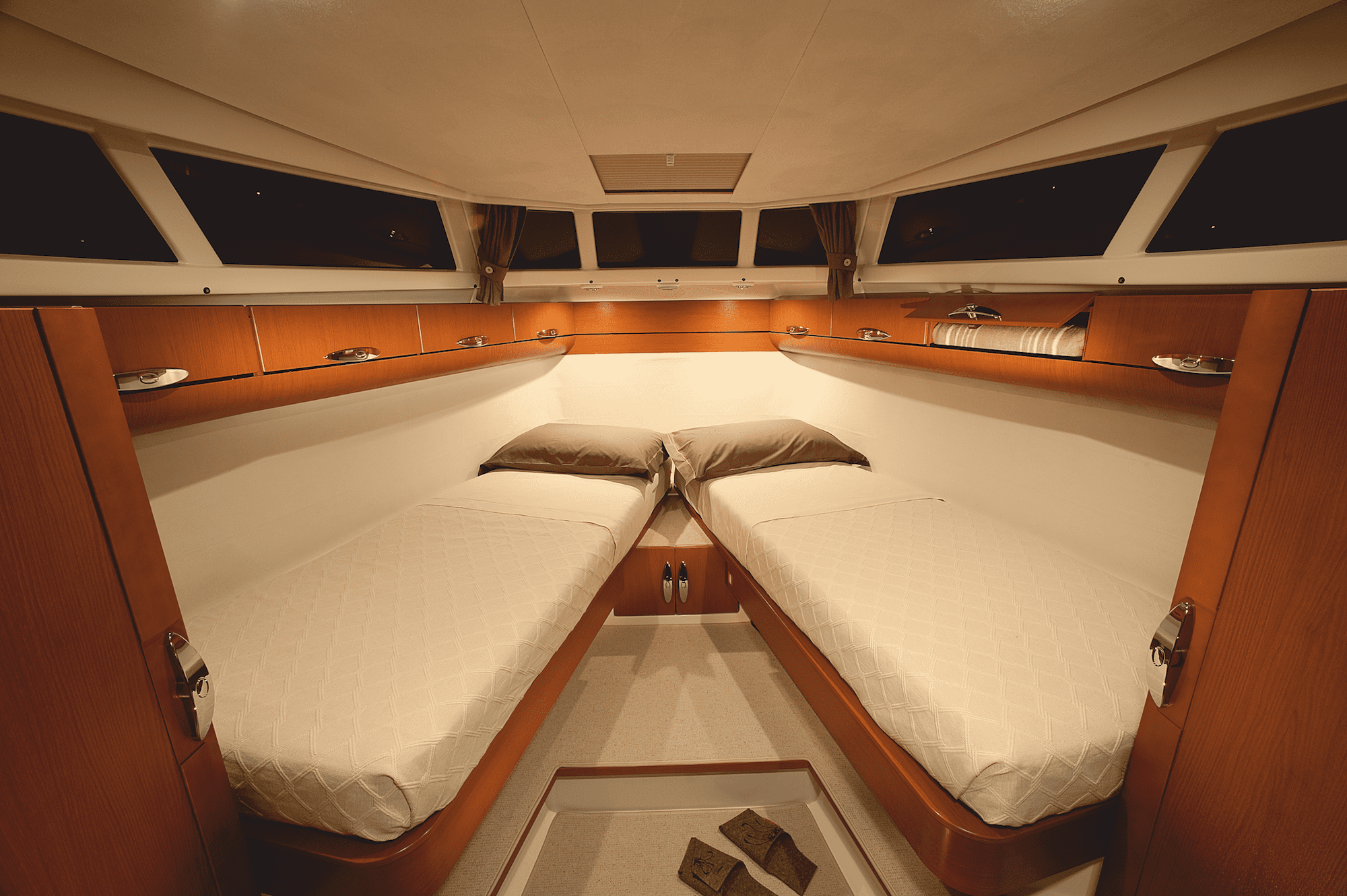 Greenline uses a hybrid system that lowers fuel use and lets you cruise or anchor on electric or solar power, giving quiet refinement. The 40 brings light sociable spaces with a clean modern vibe.
