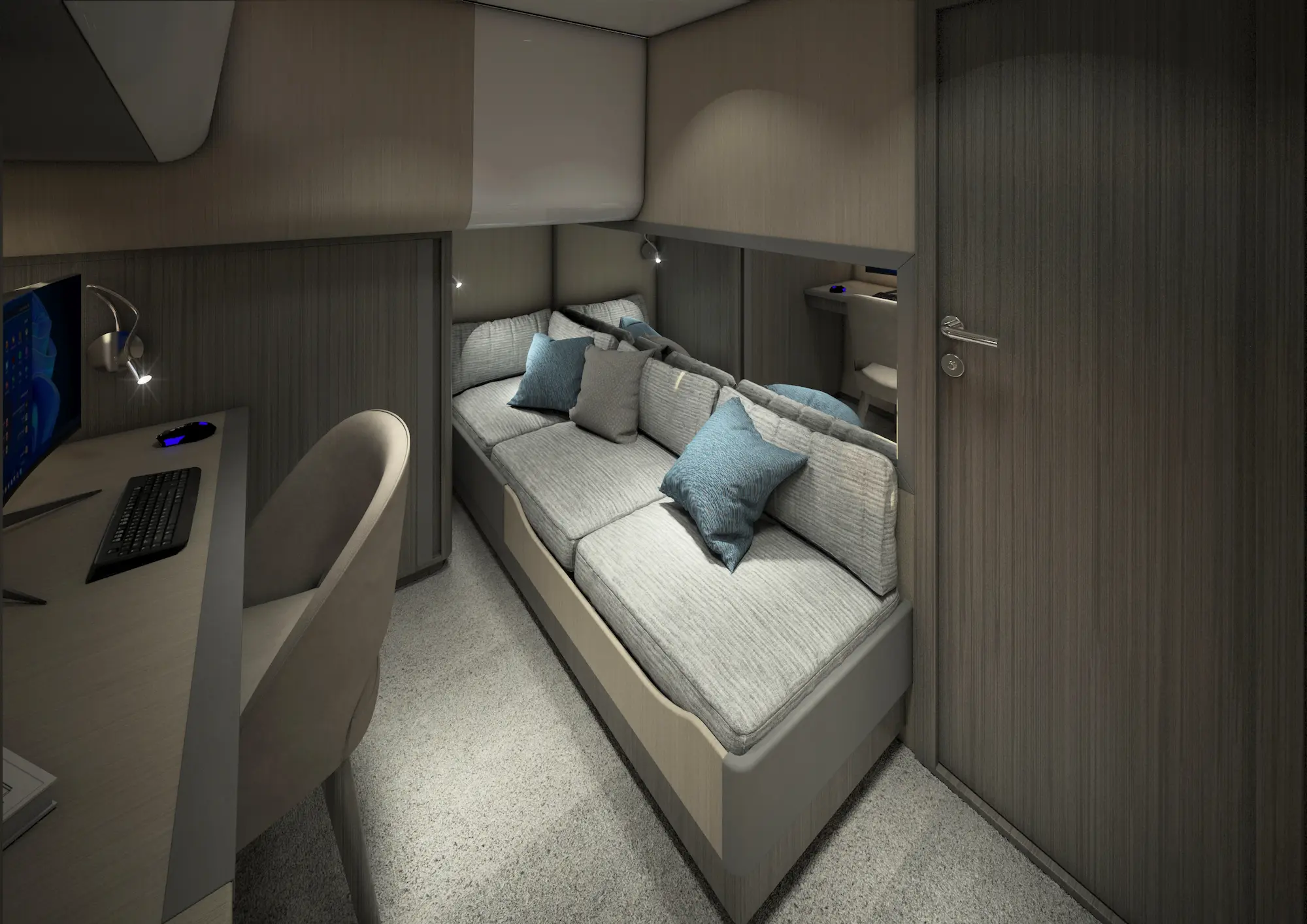Internally, the Greenline 58, designed by Marco Casali, excels in attention to detail, with high-quality materials creating an elegant and comfortable onboard experience. With an onboard office, spacious galley, and modern bathroom, travellers can seamlessly blend work and leisure while enjoying breathtaking vistas.