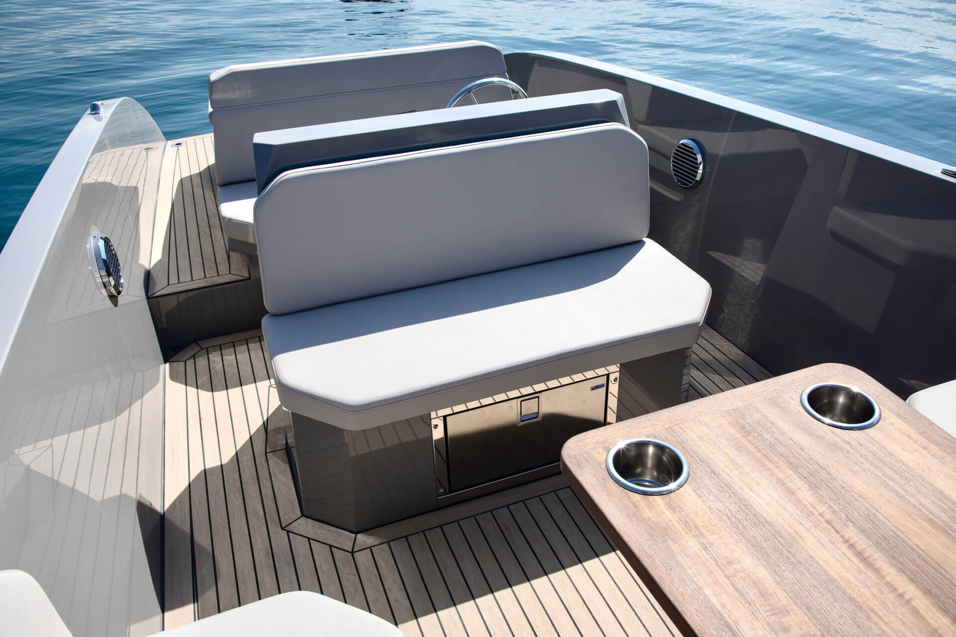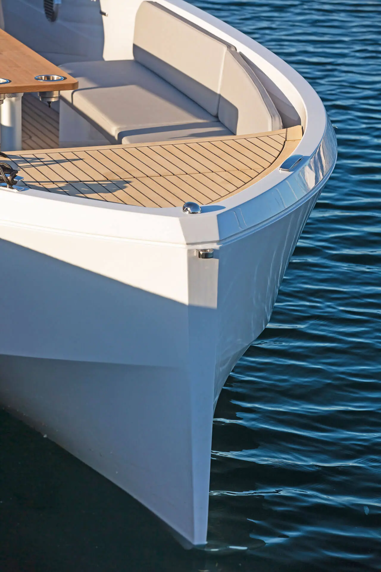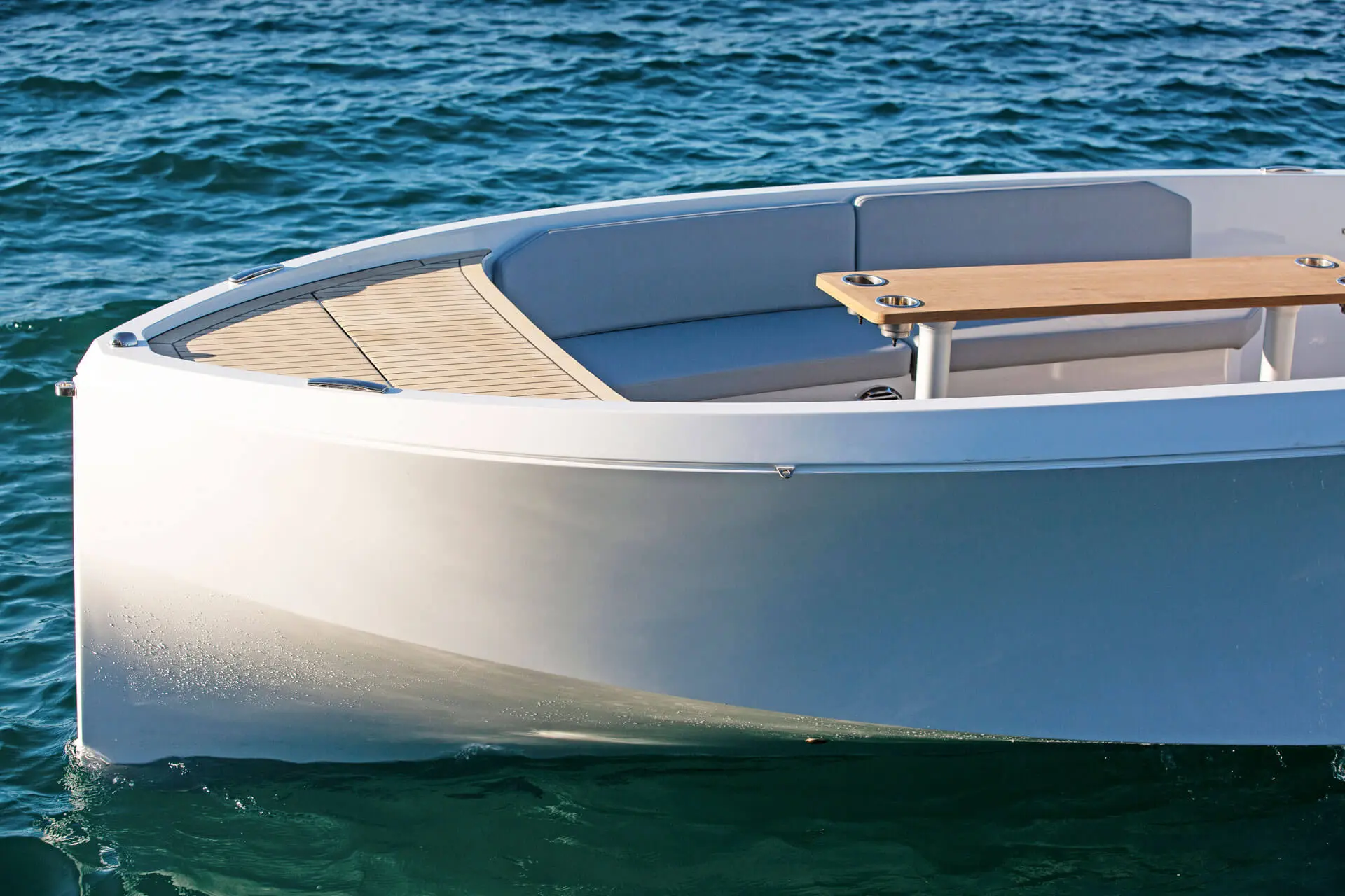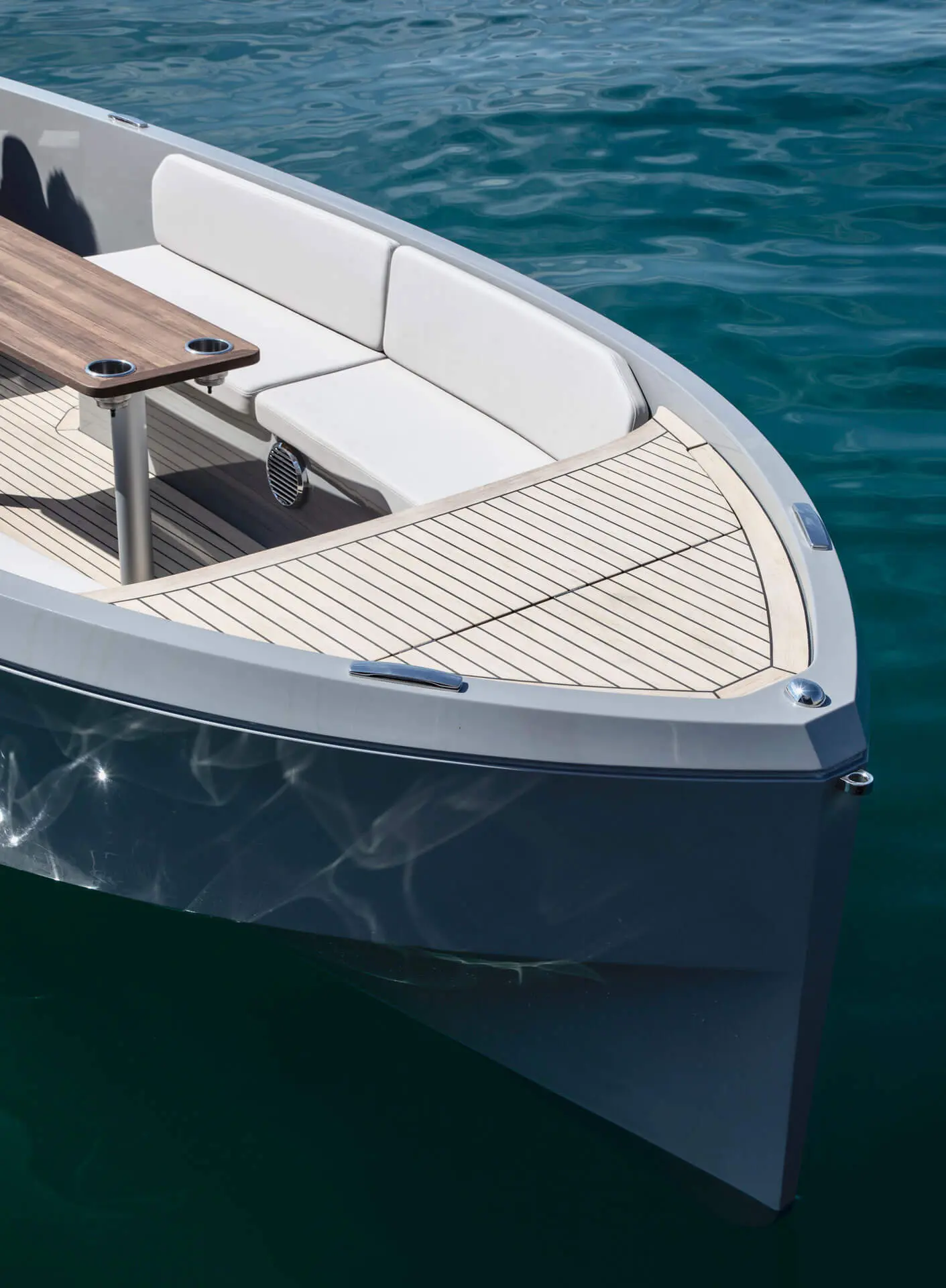 Not only does its hull effortlessly slice the waves, gliding silently through the water with style and speed, it also features a distinctive hangout space ideal for all your social experiences on water.
