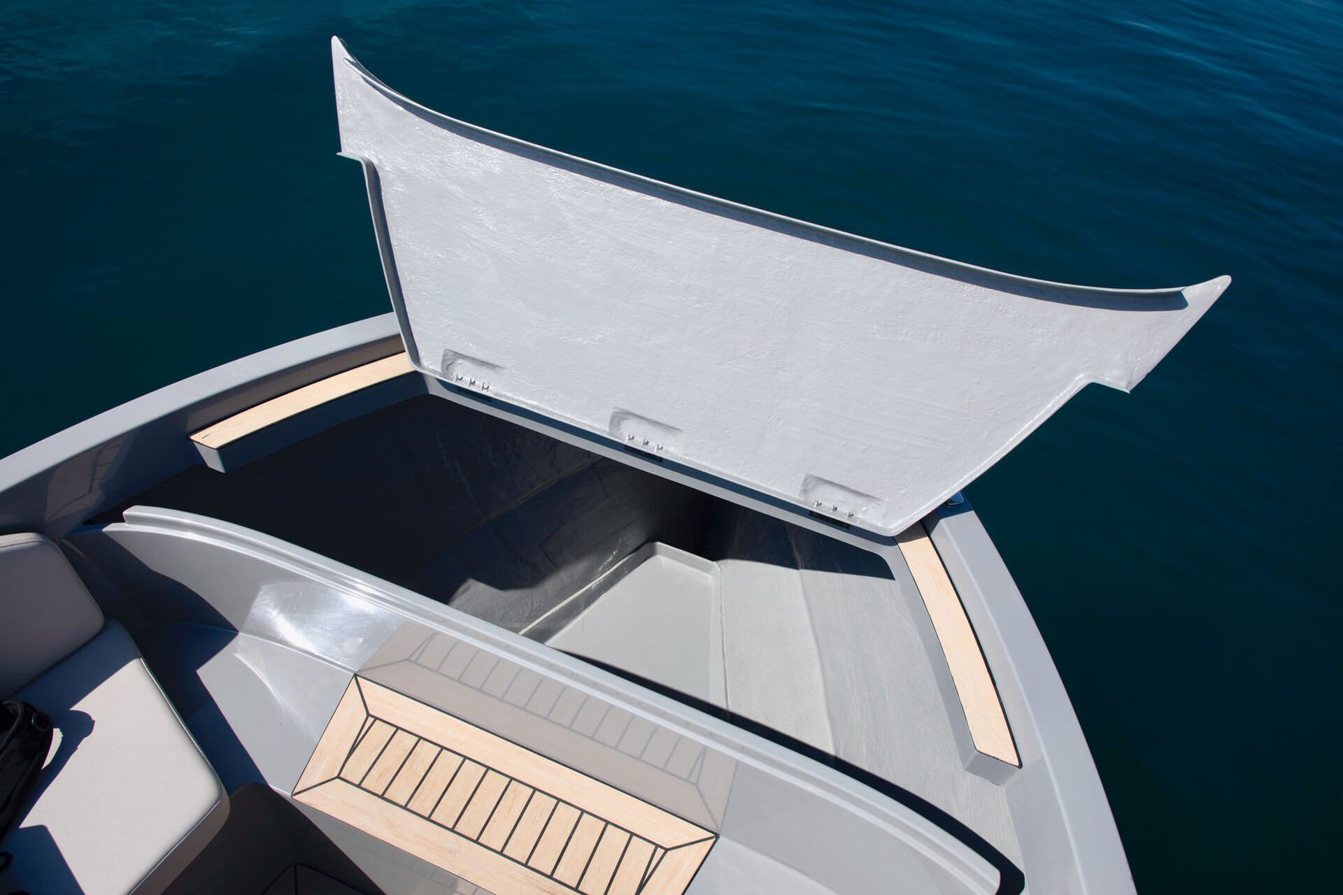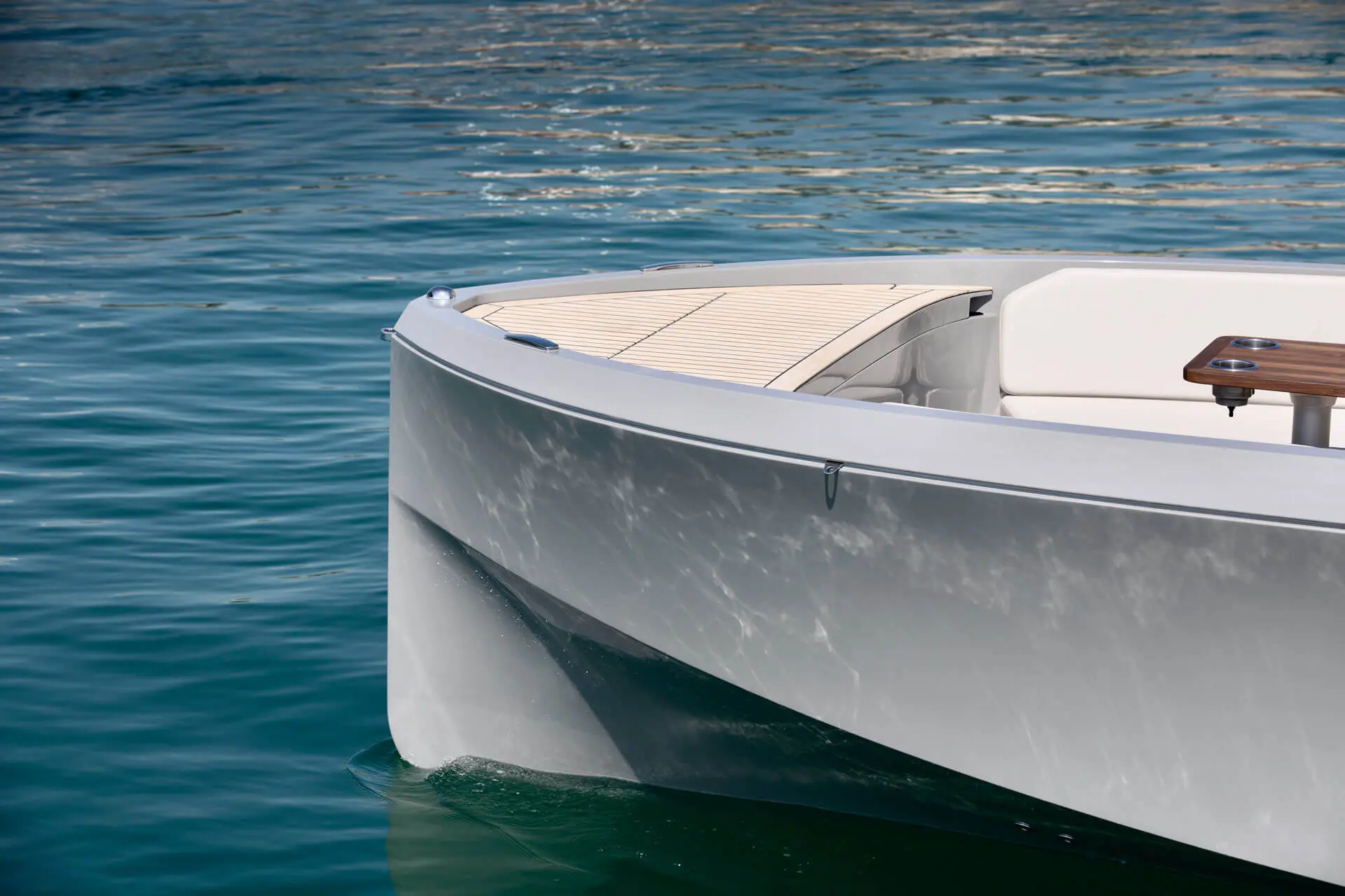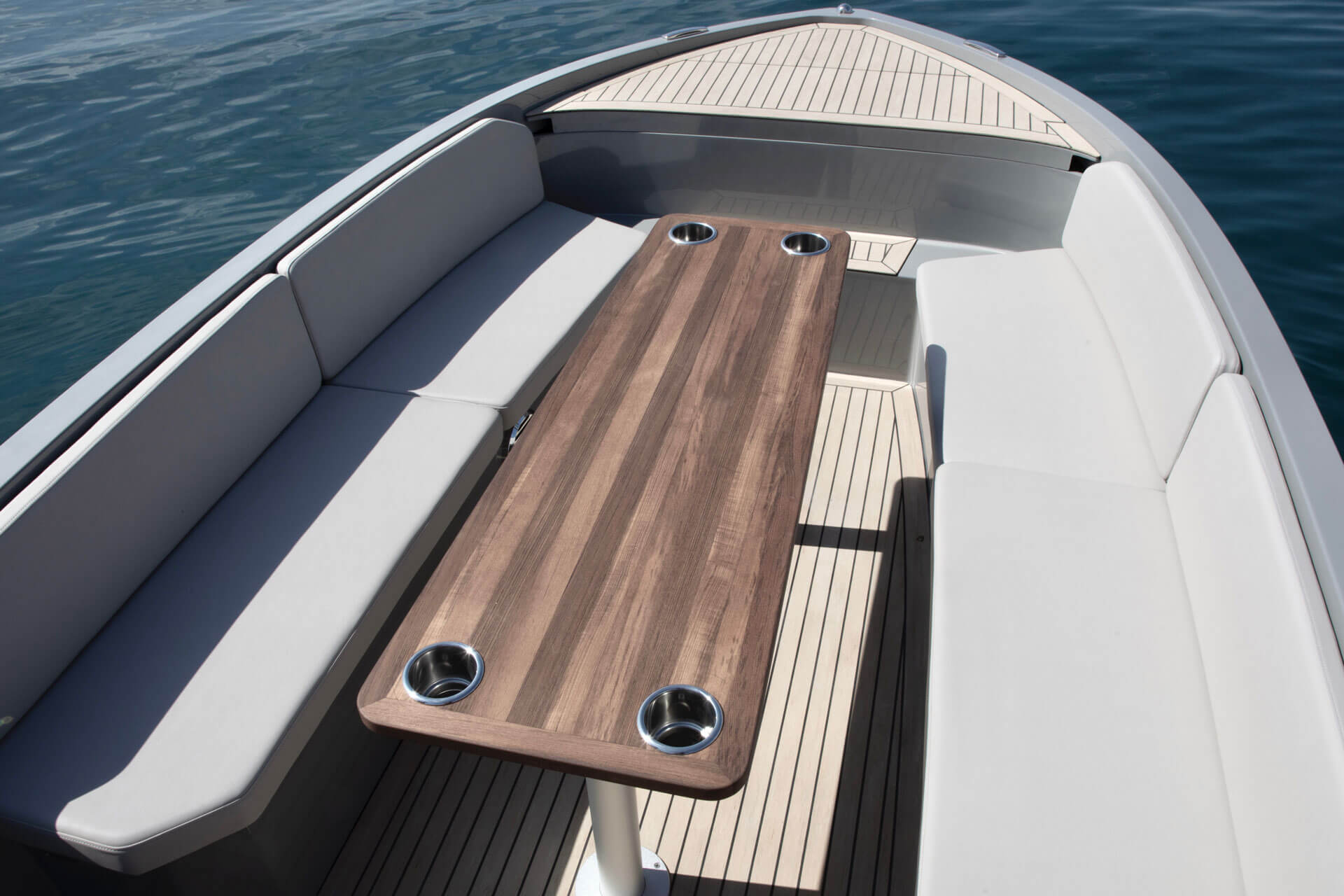 Not only does its hull effortlessly slice the waves, gliding silently through the water with style and speed, it also features a distinctive hangout space ideal for all your social experiences on water.