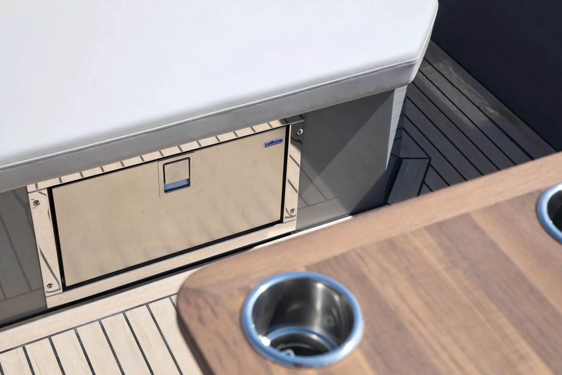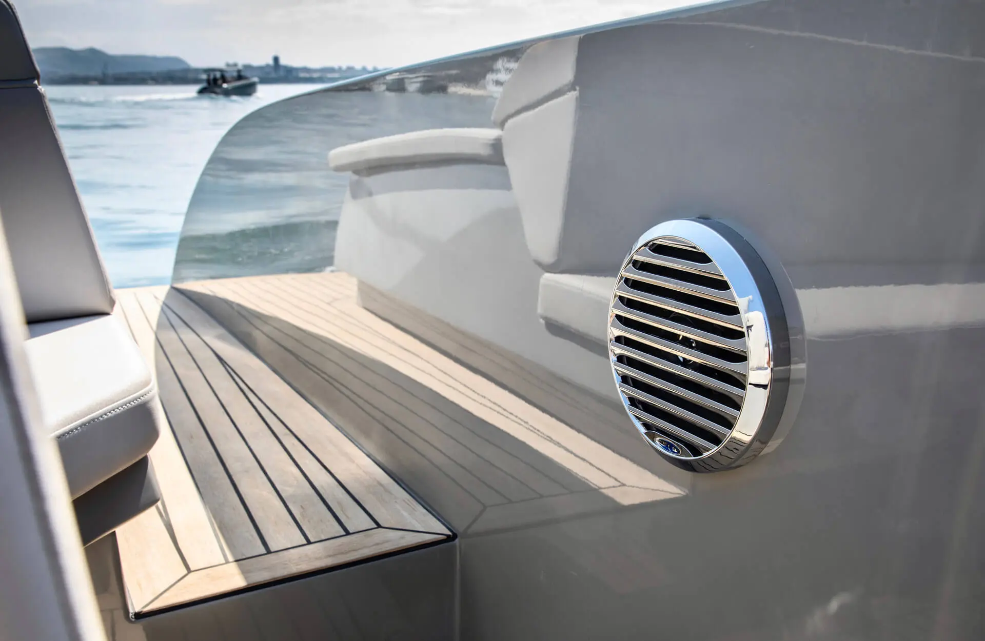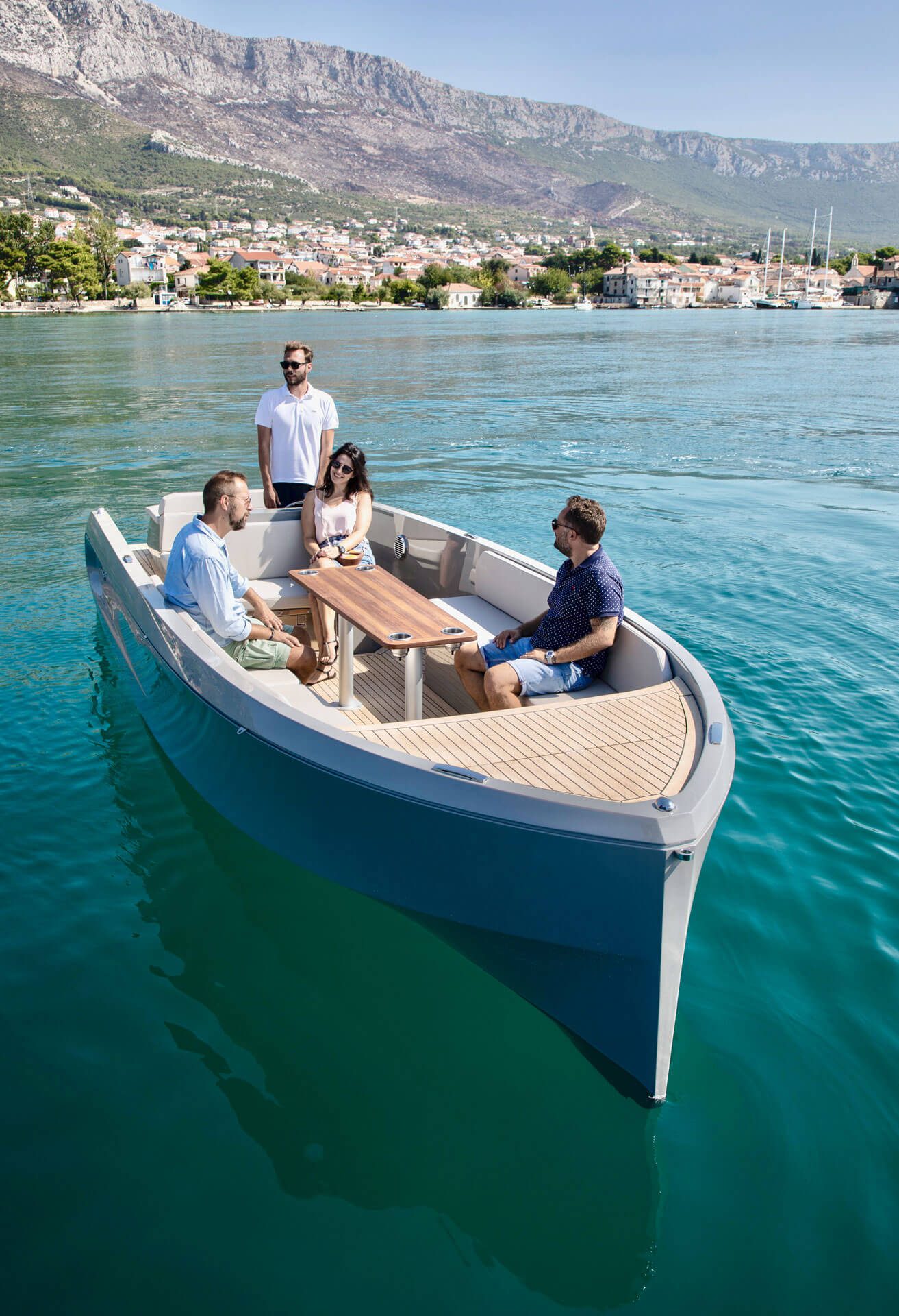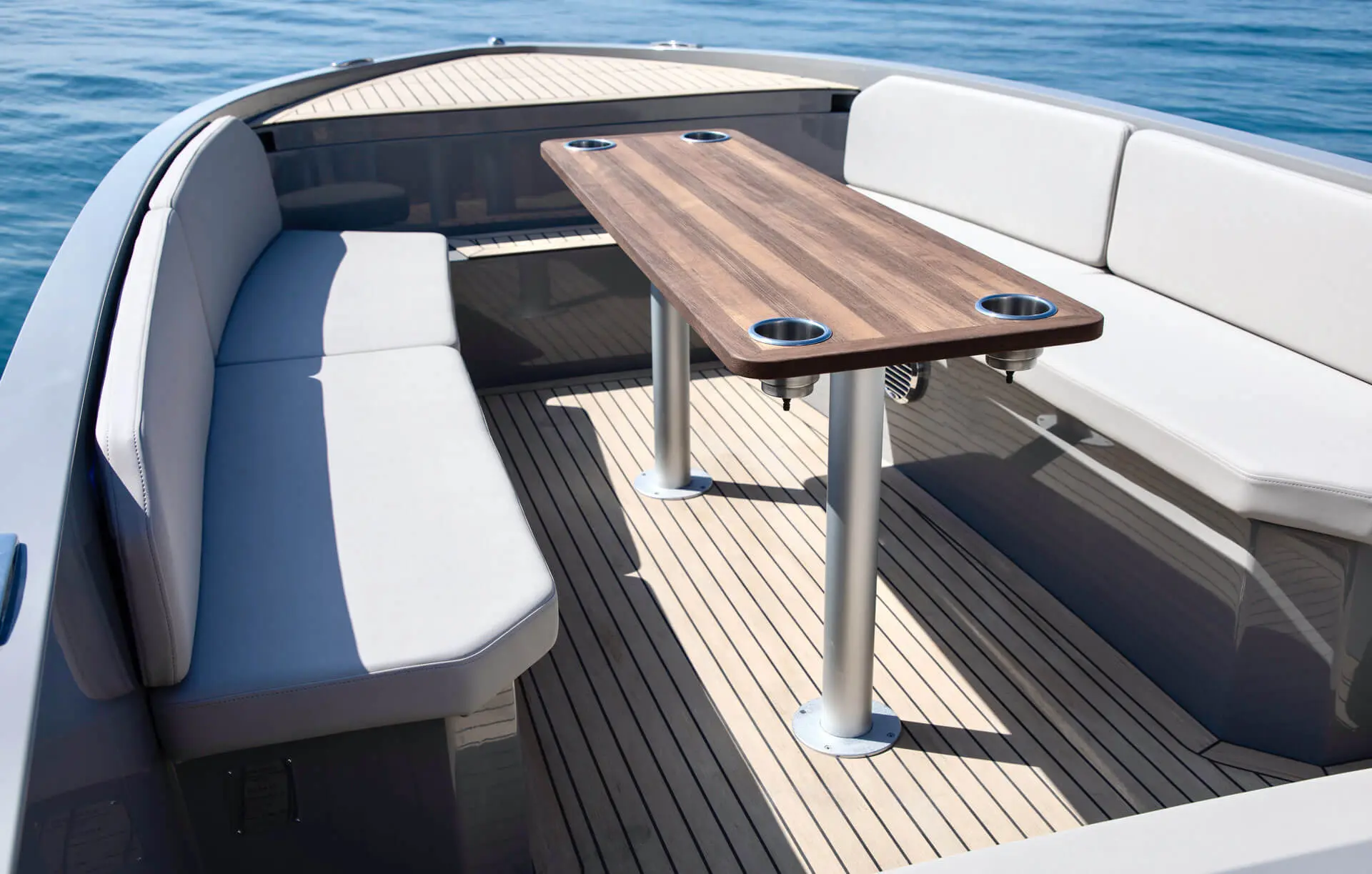 Not only does its hull effortlessly slice the waves, gliding silently through the water with style and speed, it also features a distinctive hangout space ideal for all your social experiences on water.