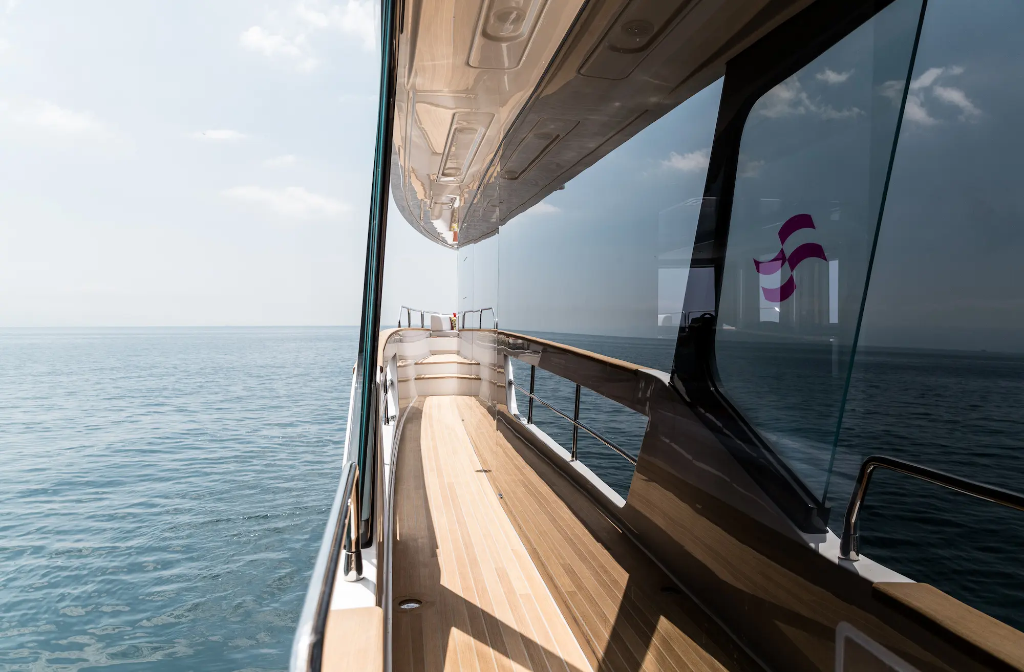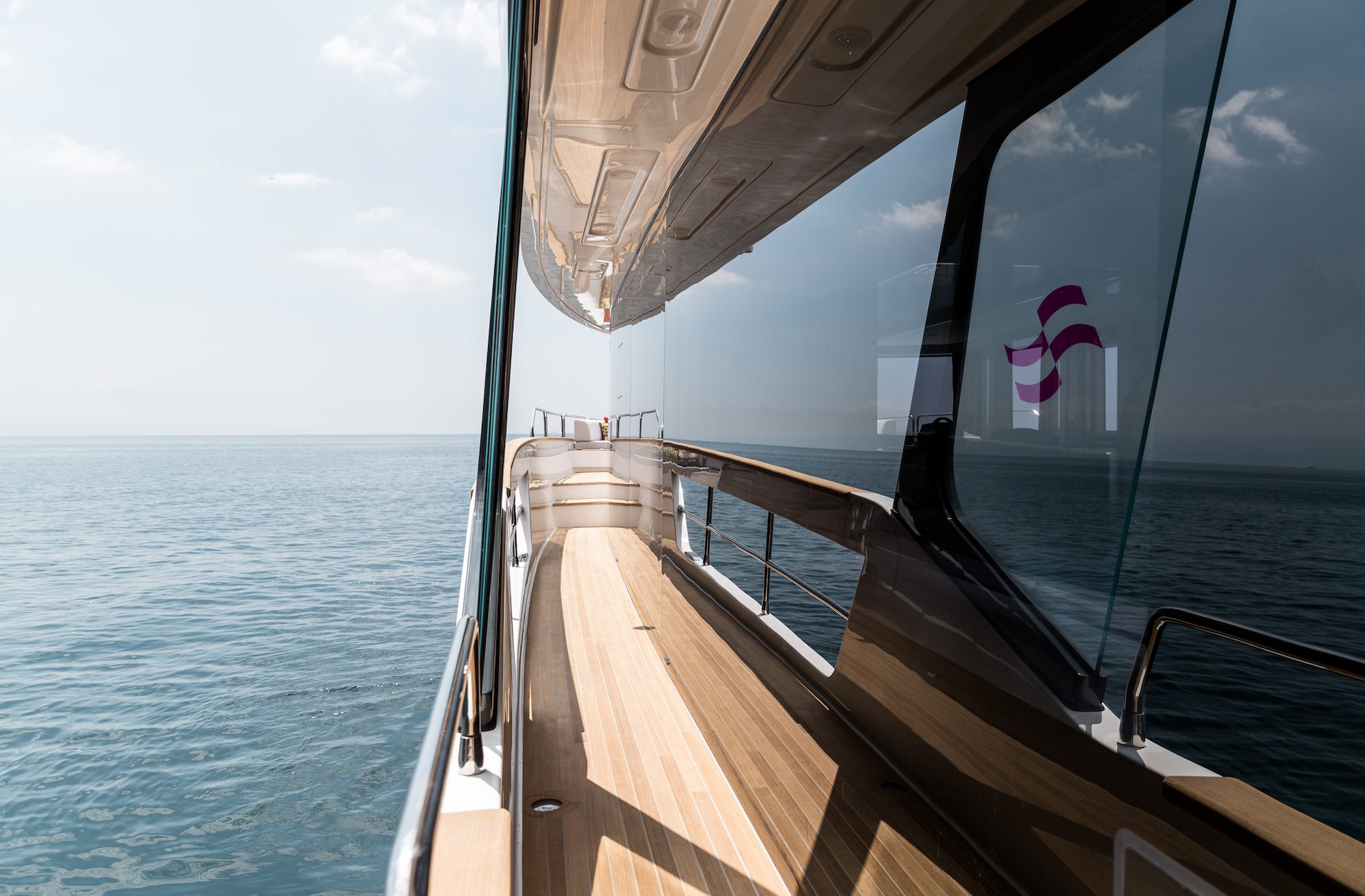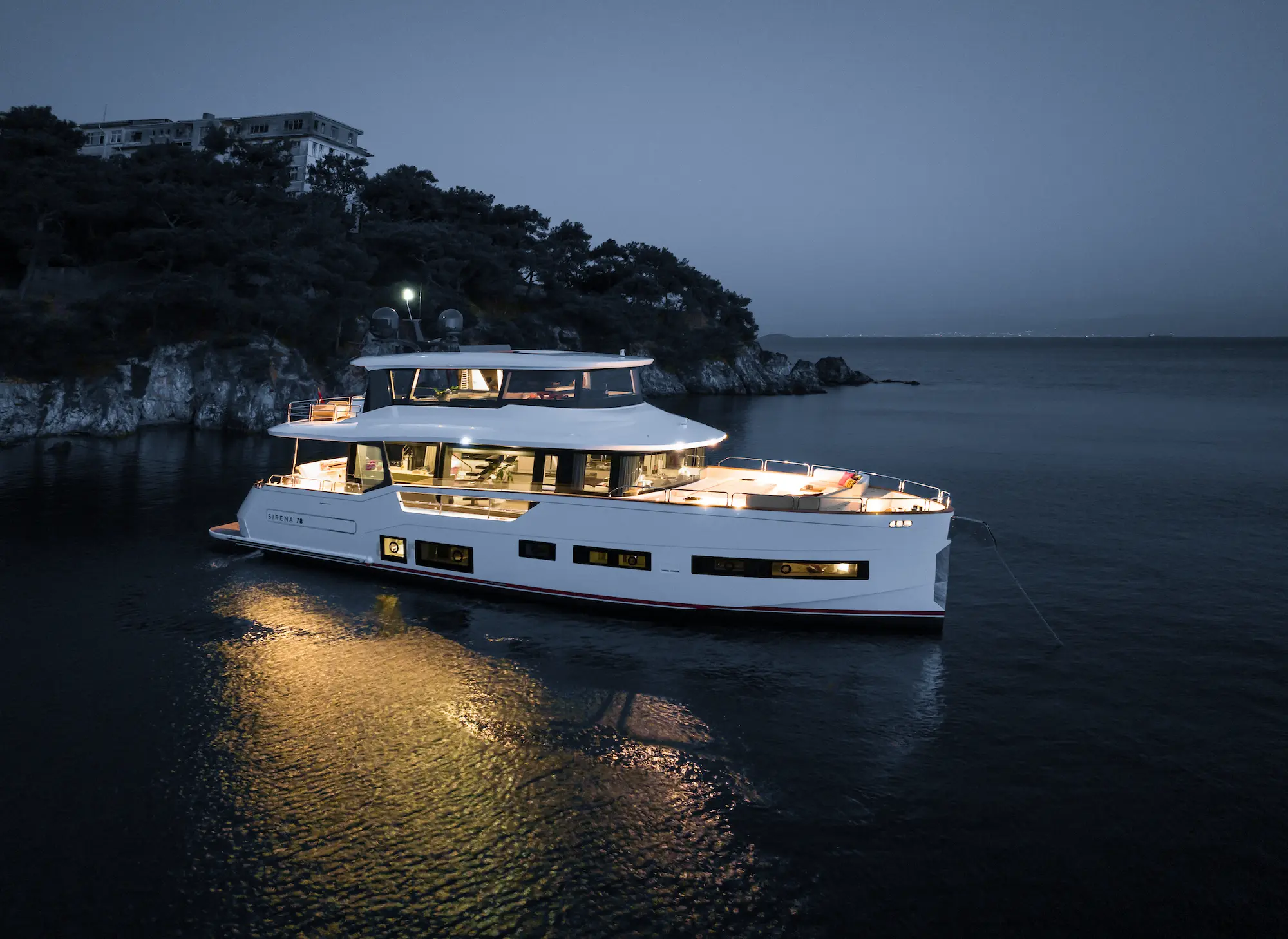 The Sirena Yachts 78 blends modern and classic design, with square stems and rectangular windows for a contemporary feel, softened by elegant curves and deep bulwarks.