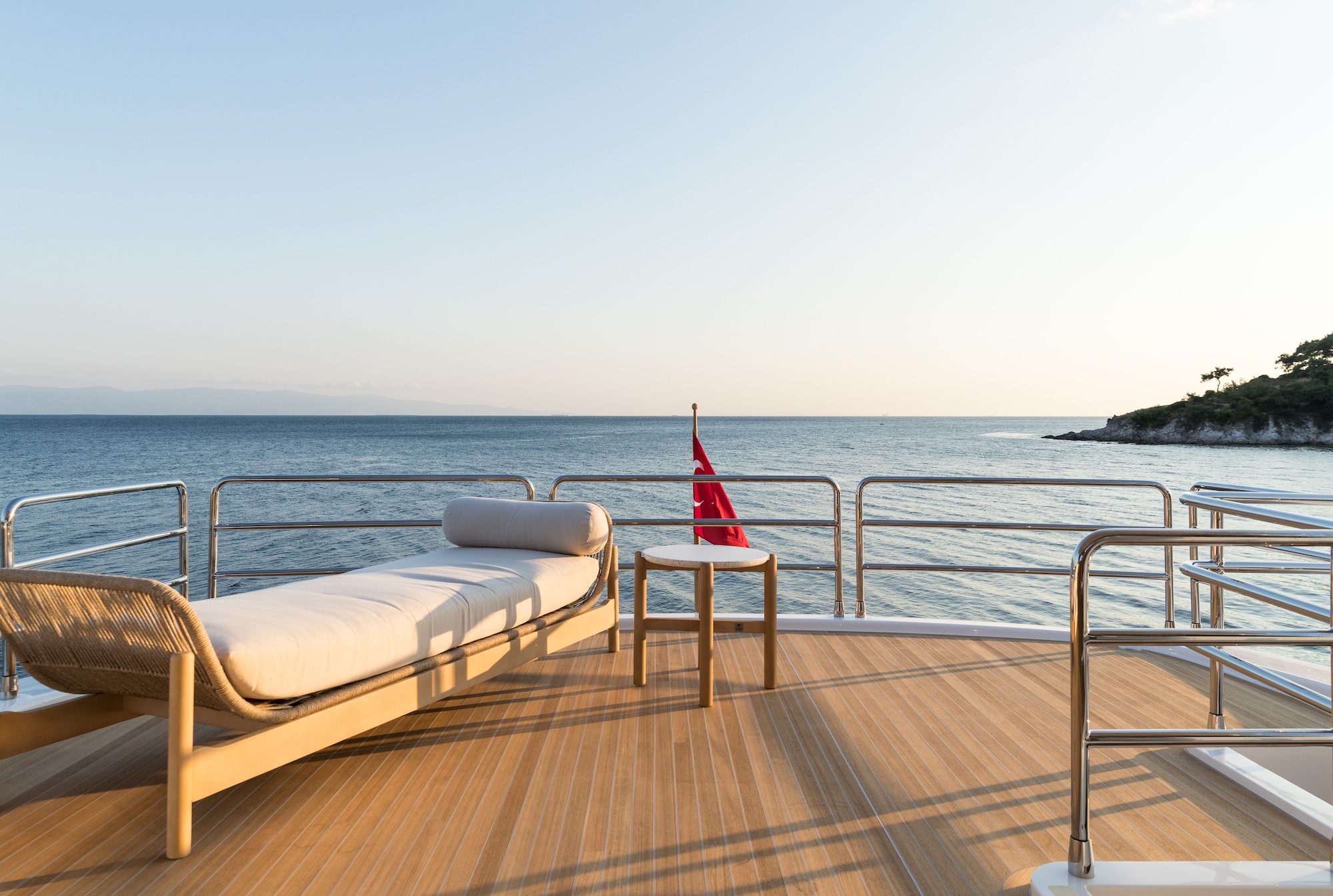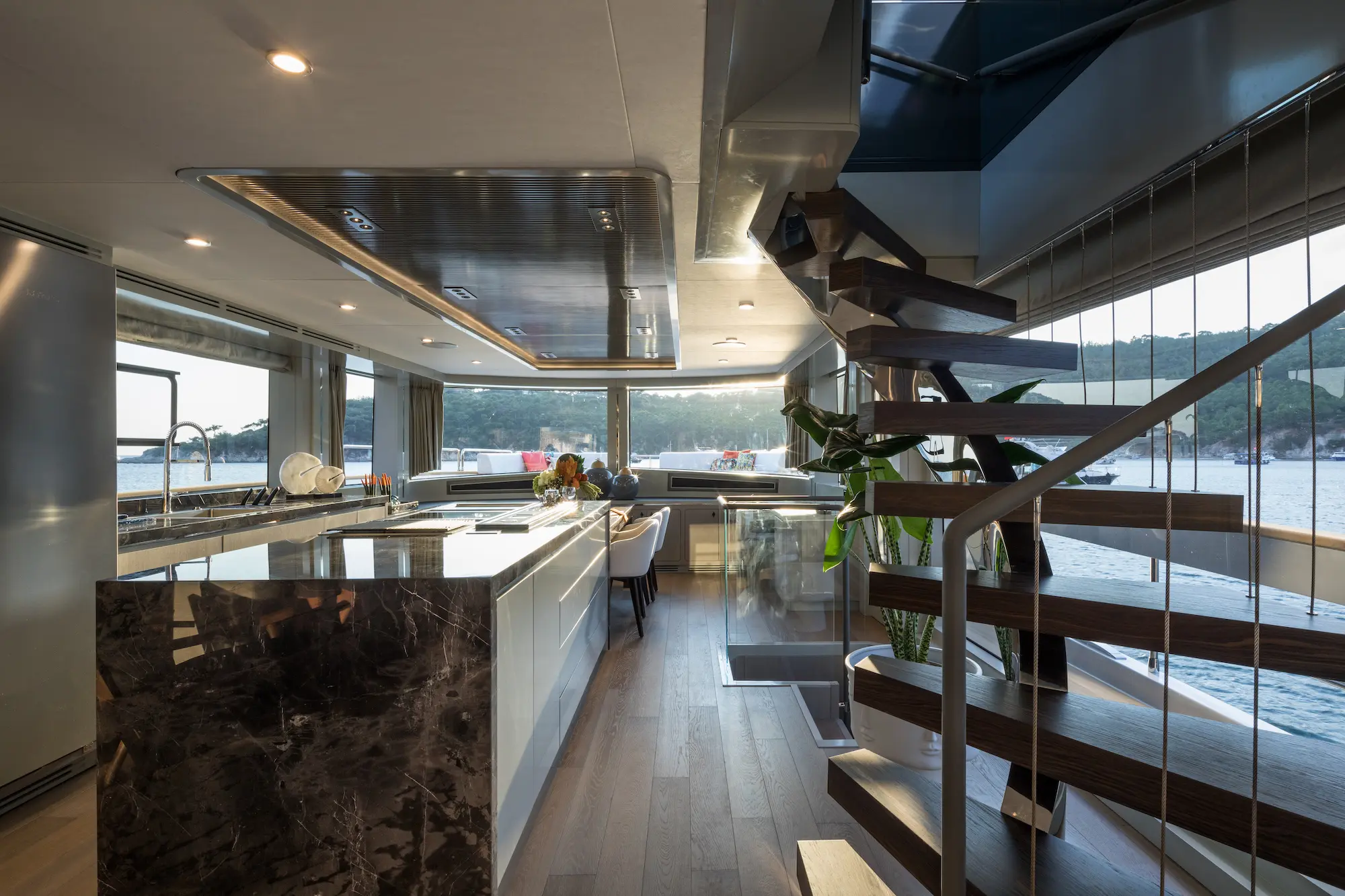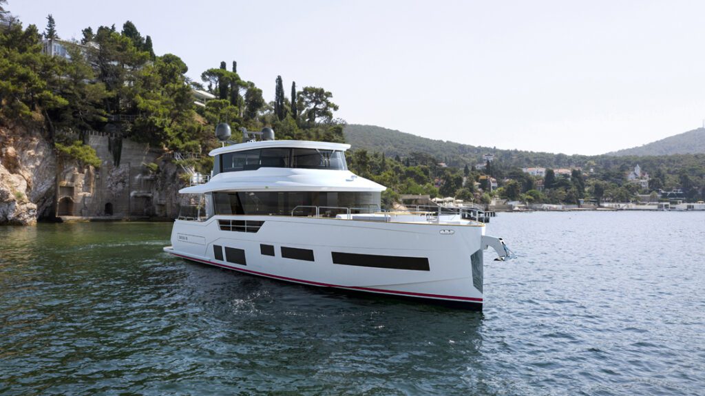The Sirena Yachts 78 blends modern and classic design, with square stems and rectangular windows for a contemporary feel, softened by elegant curves and deep bulwarks.