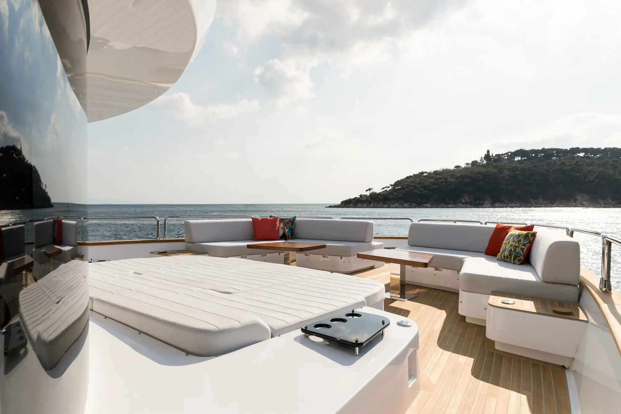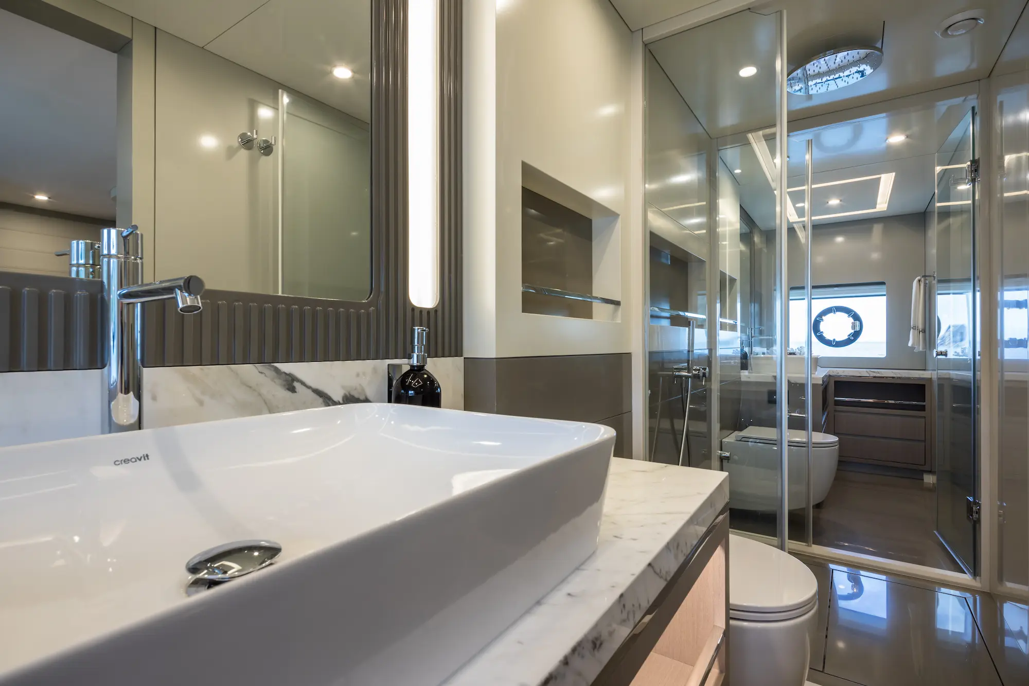 Join us on a breathtaking tour of the Sirena 88, a true masterpiece of luxury yachting. Discover the spacious cabins, elegant dining areas, and the master suite’s private terrace.