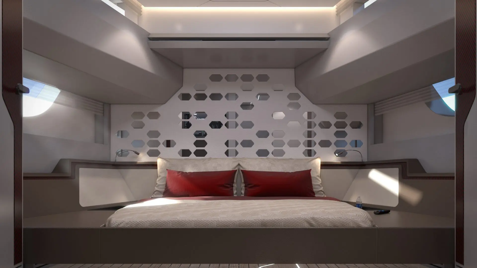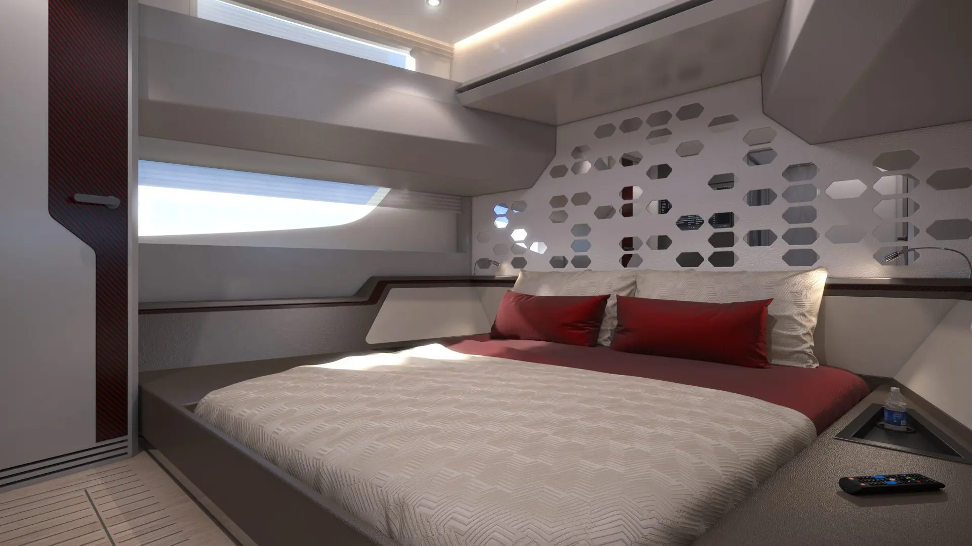 It doesn’t end with the fishing. Her sporty interior features carbon fibre finishing, and the large saloon has an outside sitting area to chill out or watch the angling action. Large fridges, big TVs, DJ panels and other entertainment will enhance the after-fishing vibe. Overnights stays will be a delight in the forward owner’s suite and two double guest cabins. There is also accommodation for two crew members when onboard service is required.