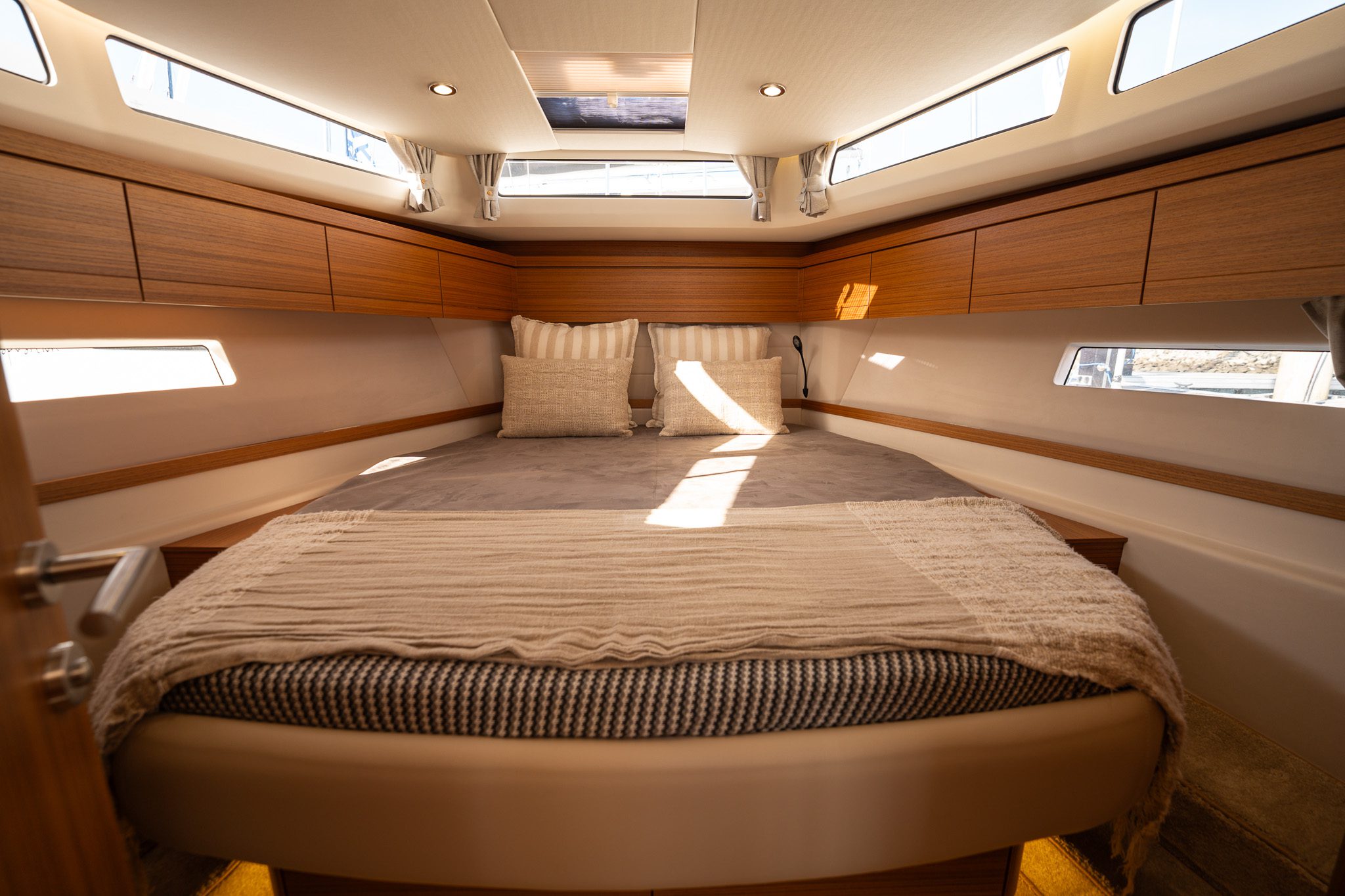 Equipped with Greenline’s 6th generation hybrid propulsion system, refined over 15 years, this hybrid yacht provides silent, efficient cruising that is both environmentally and user-friendly. The modern diesel engine, paired with one of the best-insulated engine bays in the market, ensures a smooth and quiet ride, while the sheltered cockpit and deep-covered sidewalks offer safety and full protection from the elements.