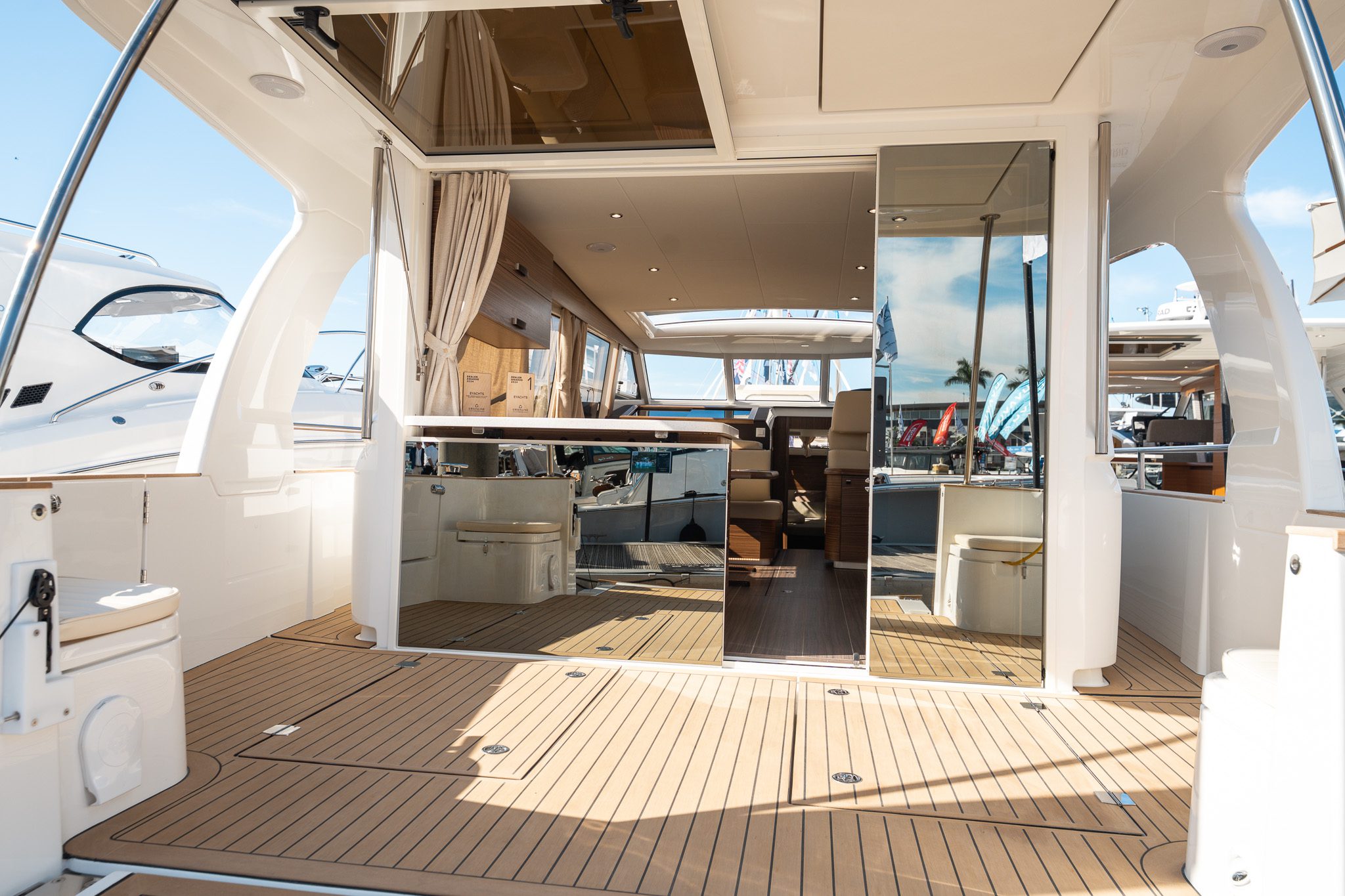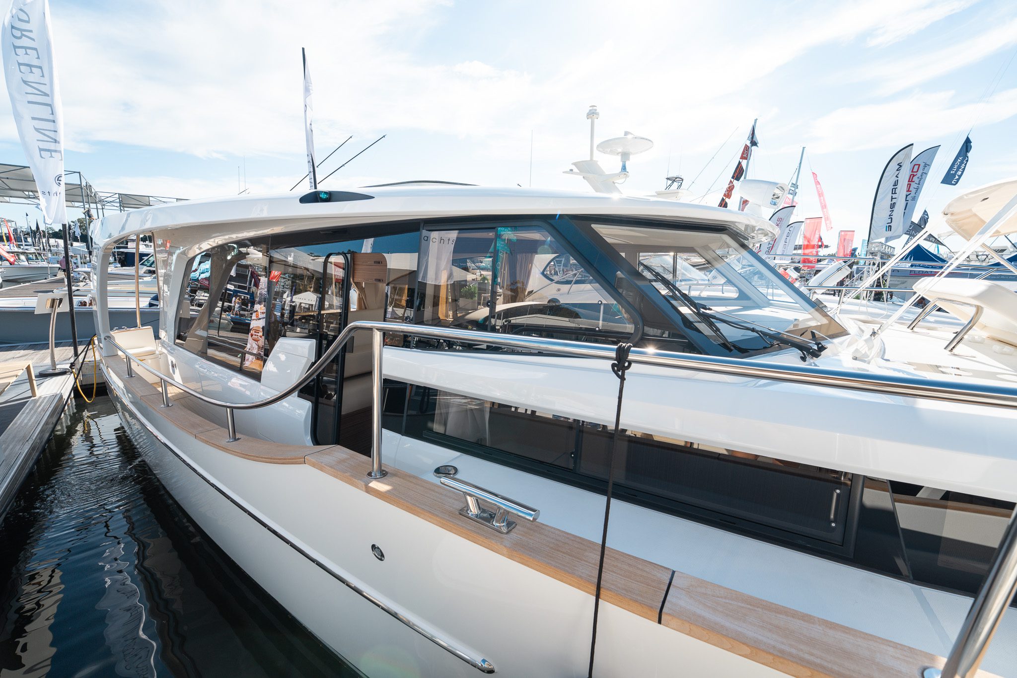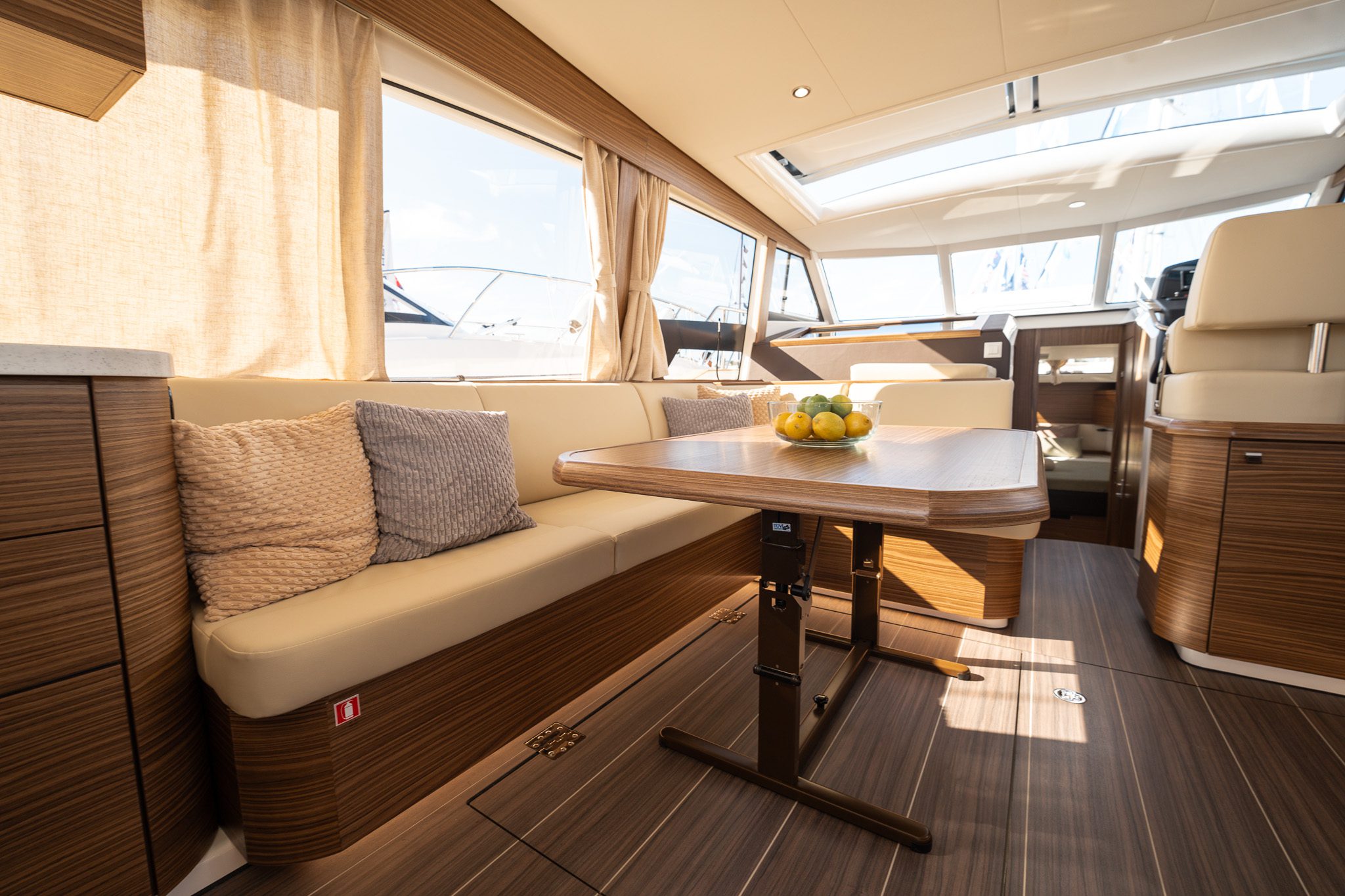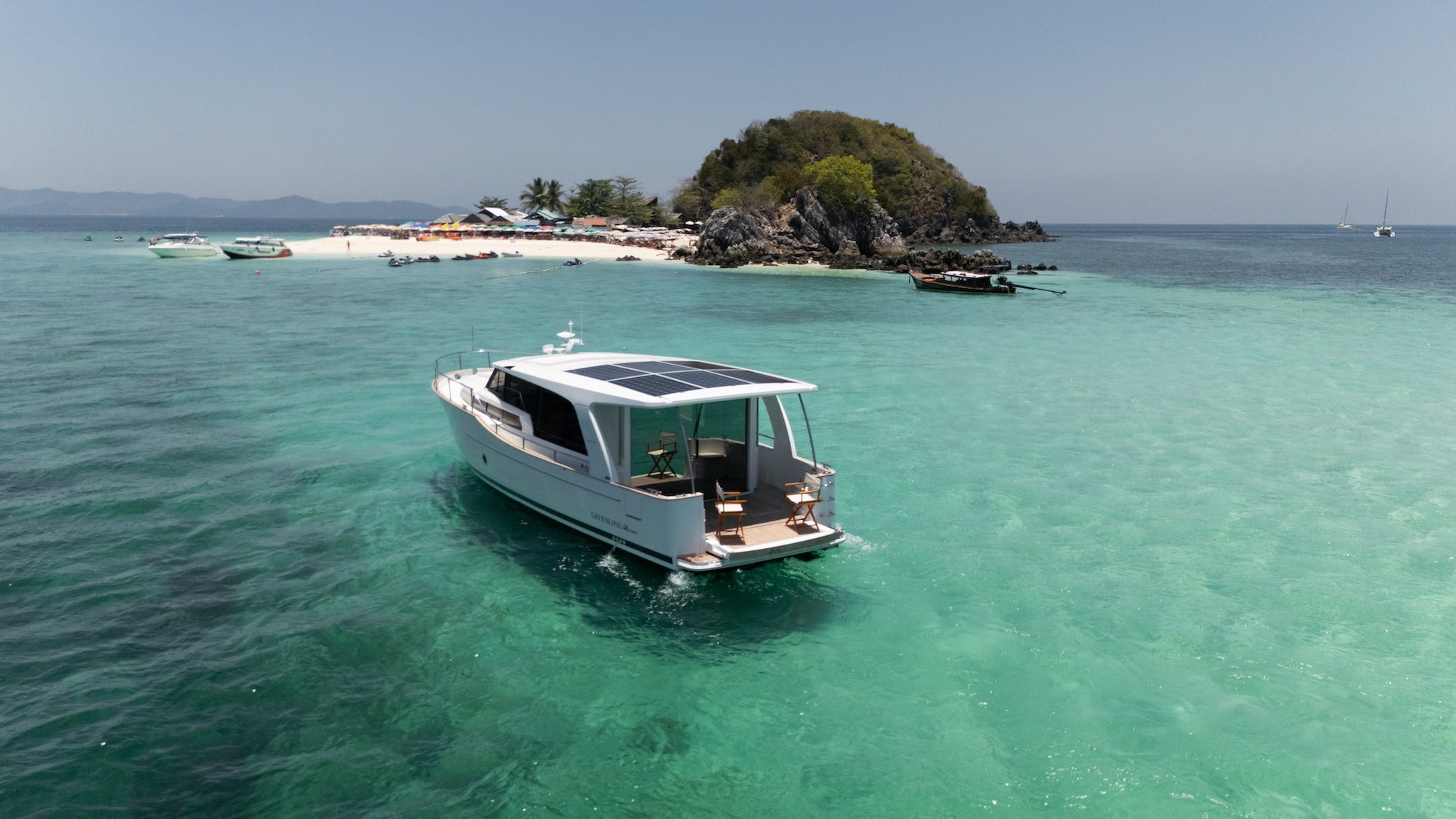 Greenline uses a hybrid system that lowers fuel use and lets you cruise or anchor on electric or solar power, giving quiet refinement. The 40 brings light sociable spaces with a clean modern vibe.