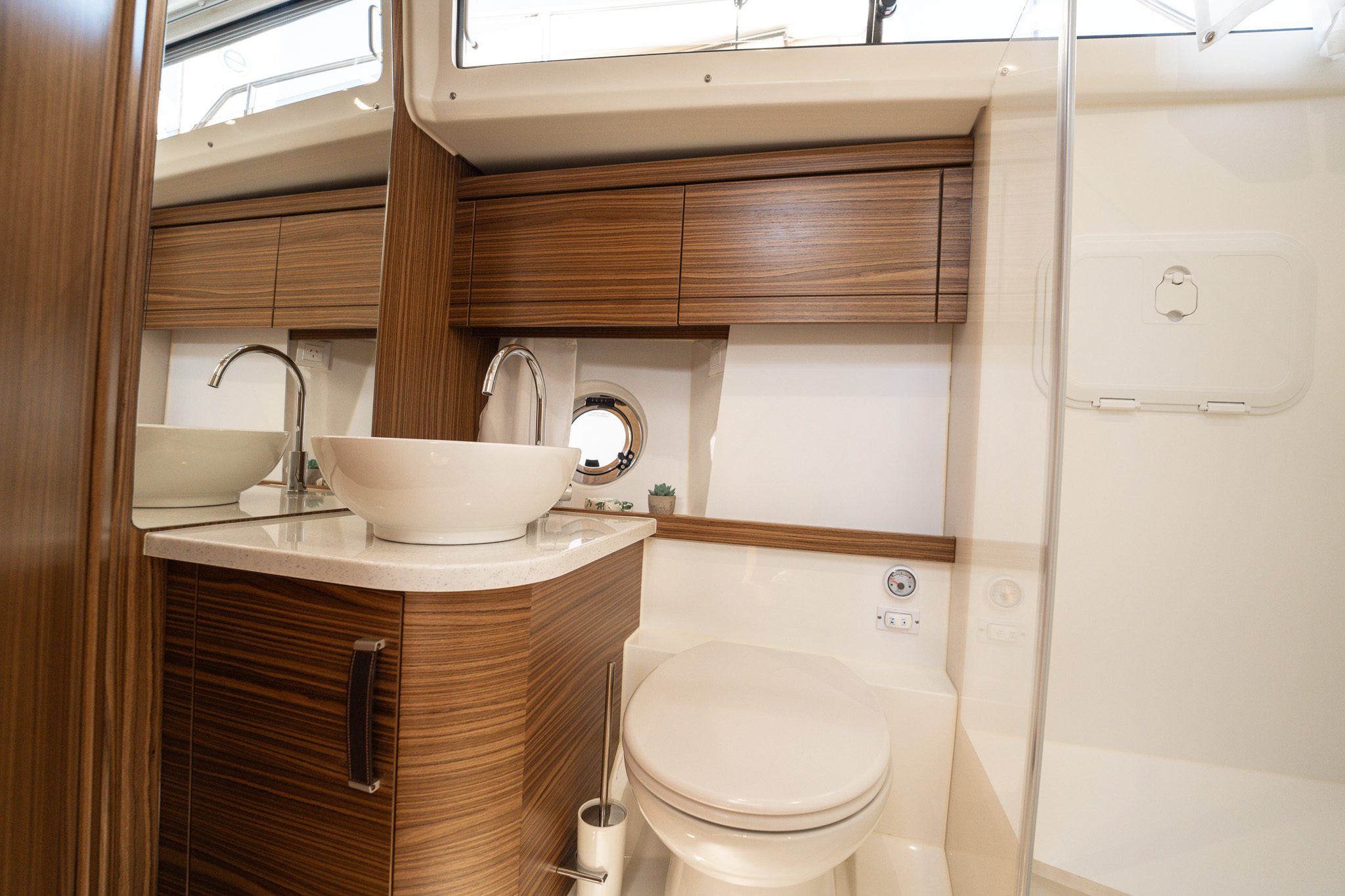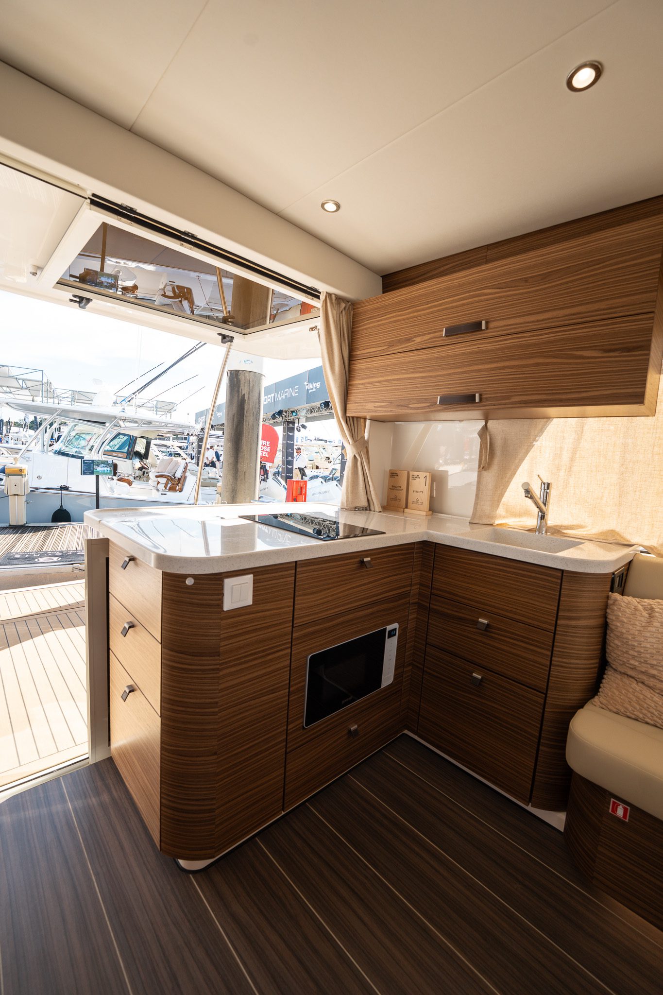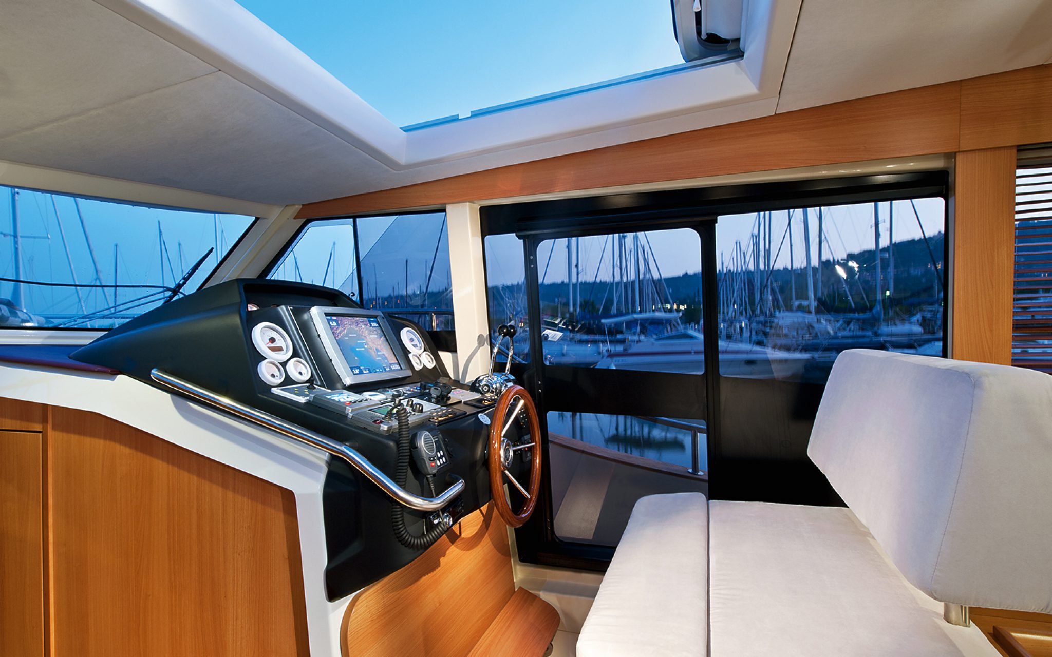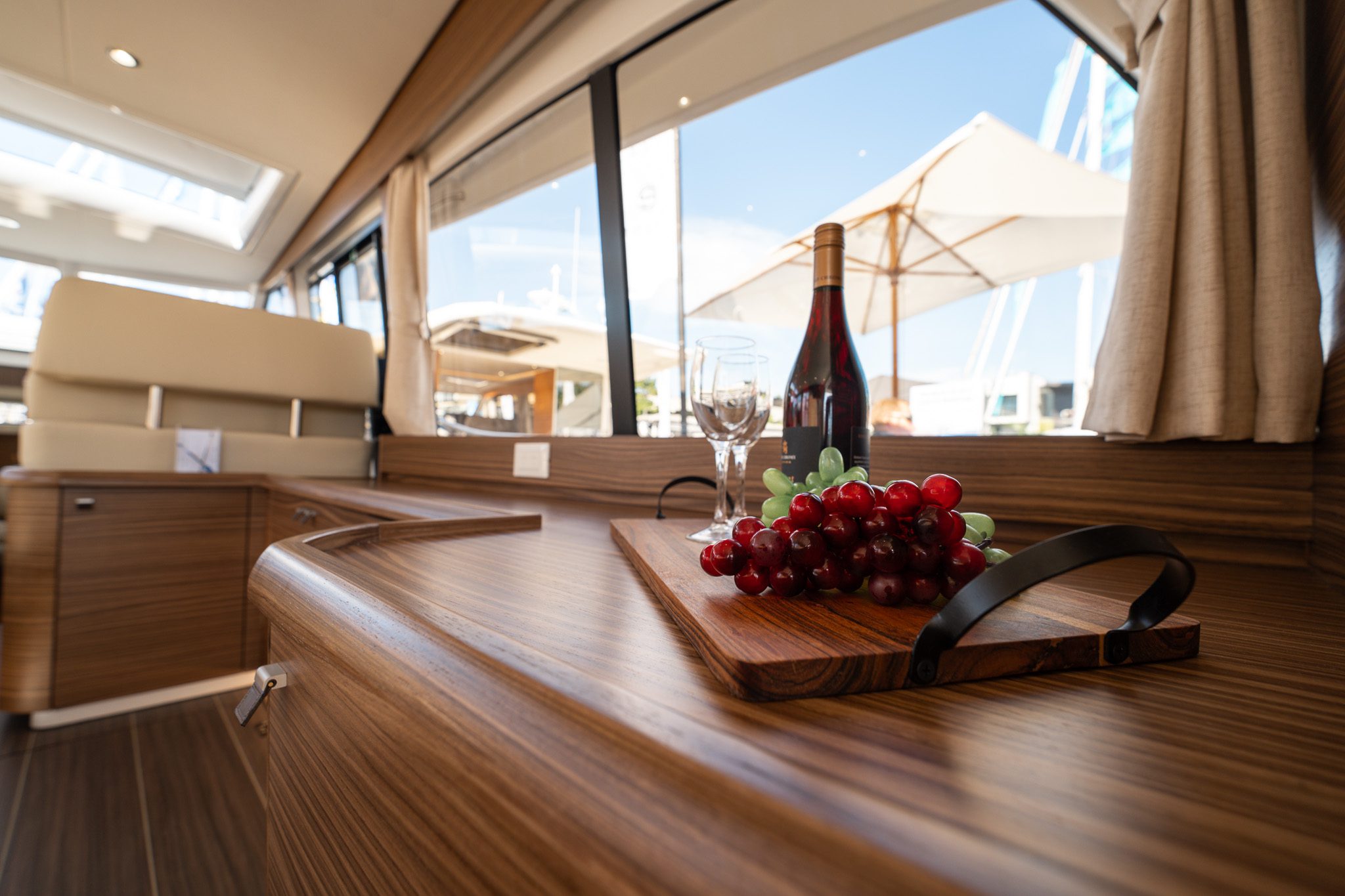 Greenline uses a hybrid system that lowers fuel use and lets you cruise or anchor on electric or solar power, giving quiet refinement. The 40 brings light sociable spaces with a clean modern vibe.