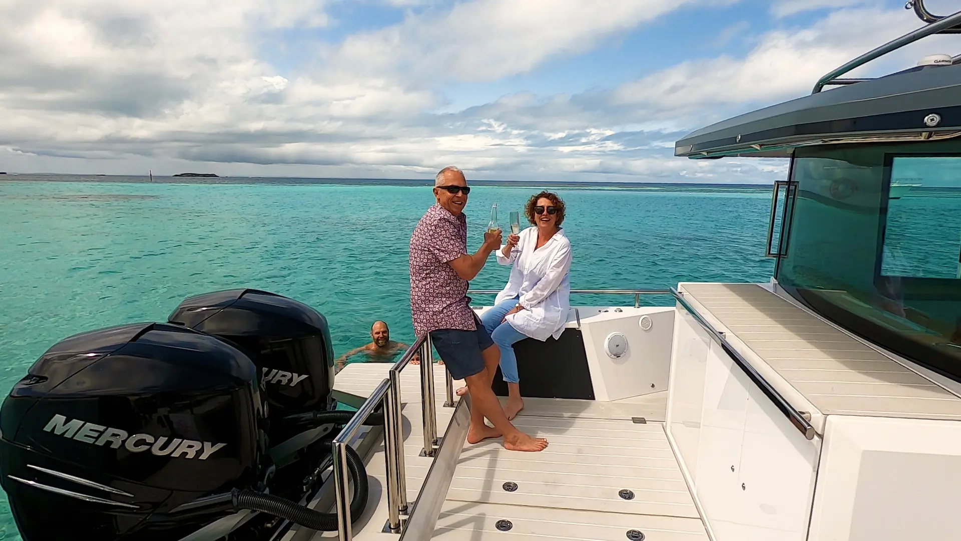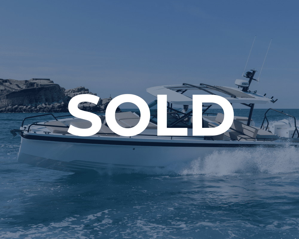 This is a stunning boat from Brabus Marine. 900 hp of race-bred twin VB power that pushes this 37 footer past 60 knots. Inside it’s luxury from head to toe, everything you’d expect from Brabus.