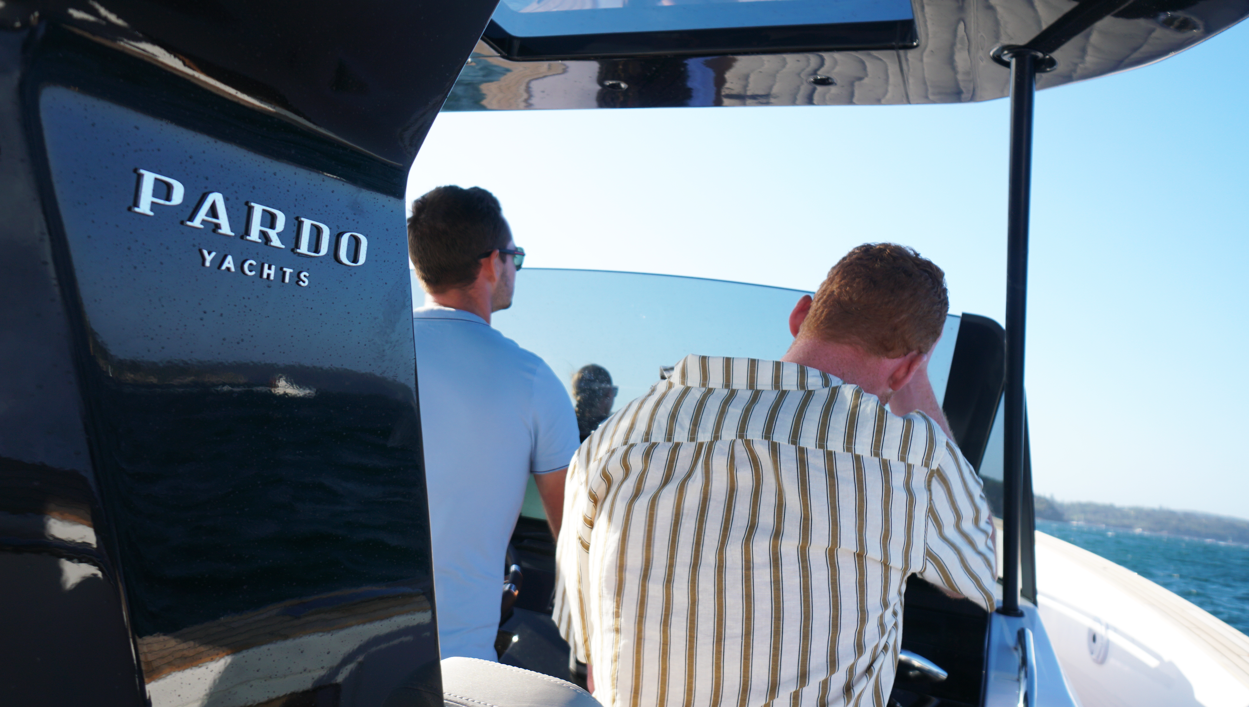 Peter Hrones – “Look at it, what a beautiful boat, it’s the best day boat you could ever buy. It’s got dining, a garage, a platform and it looks so good, everywhere you go and just seeing it driving today it was unbelievable. It’s probably the best looking boat on the water. Thumbs up for Pardo.”