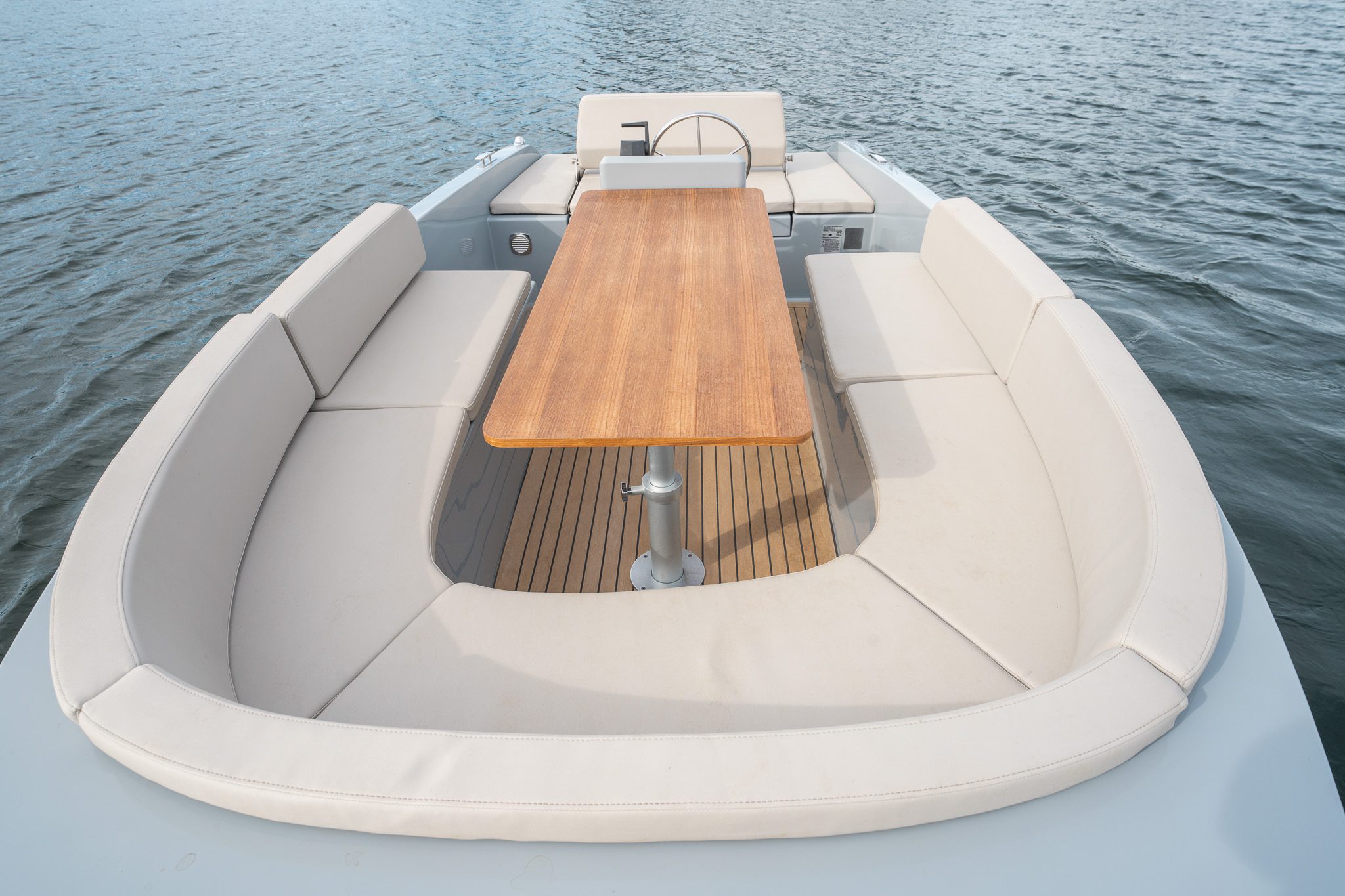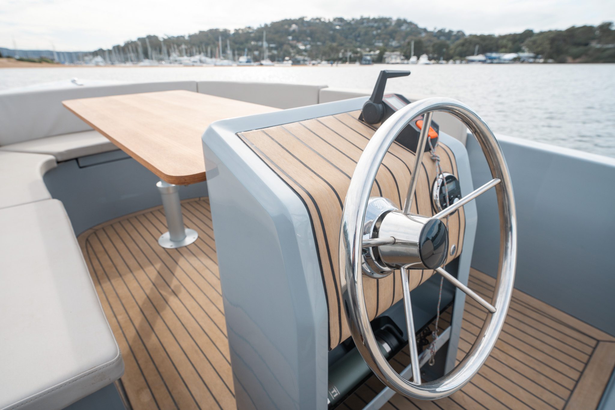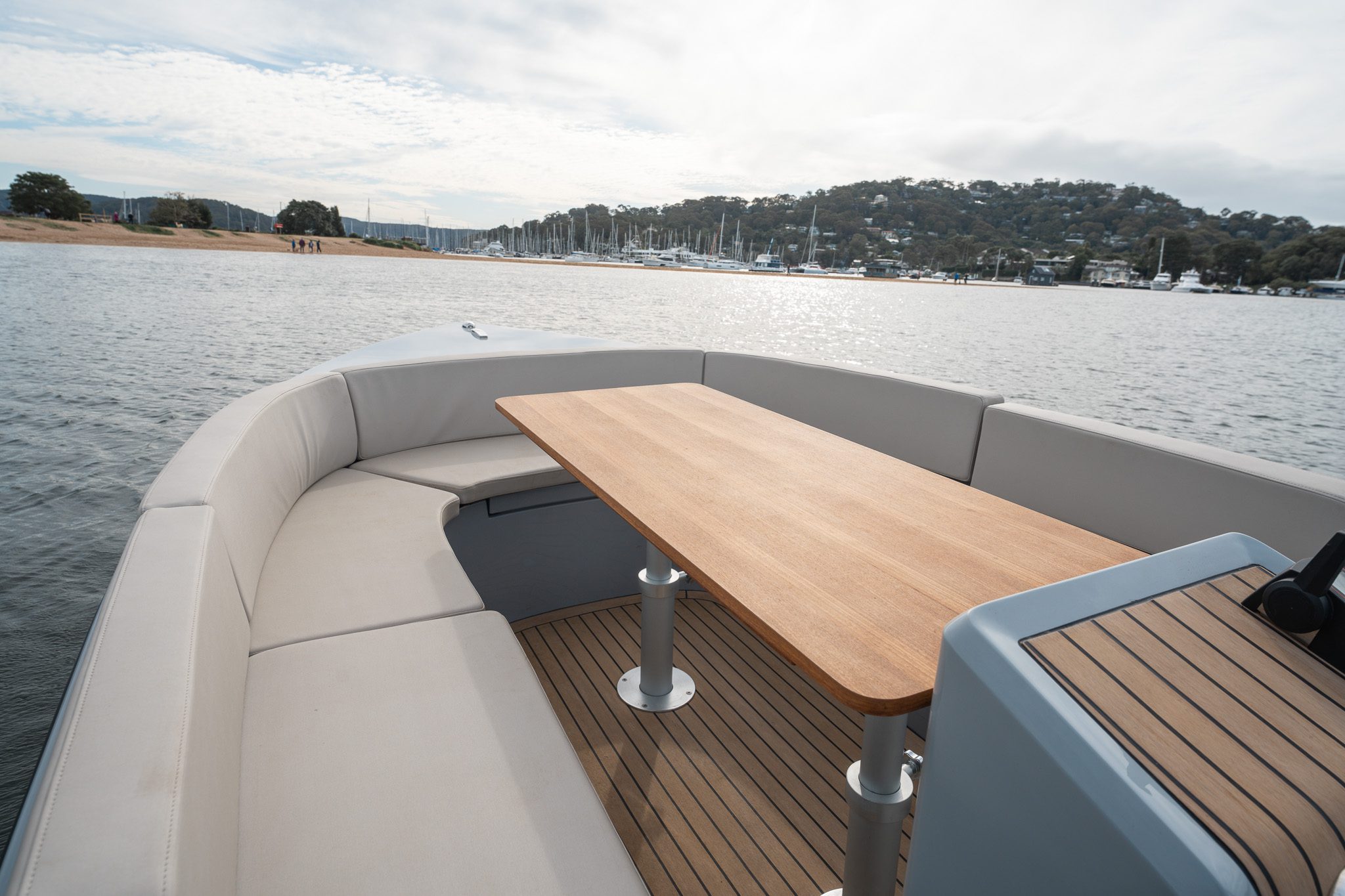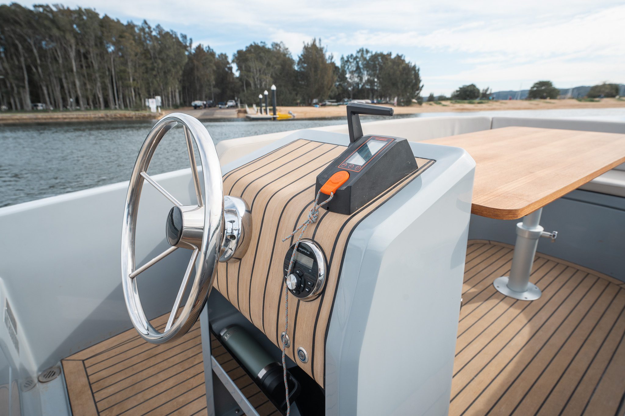 She is deliberately designed for social interaction and perfectly fitted for on-the-water leisure or dining with a built-in adjustable table and seating for up to 10 people. The table can be lowered to serve as the base for a relaxing king-size sundeck. The rounded edges and wide hull make it easy to get in and out. The hull has been developed to provide the most stable platform possible to increase the comfort on board. The electric propulsion ensures joyful picnics without a loud motor running and the smell of gas whilst moving.