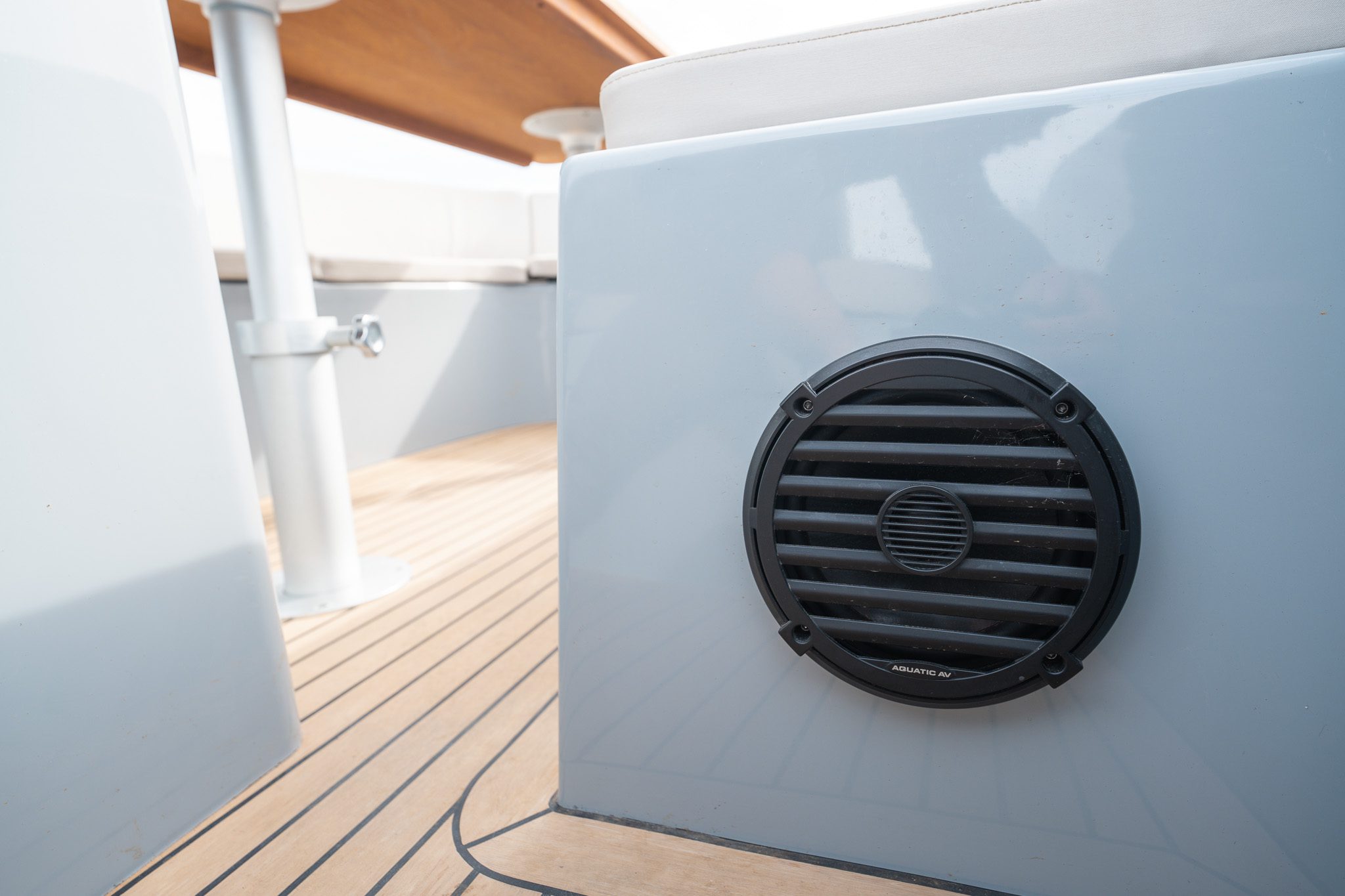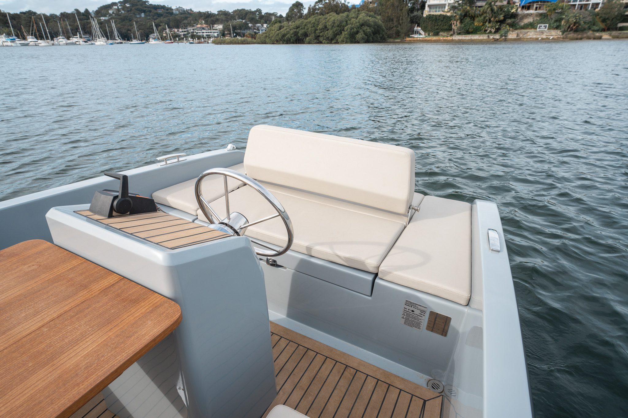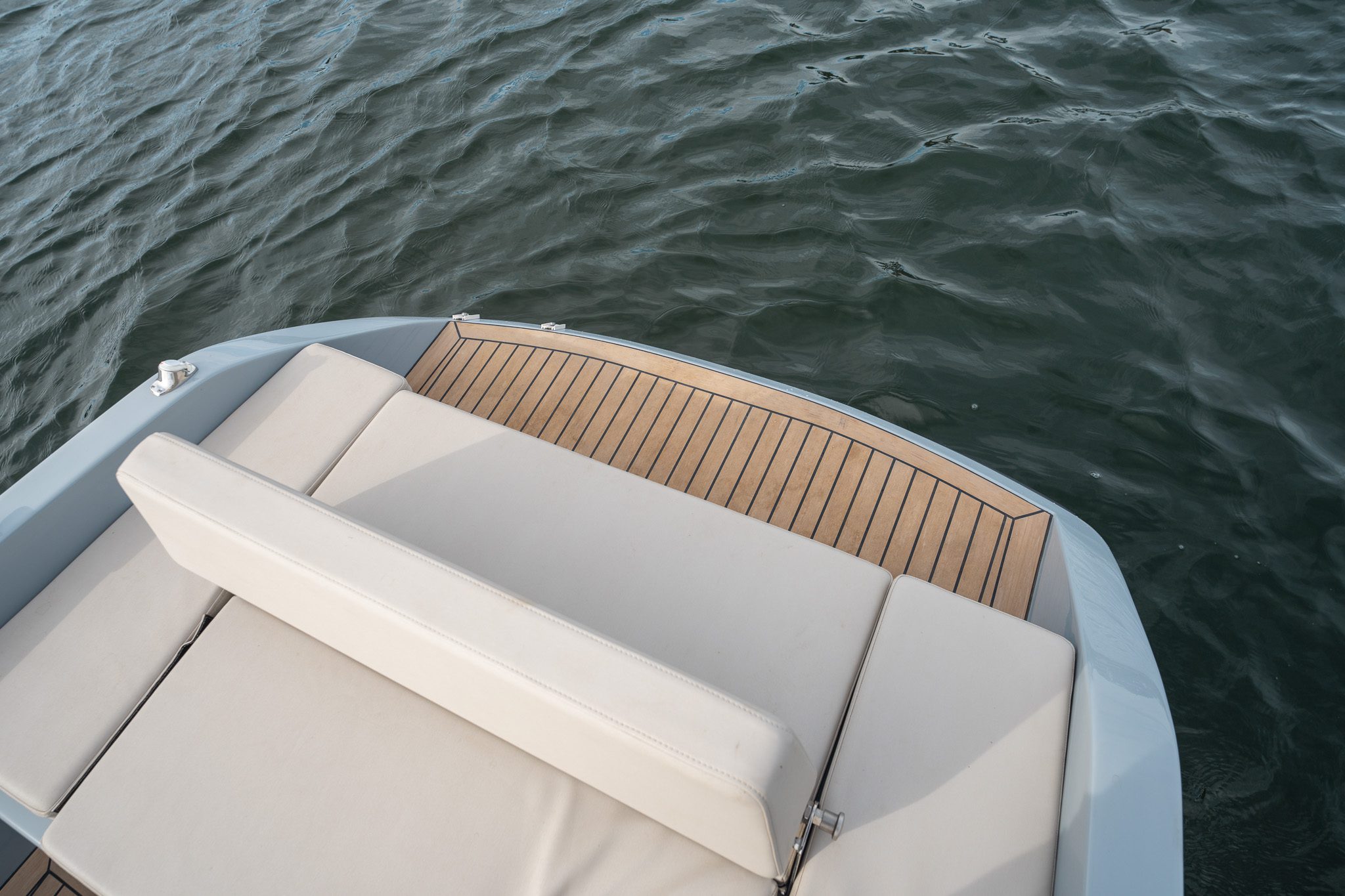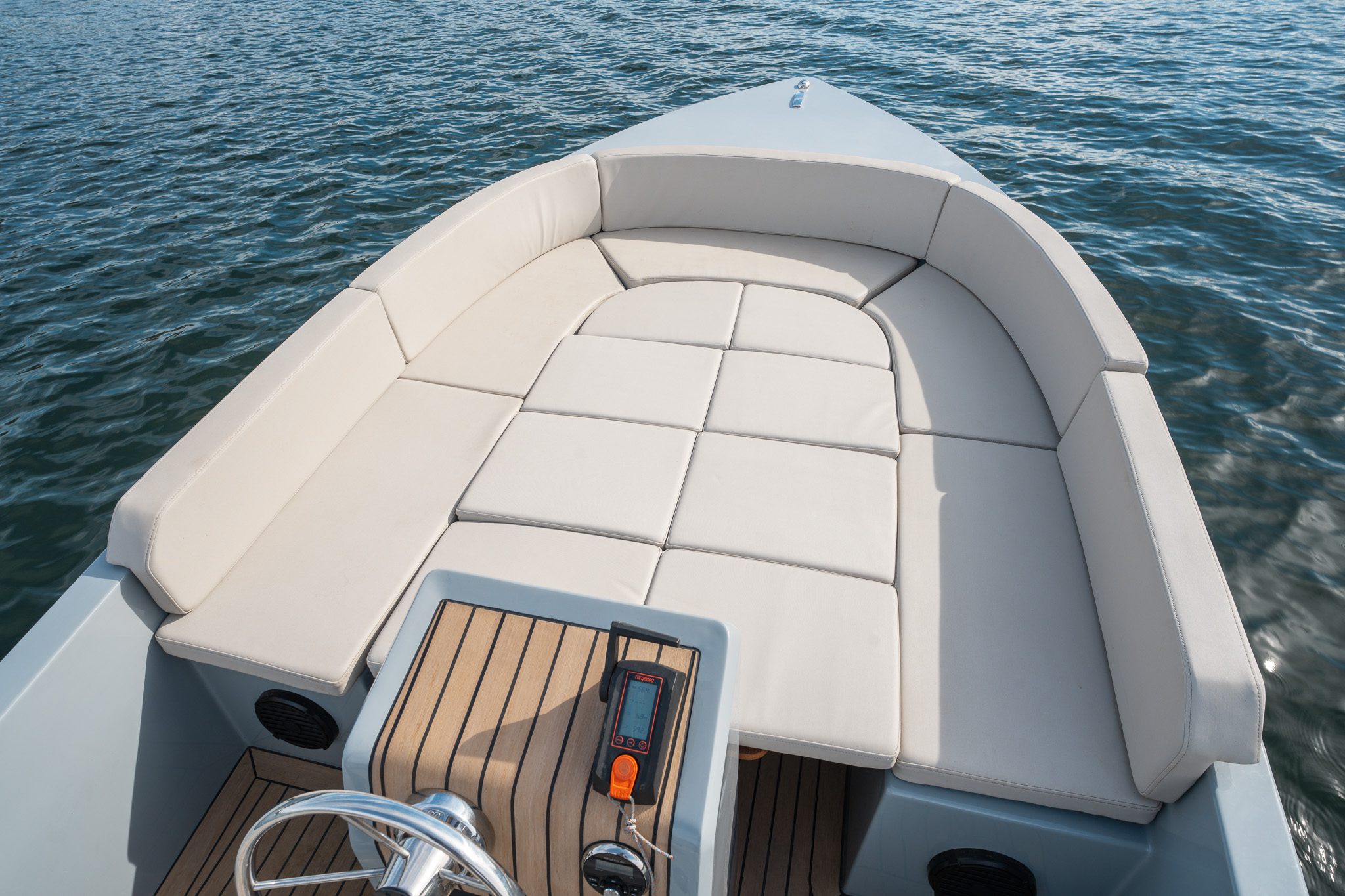 She is deliberately designed for social interaction and perfectly fitted for on-the-water leisure or dining with a built-in adjustable table and seating for up to 10 people. The table can be lowered to serve as the base for a relaxing king-size sundeck. The rounded edges and wide hull make it easy to get in and out. The hull has been developed to provide the most stable platform possible to increase the comfort on board. The electric propulsion ensures joyful picnics without a loud motor running and the smell of gas whilst moving.