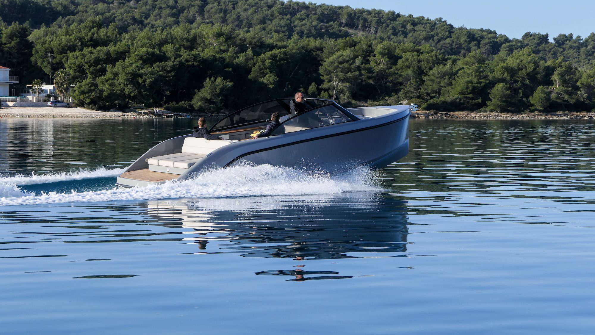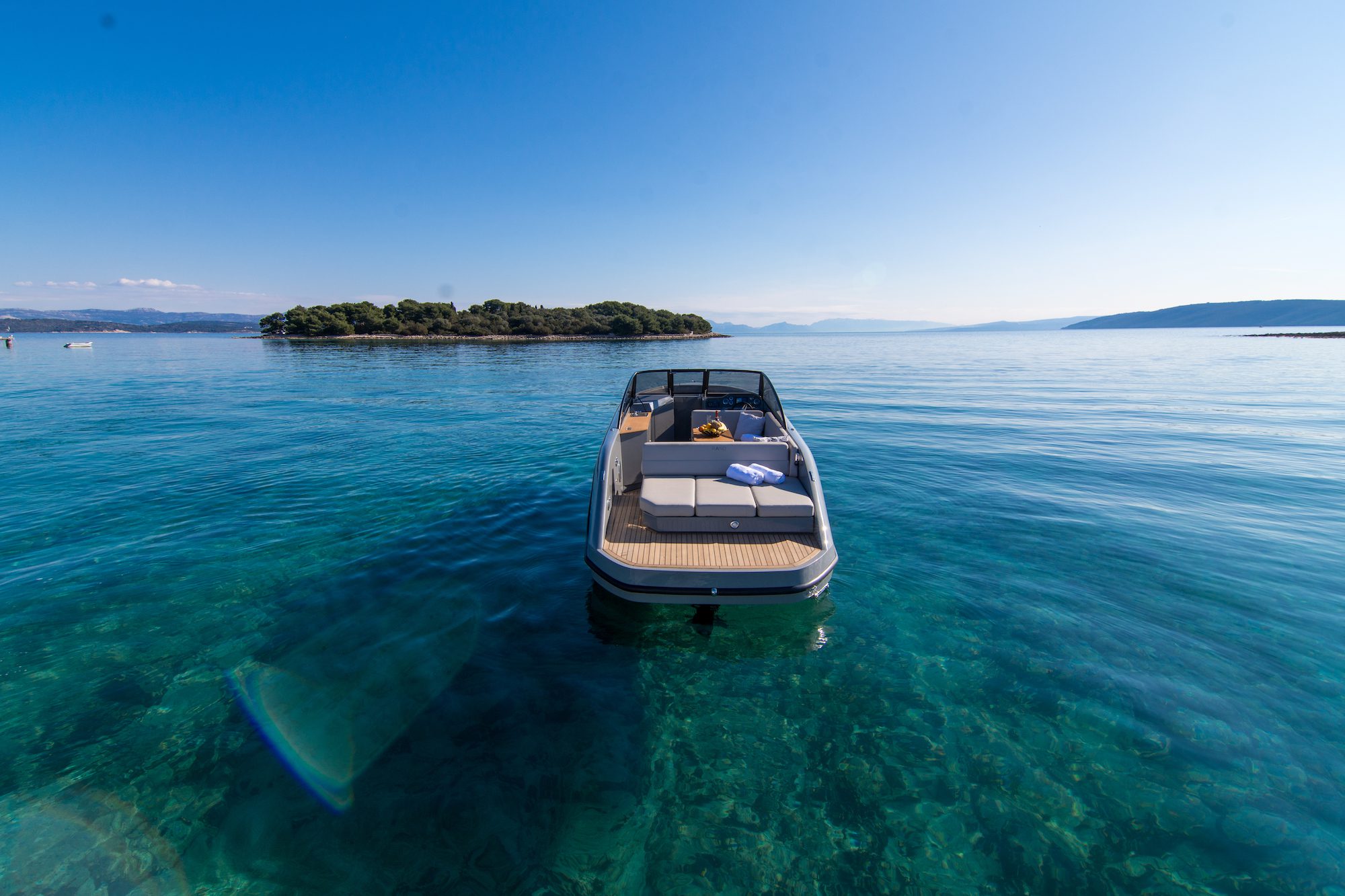 Equipped with a powerful 265kW electric motor, this electric day boat combines exhilarating performance with eco-conscious cruising. It’s designed for minimal environmental impact without compromising on fun, speed, or style. The advanced hull provides stability and confidence whether you’re gliding across flat water or encountering offshore swell.