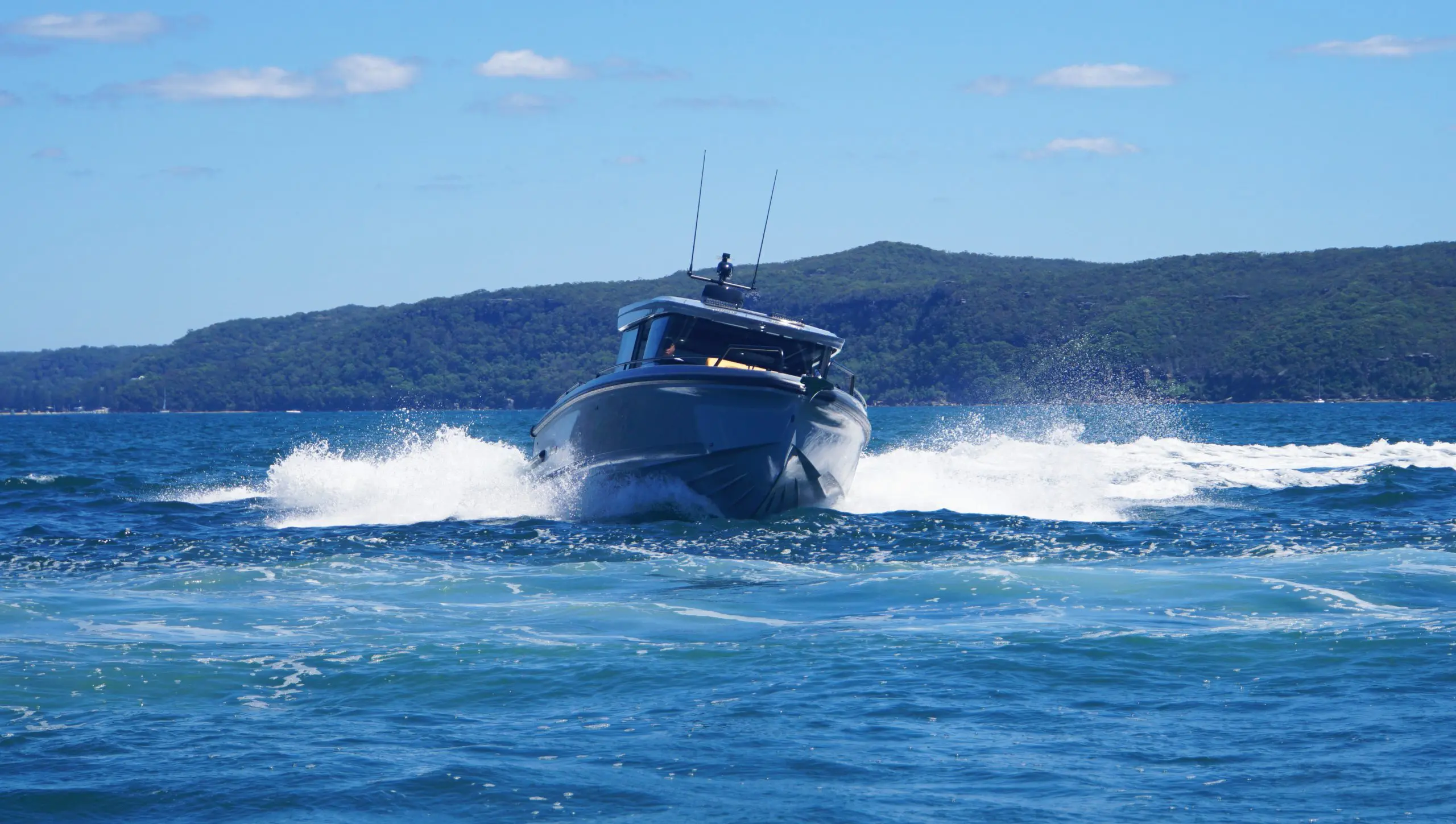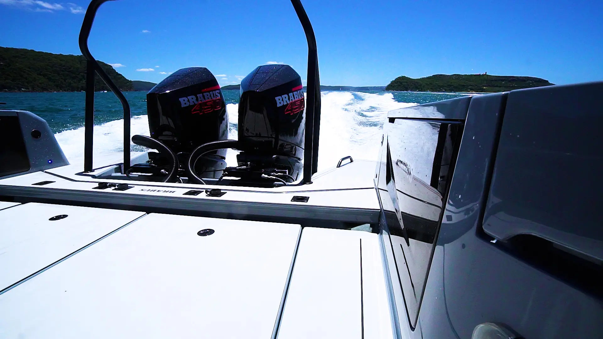 By the end of the day, the afternoon wind picked up and so did the chop on the water. Zooming down the now busy Pittwater we reached speeds over 58kts with certainty that we can get more out of the outboards…