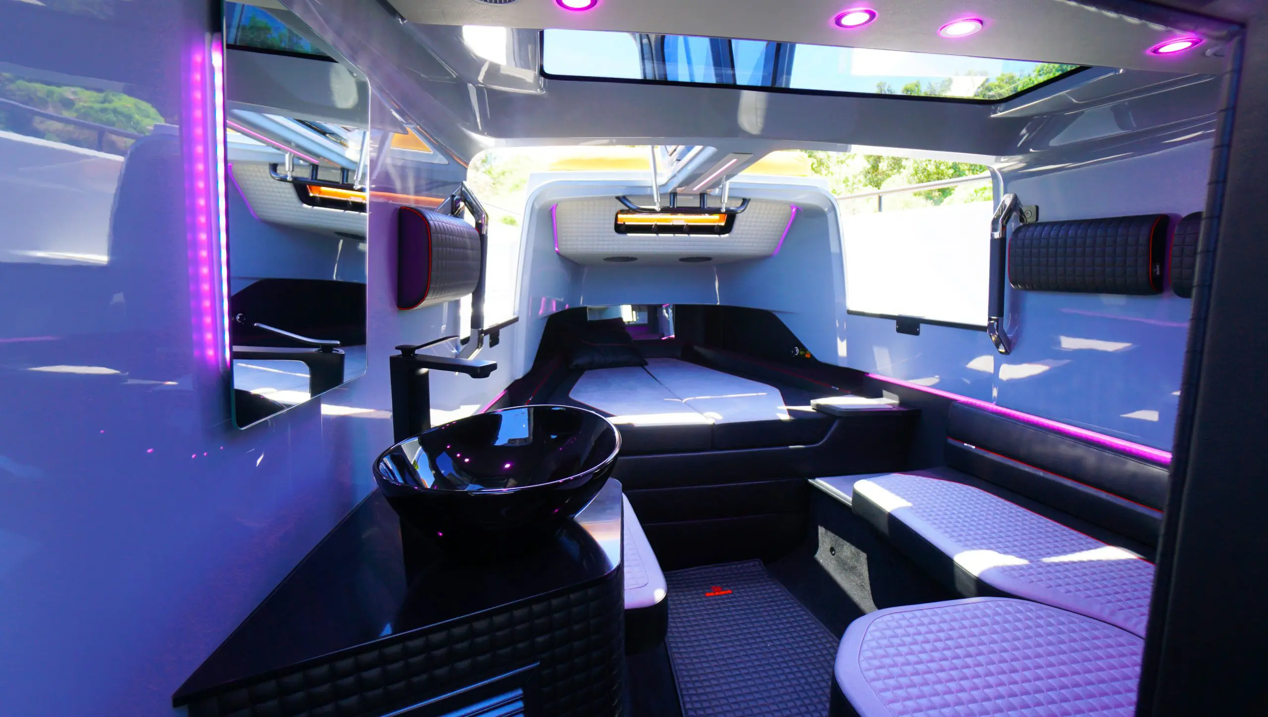 Marnie Ebeling – “Stepping onboard you can instantly tell this boat is not an Axopar, it is something completely different. BRABUS have really transformed this vessel into the luxury sports-car of the sea with no detail left unaccounted for. The plush leather with BRABUS detailing as you enter combined with the smart systems coloured lighting makes it feel like you are in the future.”