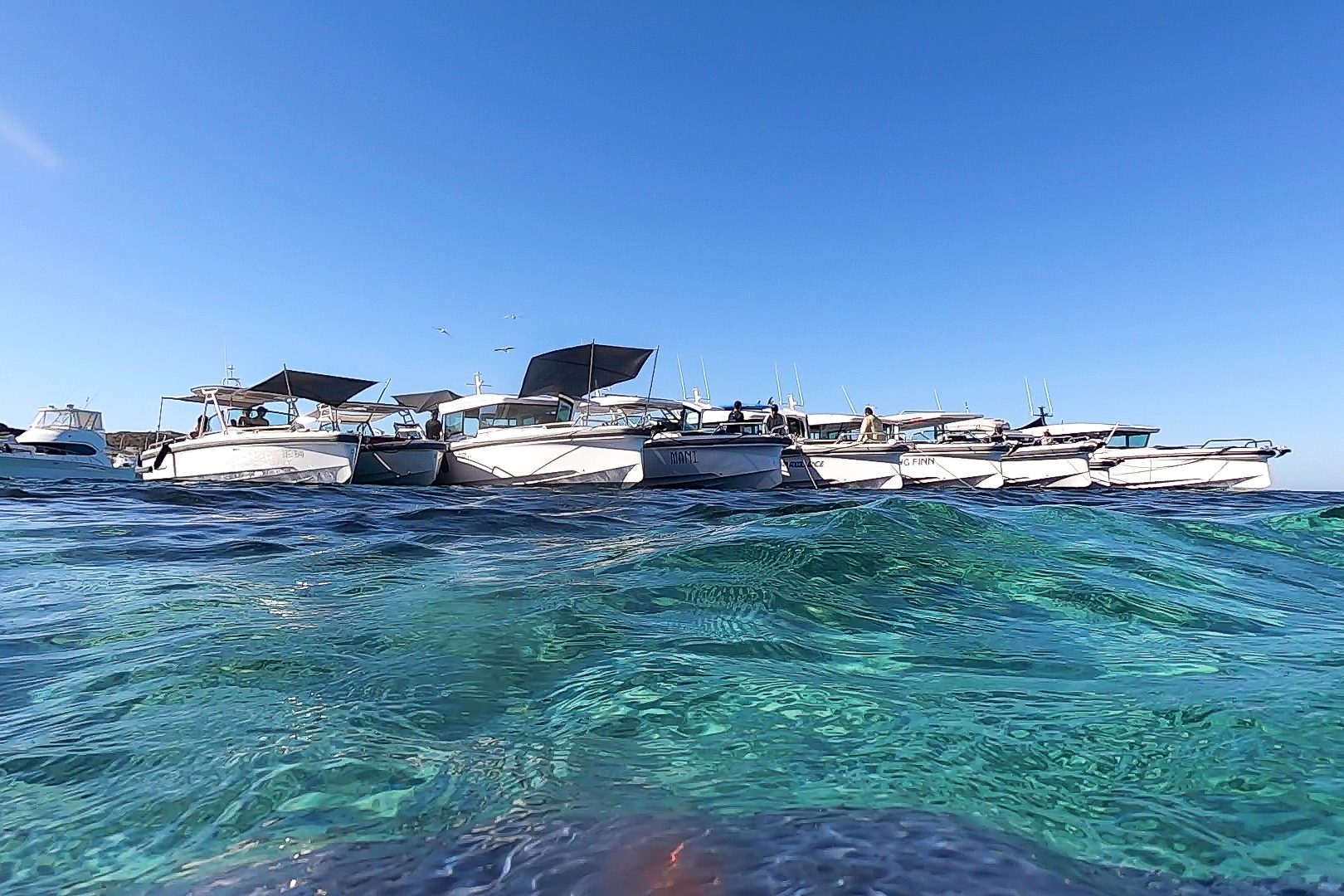 12 WESTERN AUSTRALIA AXOPAR BOATS RAFTED UP AT ROTTNEST ISLAND